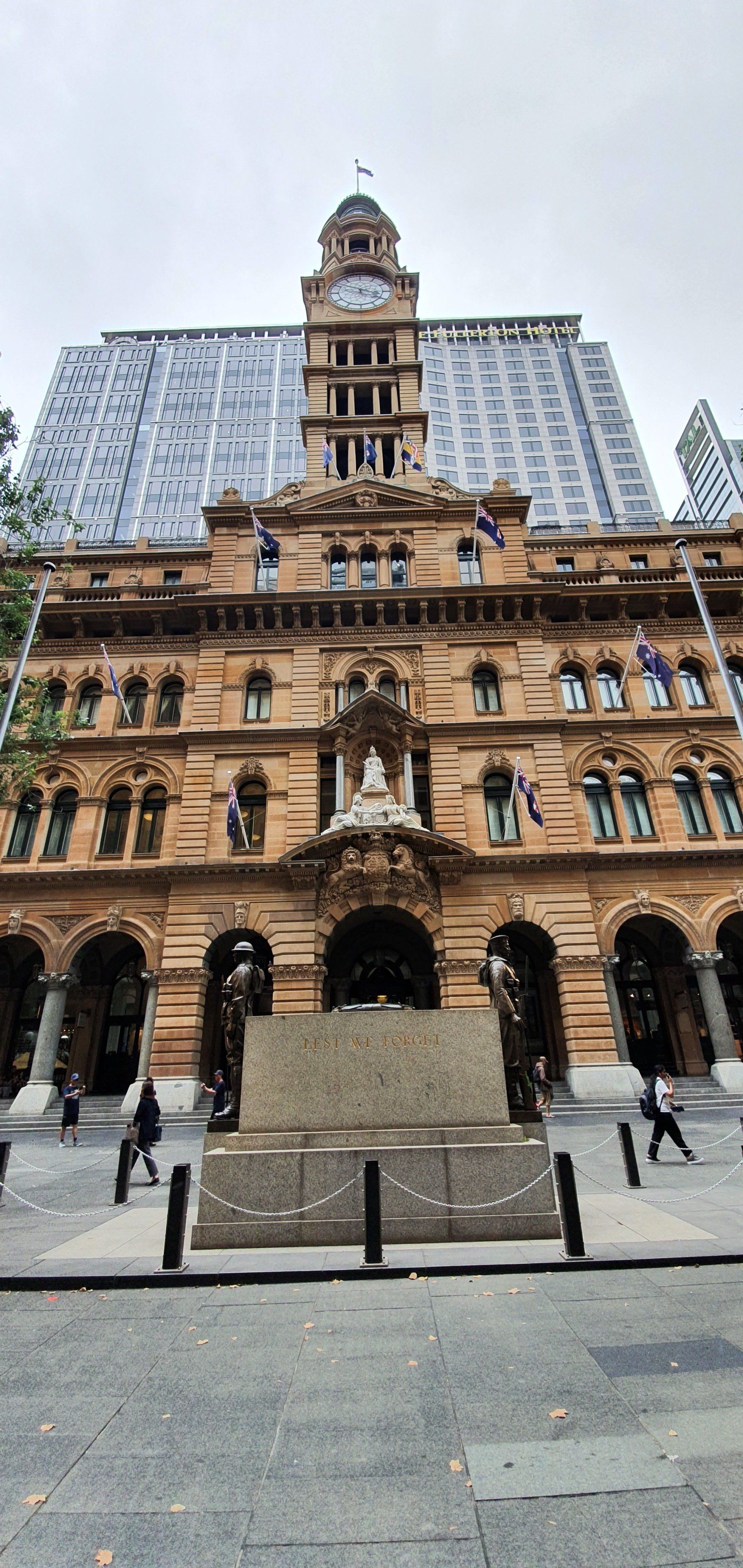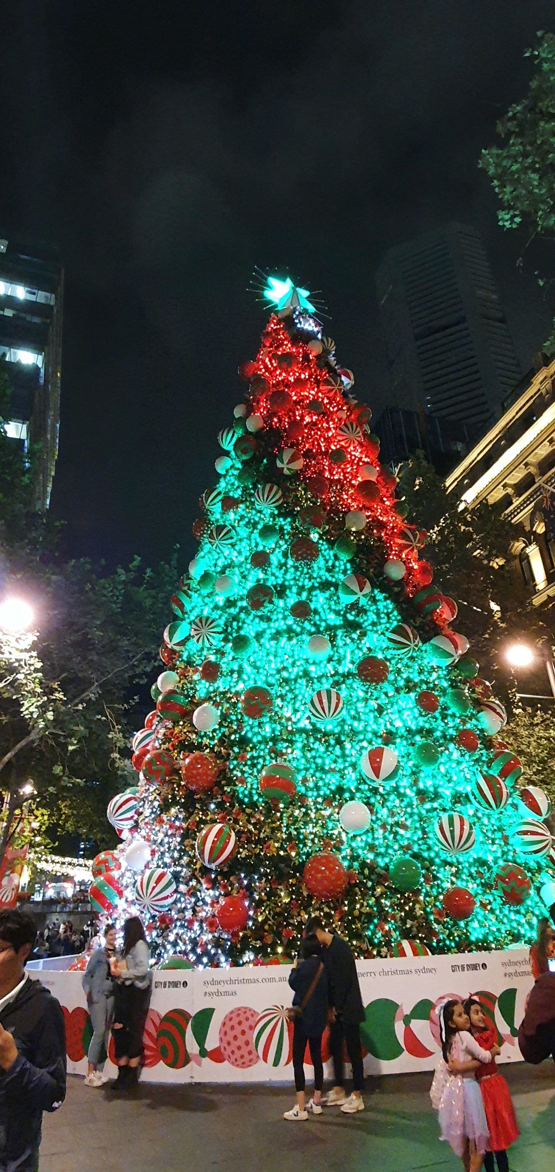 Aber ich habe Glück, die Gruppe ist recht groß und daher stehen alle noch am Treffpunkt und werden in 2 Gruppen mit 2 verschiedenen Guides gesteckt. Ich schließe mich dem jungen Australier an, der mir recht fit und pfiffig erscheint. Wir ziehen los, an verschiedenen Punkten in der Innenstadt, und er erklärt interessante Sachen. Durch das größte Einkaufszentrum, durch die George Street, durch die ganzen Menschenmengen, an vielen Gebäuden vorbei, zum Hyde Park, dem alten Krankenhaus und wieder runter, vorbei am großen Tannenbaum und dann seile ich mich ab, weil ich kurz in die Post muss. Leider habe ich es unterschätzt und verliere die Gruppe nach 2 Minuten, weil so viel los ist in der Stadt, dass ich sie nicht wiederfinde. Allerdings sind auch schon fast 2 Stunden vorbei, sodass der weitere Verlauf in Richtung Hafen und The Rocks geht, wo ich ja ohnehin zu Hause bin. :) Und es fängt an zu regnen, daher gehe ich mal was essen und fahre dann später mal zum Bahnhof, um mich über die Fahrt nach Newcastle zu erkunden. Denn einen Mietwagen kriege ich nicht mehr, was ich nicht gedacht hätte. Aber gut, dann möchte ich ab Newcastle eben einen Wagen, in der Hoffnung, dass es klappt. Die Weihnachtszeit ist also in Australien definitiv nicht geeignet, um spontan zu reisen. Und das steht mir leider gerade etwas im Weg, was meine Weiterreise angeht.