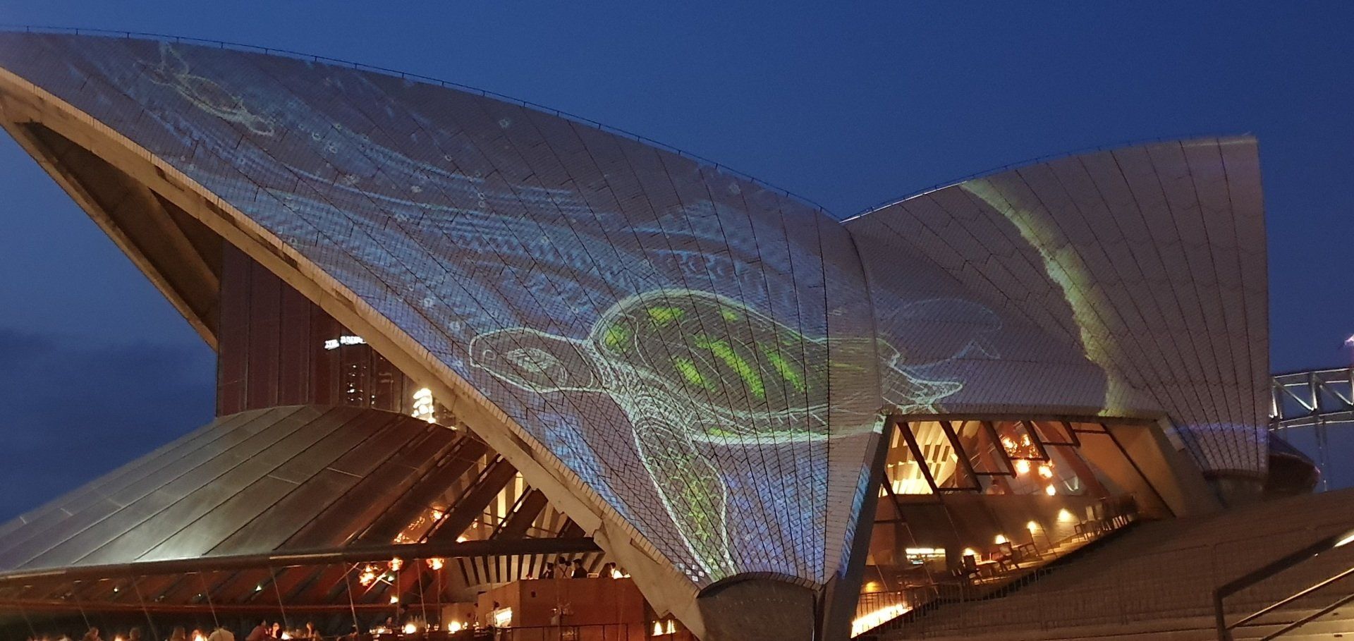 An diesem ersten Morgen in Sydney bin ich mit Isa verabredet. Sie kenne ich aus Köln und sie wohnt mittlerweile seit 10 Jahren in Australien, und wir haben uns sicher 15 Jahre nicht gesehen. Daher freut es mich umso mehr, dass es mit einem Treffen zum Frühstück klappt. Die Nacht war auch ganz gut, nur einfach viel zu kurz. Als der Wecker geht, weiß ich erst gar nicht, wie mir geschieht und wo ich bin. Dann muss ich erst noch zur Rezeption um zu erfahren, wo ich denn nun bleiben kann, und freundlicherweise darf ich in dem jetzigen bleiben, ohne extra Kosten. Na immerhin. Dann hole ich noch meinen Kram und ziehe ganz um. Dann geht es für mich nach Newtown zu Isa, mit dem Zug in 10 Minuten problemlos zu erreichen. Vorher hole ich mir noch die Opal Card, die Karte für den öffentlichen Transport, super praktisch, und dann treffen wir uns am Bahnhof, problemlos wiedererkannt :) Wir gehen in ein nettes Café und es ist superschön, dass wir uns treffen konnten und sie sich trotz Weihnachtsstress die Zeit genommen hat. Anschließend mache ich mich auf den Rückweg, die 4 Kilometer in die Stadt zu Fuß, um wieder mal ein wenig die Stadt zu erkunden. Die Hauptstraße führt im Prinzip direkt in die Stadtmitte, ist allerdings nichts Besonderes und es wird erst wieder netter näher an der Innenstadt. Dort laufe ich durch einen kleinen Park, an interessanten Gebäuden, etlichen Geschäften und Cafés und dem bunten Weihnachtstreiben vorbei. Denn es ist gut was los. Nach einer ausführlichen Runde durch die Innenstadt und den Weihnachtsbaum im Hellen gehe ich wieder zum Hafen und nehme auch dieses Viertel ausgiebig in Augenschein. Erst zur Brücke, dann zum Opernhaus und komplett drumrum, und dann gibt es, als es langsam dunkel wird, verschiedene Lichtshows drumherum. Mal mit Menschen ins Wasser projiziert, mal mit einer Art Ausstellung in Bildform auf dem Opernhaus selber. Thema ist an diesem Abend die Erde und ihre Bewohner, von Mensch und Tier. Sehr passend, finde ich. Und wirklich schön gemacht, sodass ich ca. eine halbe Stunde mich zu den Leuten setze, die die Bilderstrecke ebenfalls verfolgen und die Atmosphäre mit Opernhaus und Hafen einfach auf mich wirken lasse. Schon toll.