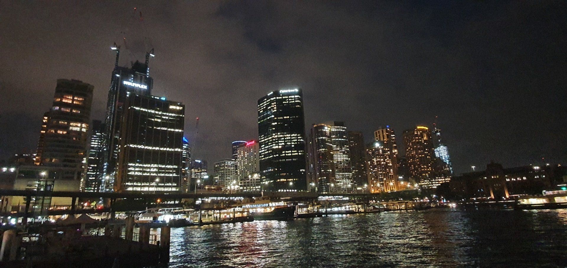 Dann ist es auch dunkel und ich laufe noch mal durch das Hafenviertel, um das beleuchtete Viertel und die Skyline von Sydney mir anzusehen, was auch sehr eindrucksvoll ist. Dann gehts noch mal was essen und zurück ins Hostel, weil ich doch müde bin. Ursprünglich hatte ich überlegt, am 24., weil Weihnachten hier erst am 25. richtig gefeiert wird, auf ein Partyboot zu gehen, aber da ich gerade so platt bin und ja auch auf der Reise nicht so mega auf Party aus bin, lasse ich es mir noch etwas offen. Ablegen würde es abends um 6, aber ich möchte auch noch eine kostenlose Stadtführung machen, daher mal schauen, wie ich am nächsten Tag spontan entscheide. Jetzt erst mal schön ins Bett und ohne Wecker ausschlafen - ist ja sowieso kein Frühstück bei den 90 Euro Zimmerpreis drin. Haha. Gute Nacht :D