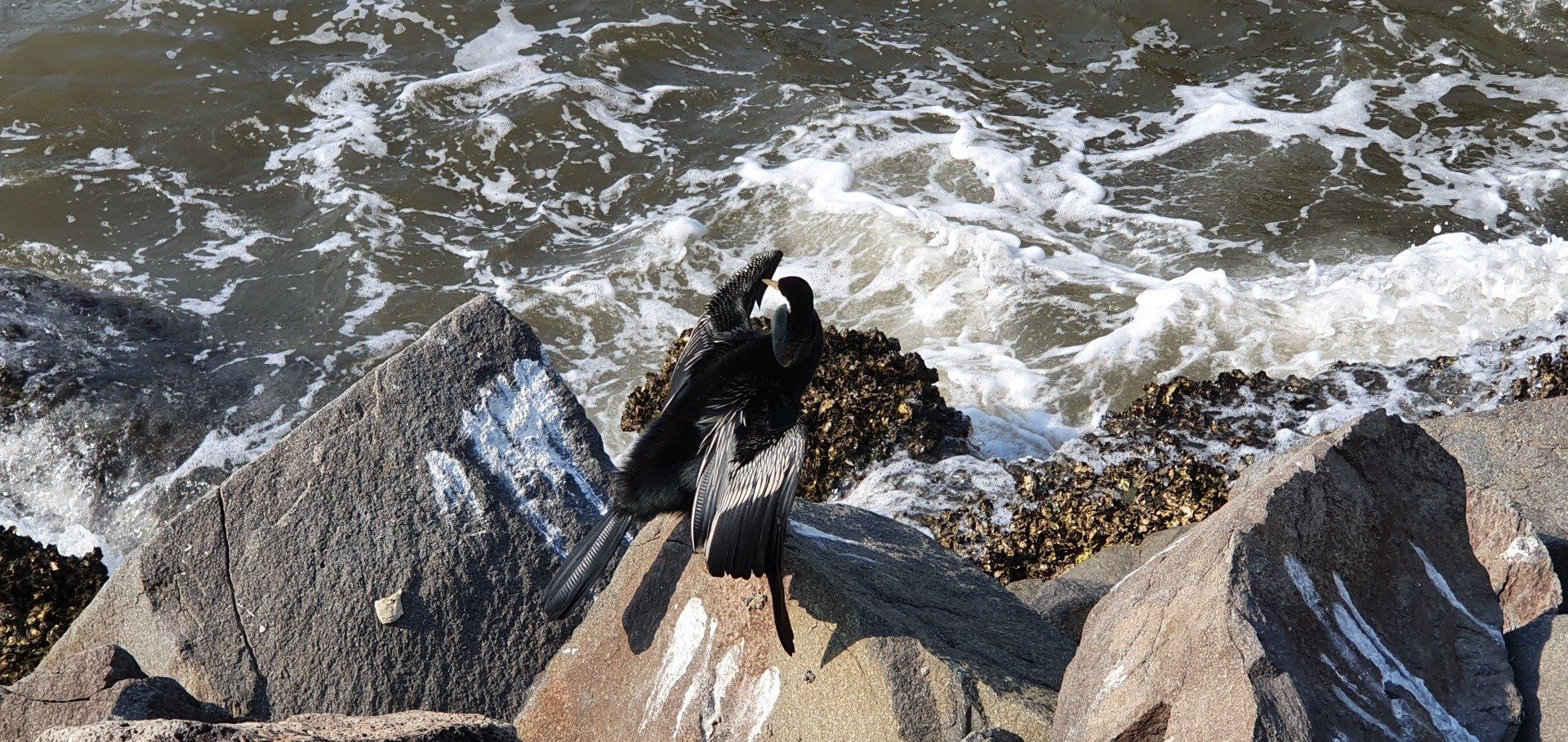 Vorher esse ich noch was (es ist nach Mittag und ein Frühstück hatte ich auch noch nicht) und dann geht es los. Der Weg ist ein Traum. Über asphaltierte Wege, über verlassene, abgelegene Strände, tolle Naturreservate, wo ich wirklich alleine lang spaziere, neben mir nur Vögelchen, die am Strand nach Essen suchen. Man muss allerdings auch sehr aufpassen, da sehr viele gefährliche Quallen derzeit unterwegs sind und an Land gespült wurden. Da sollte man besser nicht drauftreten.