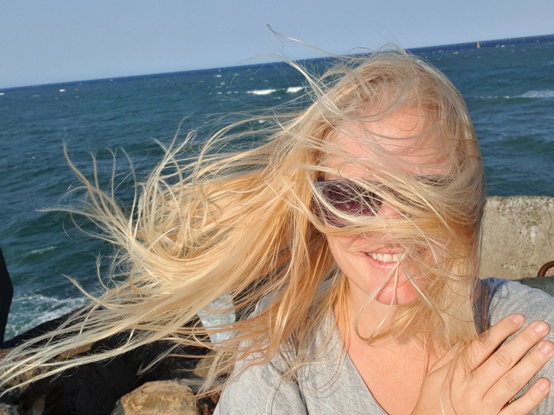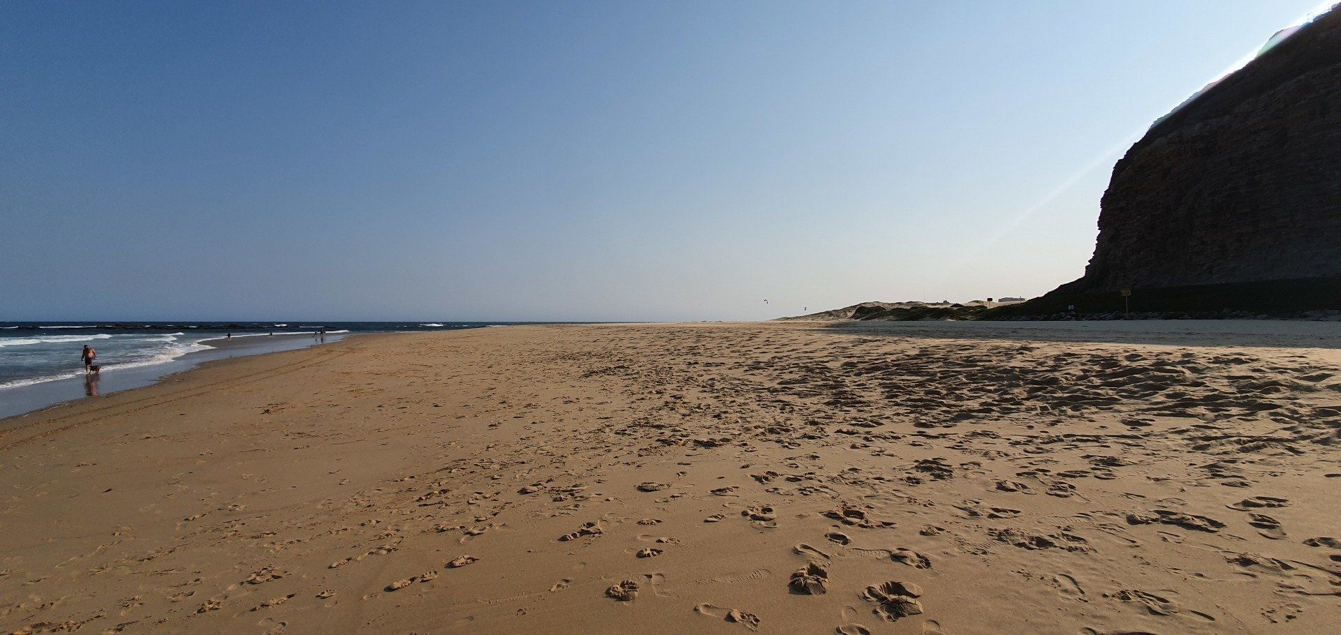 Ich bleibe noch eine ganze Weile in dem klimatisierten Bahnhofsgebäude und gehe dann zum Strand. Dort starte ich einen sehr langen Spaziergang, über mehrere Strandabschnitte hinweg. Es ist ein herrliches Wetter, der Wind so kühl, dass man von der Sonne nichts merkt. Gefährliche Mischung, weil ich mich auch nicht eingecremt habe. Je weiter ich vom Städtchen weg laufe, desto leerer werden die Strände wieder, dabei ist es hier viel schöner, als im viel belagerten Stadtstrand. An einem Abschnitt läuft mir allerdings ein Marokkaner hinterher, der mich dann noch anspricht und mit mir weiter laufen will. Ich habe aber darauf keine Lust, weil ich gerne in Ruhe spazieren und nicht quatschen möchte. Das kann er nicht verstehen, und ich erkläre, dass ich mich hier erst mal hinsetzen wollte, alleine. Ein wenig beleidigt zieht er dann ab. Blöd, weil eigentlich wollte ich nicht so lange hier sitzen. Aber am Ende des Strandes scheint er noch auf mich zu warten, denn sein leuchtend blaues Shirt sieht man auch aus der Ferne. Dann beschließe ich, dass ich trotzdem weiter laufe. Daher gehe ich zu einem Weg vom Strand weg und will hintenrum weiter laufen, sehe aber, dass er dann aufsteht und den gleichen Weg einschlägt. Mein Weg führt durch ein kleines Waldstück, und als ich am Ende ankomme, sehe ich, wie er von der anderen Seite dort quasi direkt auf mich zulaufen würde. Unmöglich. Also drehe ich gerade wieder um und laufe zurück zum Strand, und warte dort aus sicherer Distanz, ob er noch mal den Weg läuft. Aber scheinbar hat er es gecheckt und ich sehe ihn nicht mehr. Ein Glück. Also gehe ich weiter, noch mal an einem kleinen Hafen vorbei, und dann zu einem wahren Traumstrand, dessen Ende ich gar nicht sehen kann.