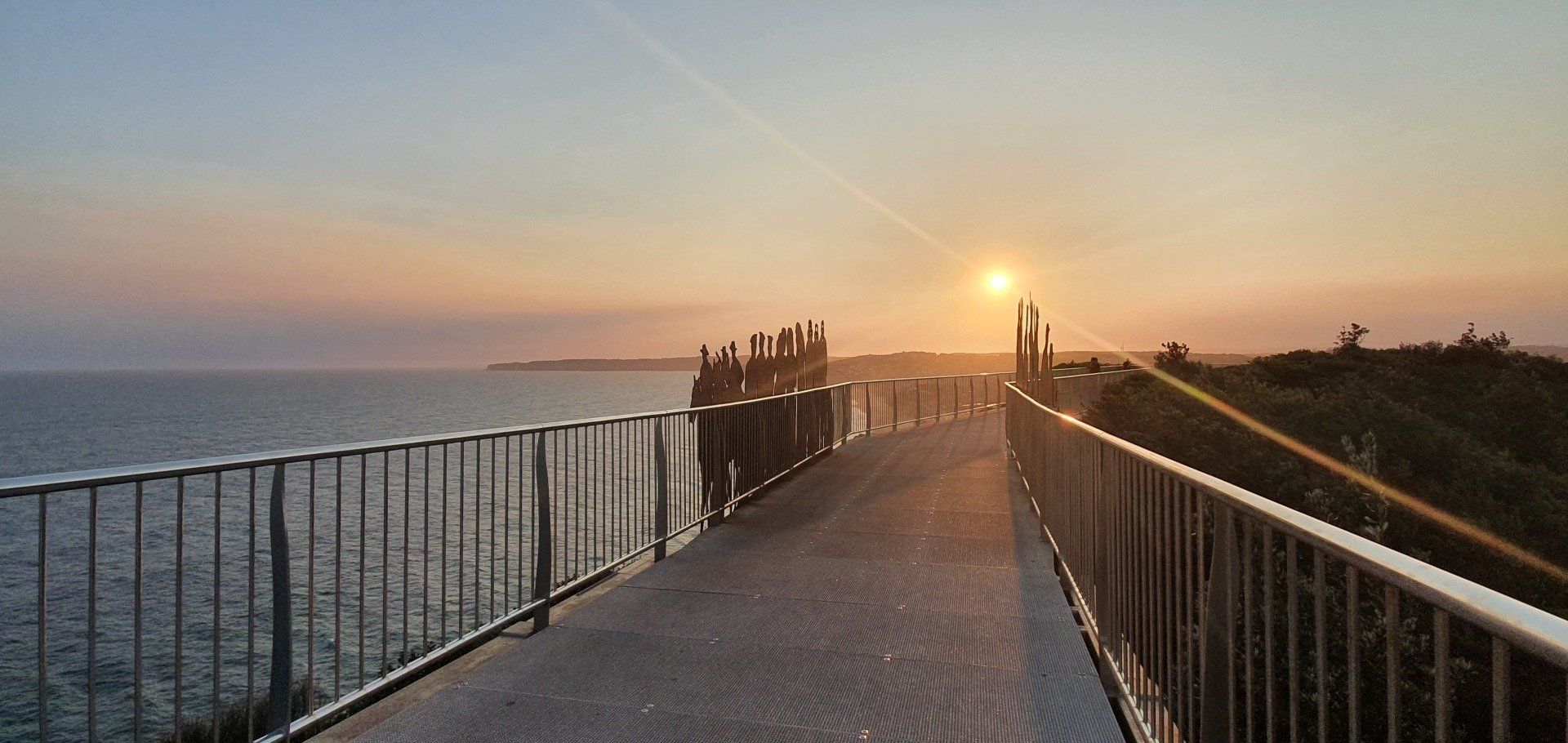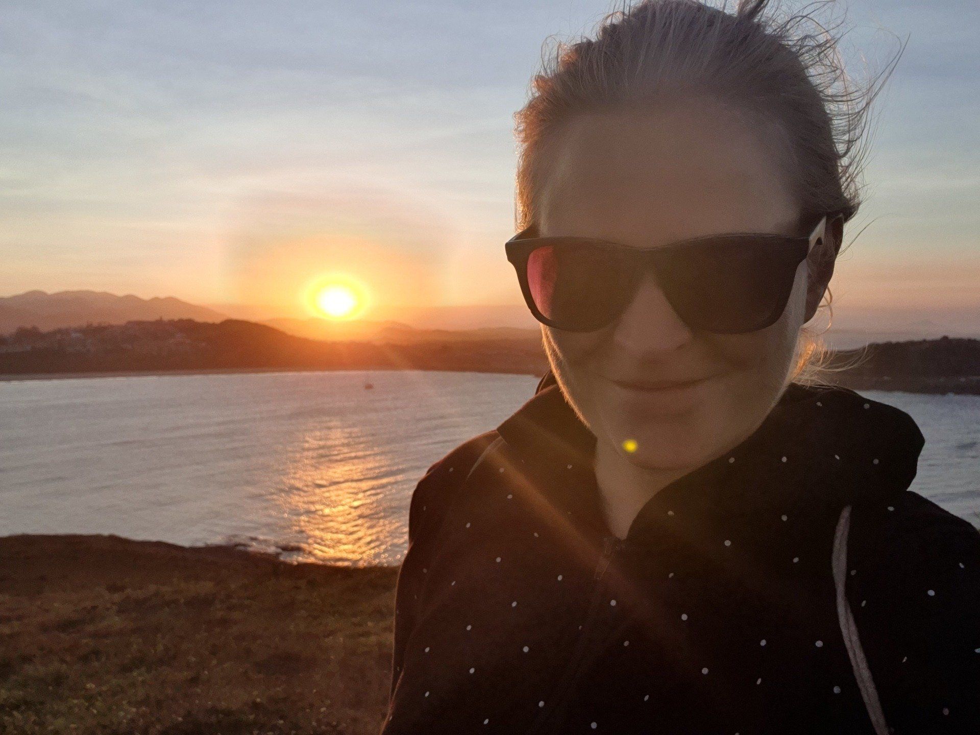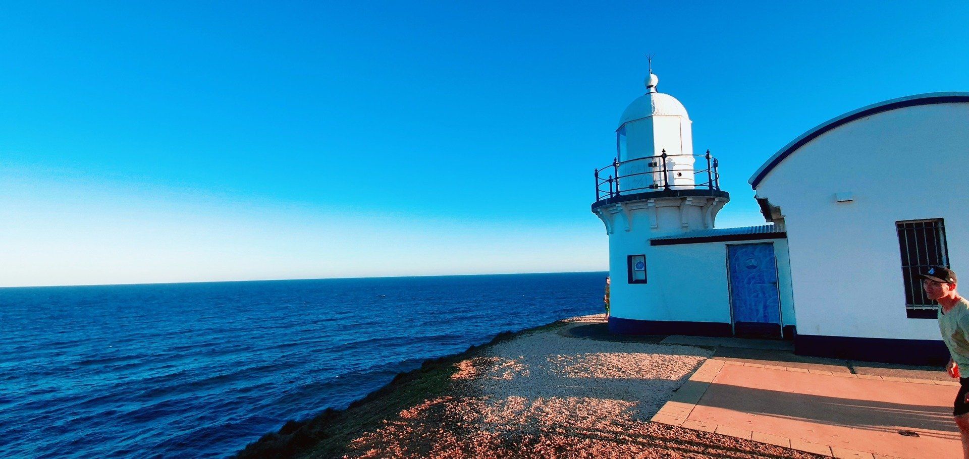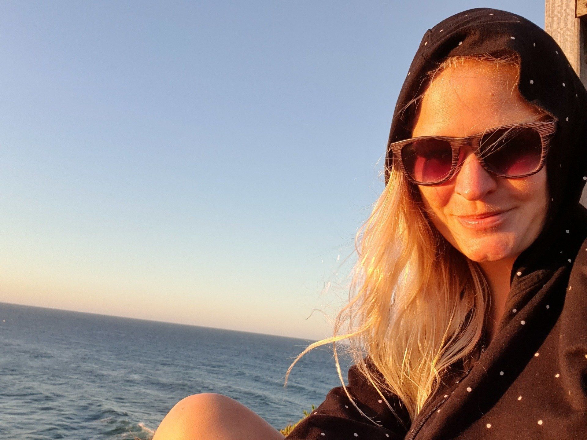 Und irgendwann kommt dann auch ein nackter Mann daher gelaufen, was etwas komisch ist. Aber es passiert nichts, er lebt wohl einfach sein Nacktsein hier aus. Ich habe nur die Flipflops an, aber wieder mal ziehen die Kilometer einfach so vorbei. Kurz vor dem Leuchtturm gehe ich noch zu einer extra Plattform, wo man wohl gut Blauwale beobachten kann. Allerdings ist es jetzt nicht die Saison, sodass es eher unwahrscheinlich ist. Daher schaue ich zwar eine Weile in die Ferne über das leuchtende Meer, aber mache mich dann auch auf zum letzten Stück des Weges. Dann am Leuchtturm angekommen bin ich schon recht müde und freue mich auf die Pause. Hier bin ich natürlich nicht mehr alleine. Der Ausblick auf den anliegenden Strand ist gigantisch, da er sich endlos zieht und ich nicht mal das Ende sehen kann. Die Sonne zeigt auch mal wieder einen fantastischen Showdown und ich denke mir, dass es wirklich ein wunderbarer Tag war.