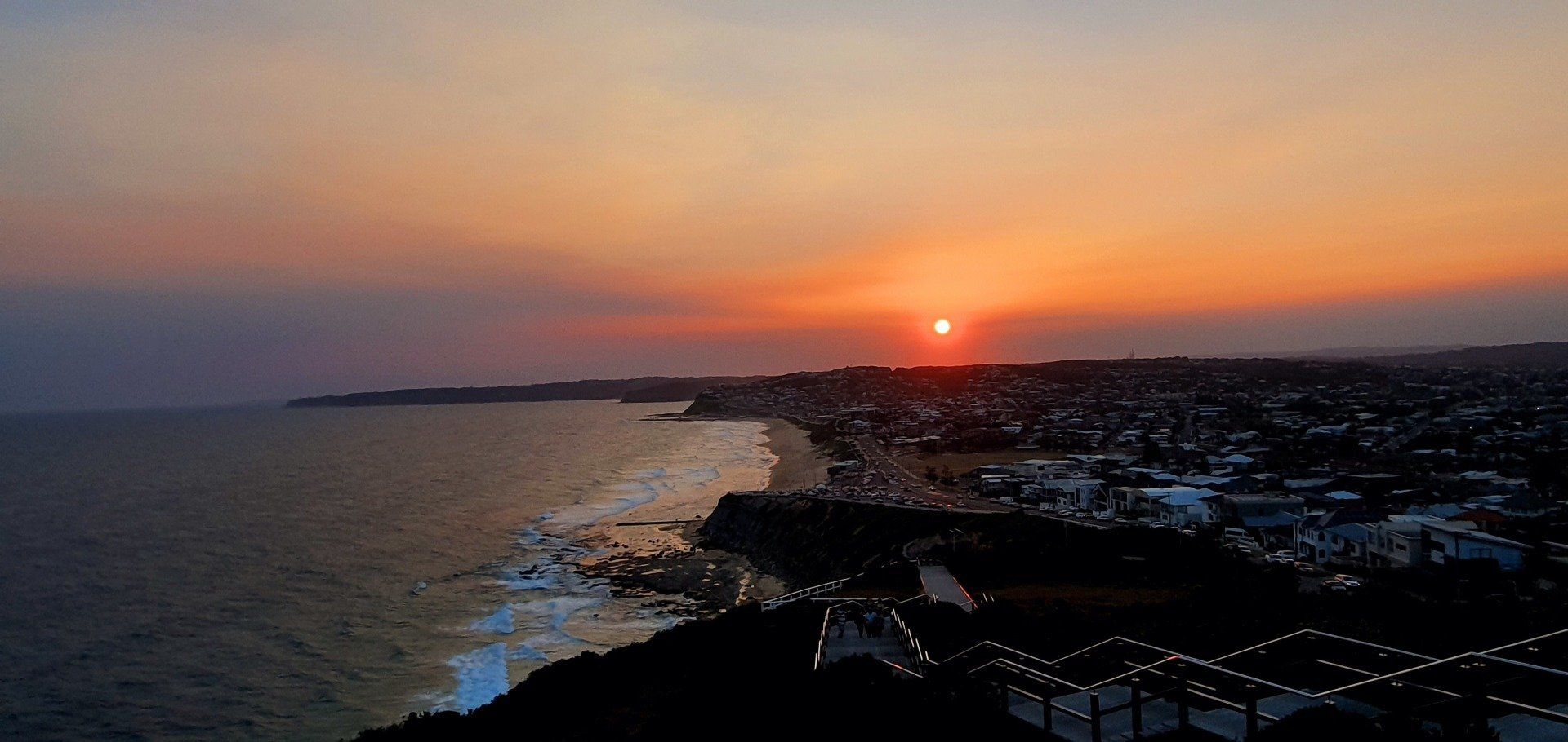 Nachdem alles geregelt ist, laufe ich am Hafen lang. Dieser ist allerdings gerade komplette Baustelle, um ein neues Wohn- und Gewerbegebiet zu kreieren. Nicht wirklich schön, aber ich gehe einfach mal weiter. Die Sonne scheint stark und ist toll, der Himmel strahlend blau. Allerdings ist es extrem windig, wodurch es etwas frisch wirkt. In einem Subway hole ich mir ein Sandwich, allerdings finde ich es nur mäßig lecker, als ich in einer Ecke mehr oder weniger windgeschützt versuche, das Sandwich zu essen. Dann laufe ich weiter in Richtung Stadt und lande wieder auf einem Coastal Walk, der mich am Hafen lang führt, in Richtung Leuchtturm (der Weg dahin ist heute leider geschlossen), wo man über die "Windbrecher" läuft, wo die großen Schiffe aus dem Hafen aufs offene Meer geleitet werden. Es ist wirklich toll, hier lang zu laufen, und so merke ich mal wieder nicht, wie die Kilometer einfach so an mir vorbei ziehen. Am Ende angekommen ist es so windig, dass ich das Handy bei Fotos richtig festhalten muss, aber verweile dennoch eine Zeit und beobachte, wie ein Riesentanker von den Geleitbooten rausgebracht wird. Dann gehe ich wieder zurück, laufe am hübschen, sehr langen Strand von Newcastle entlang (mal wieder ein Indiz, dass ich in einer anderen Gegend bin: Die Warnschilder am Strand weisen auf Haie hin) und lande dann noch auf einem Berg, von wo aus man eine super Aussicht hat. Dann laufe ich noch über den Memorial Walk, der wirklich wunderschön angelegt ist. Hier auf der Höhe schaue ich mir noch den (mal wieder) faszinierenden Sonnenuntergang an und laufe dann zurück durch die Stadt zum Hotel. Es ist ja immer noch Weihnachten, der Boxing day, wie man hier sagt, und in einer mexikanischen Bar, wo ich dann noch was esse, darf ich zu den ohnehin schon hohen Preisen noch einen Feiertagsaufpreis von 10% zahlen. Da aber nicht so viel geöffnet ist, muss ich das wohl "in Kauf nehmen". Es ist nun schon dunkel und ich laufe noch mal kreuz und quer durch die Stadt zurück zum Hotel. Dort packe ich schon mal wieder, obwohl ich nicht wirklich ausgepackt habe, und gehe dann schlafen. Newcastle ist ein wirklich hübsches Städtchen am Meer, was auf dem Weg die Küste hoch auf jeden Fall einen Stopp wert ist. Und so war der Tag durch das lange Spazieren noch sehr schön, auch wenn er kompliziert begonnen hat.