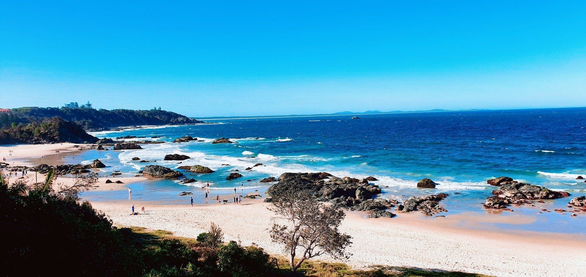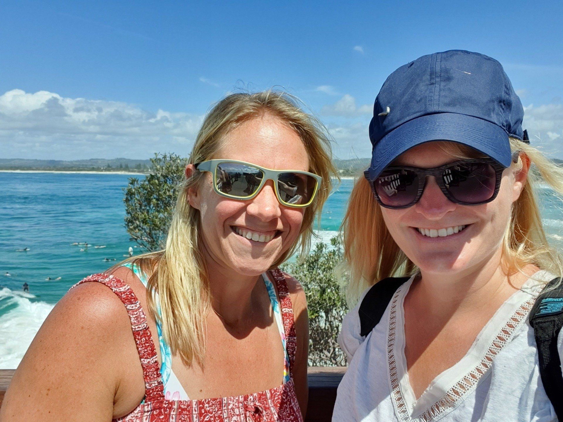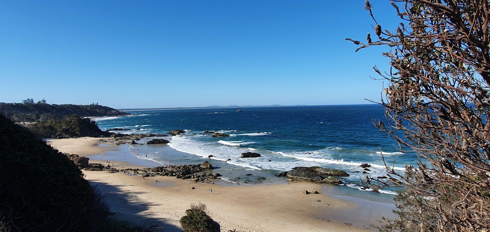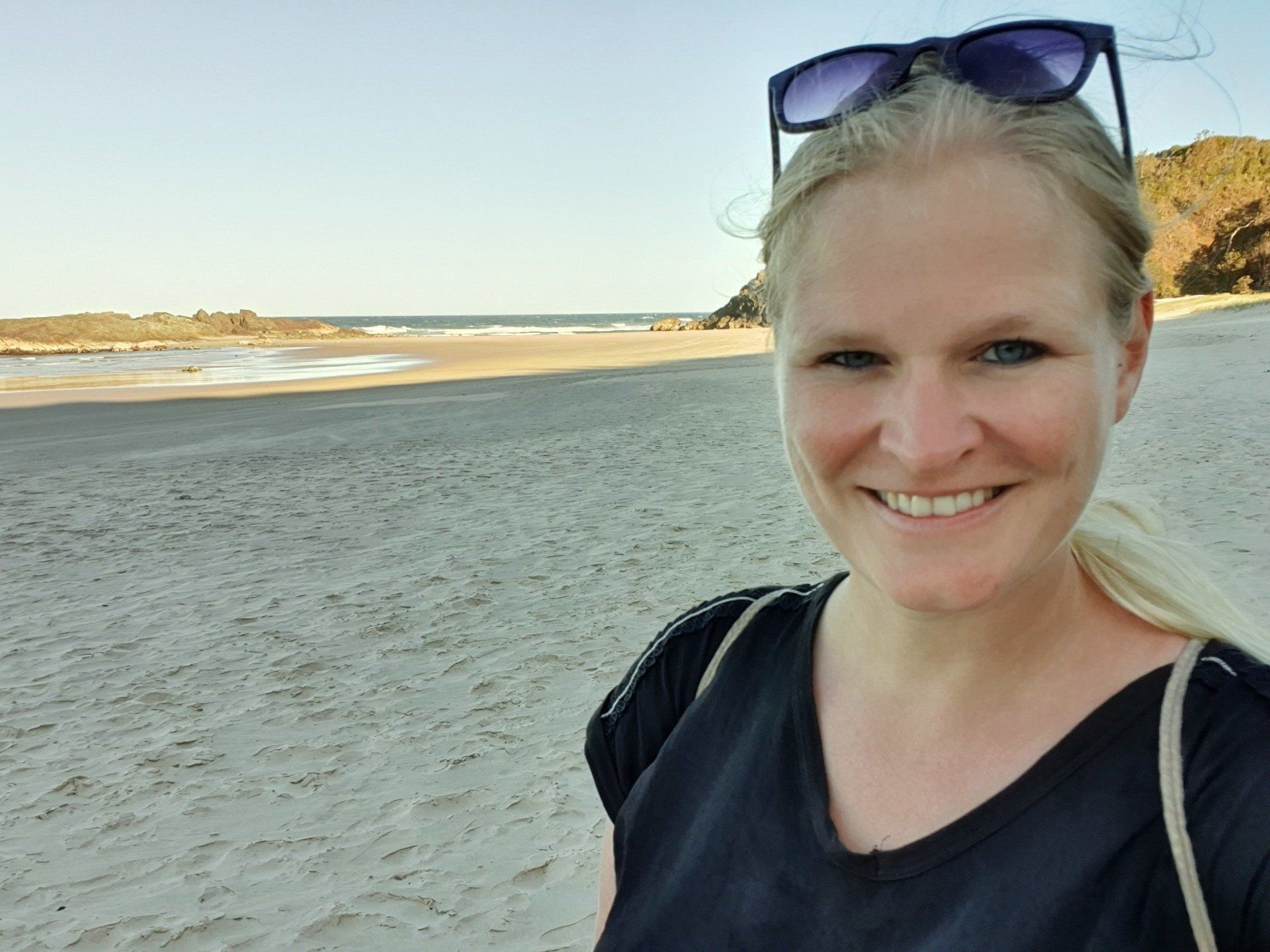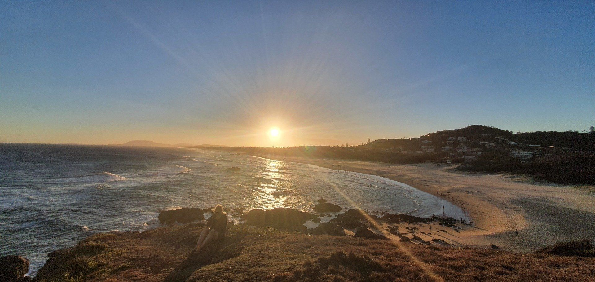 Um 6 Uhr morgens steht Tarryn putzmunter in der Tür und weckt mich. Mitten in meiner tiefsten Nacht :D Die beiden sind also immer noch Frühaufsteher. Haha. Da wir aber zum Strand in Byron Bay wollen, denke ich, kein Problem, da kann ich am Strand ja auch noch lummern, also kein Problem. Um 8 wollen wir los. Also raus aus den Federn, Kaffee schlürfen, aber ohne Frühstück. Die Fahrt dauert etwa eine Stunde, allerdings ist es dort so voll, dass wir ewig keinen Parkplatz finden.