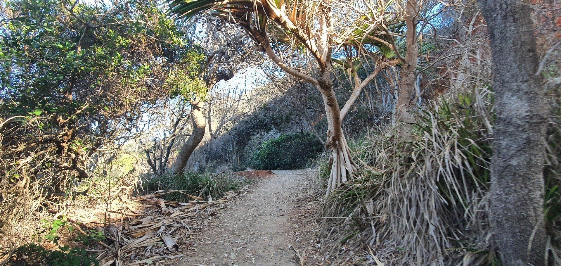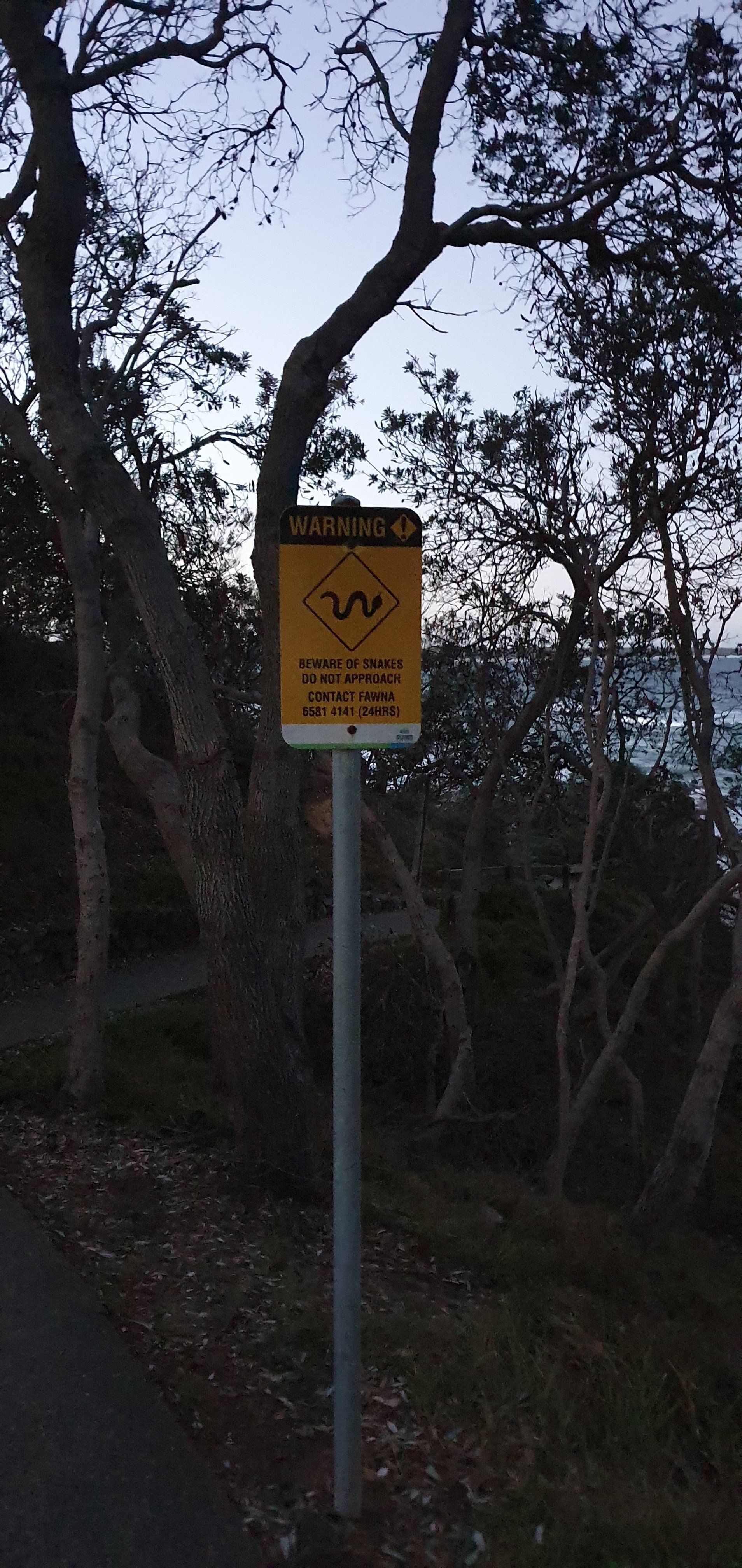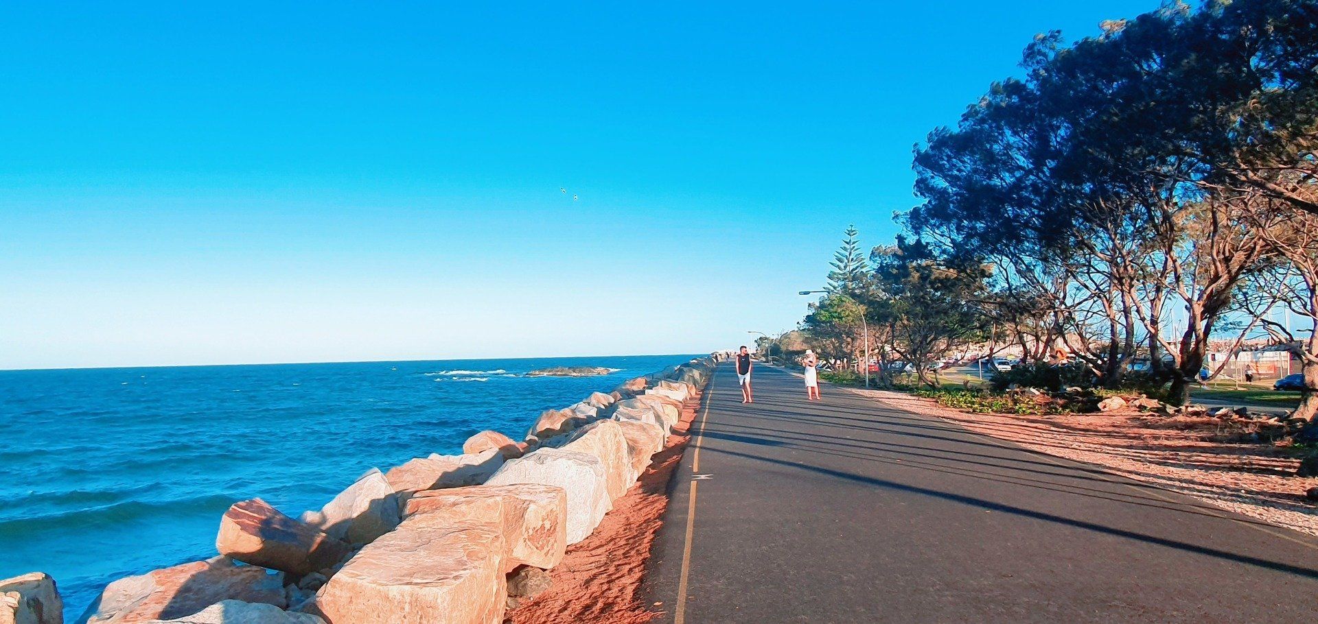 Ich laufe also zum Hostel und bin nicht so amused, weil ich nicht wirklich Lust auf Dorm habe. Aber 2 Nächte werde ich schon überstehen, denke ich. Der Preis ist mit 40 Euro für das Bett pro Nacht allerdings auch extrem überzogen. Die Stadt ist auch recht klein, und die Fußwege sind keine wirklichen, denn es ist mehr eine holprige asphaltierte Straße, deren Fußweg immer wieder durch Gras unterbrochen wird, was das Laufen mit dem Koffer echt zur nervigen Angelegenheit werden lässt. Aber dann komme ich an und die Leute sitzen schon im Hof. Das Zimmer, in dem mein Bett steht, ist direkt am Gemeinschaftsraum. Das Hostel (Beachside Backpackers) ist recht klein, und somit auch recht laut. Das Zimmer ist sehr klein und es stehen 3 wackelige Stockbetten darin. Es ist recht stickig, da es nur einen kleinen Ventilator gibt, und ich kann mir vorstellen, dass die Nacht sehr stickig und nicht so geruhsam wird. Alle Betten sind auch schon belegt, weil es früher Abend ist, und so kann ich nur noch oben unterkommen. Aber ich hatte ja keine andere Wahl. Ich "richte" mich etwas ein und mache mich dann noch mal auf zum obligatorischen Gegendcheck. Hier kann man zu Fuß alles recht gut erkunden. Ich laufe mal los Richtung Meer, den kleinen Teil des Coastal Walks Richtung Hafen, allerdings wird es langsam schon dunkel, und daher laufe ich nicht so viel dort lang. Denn hier stehen dann Warnschilder, dass hier Schlangen unterwegs sind. Ja Meike, du bist in Australien. Haha.