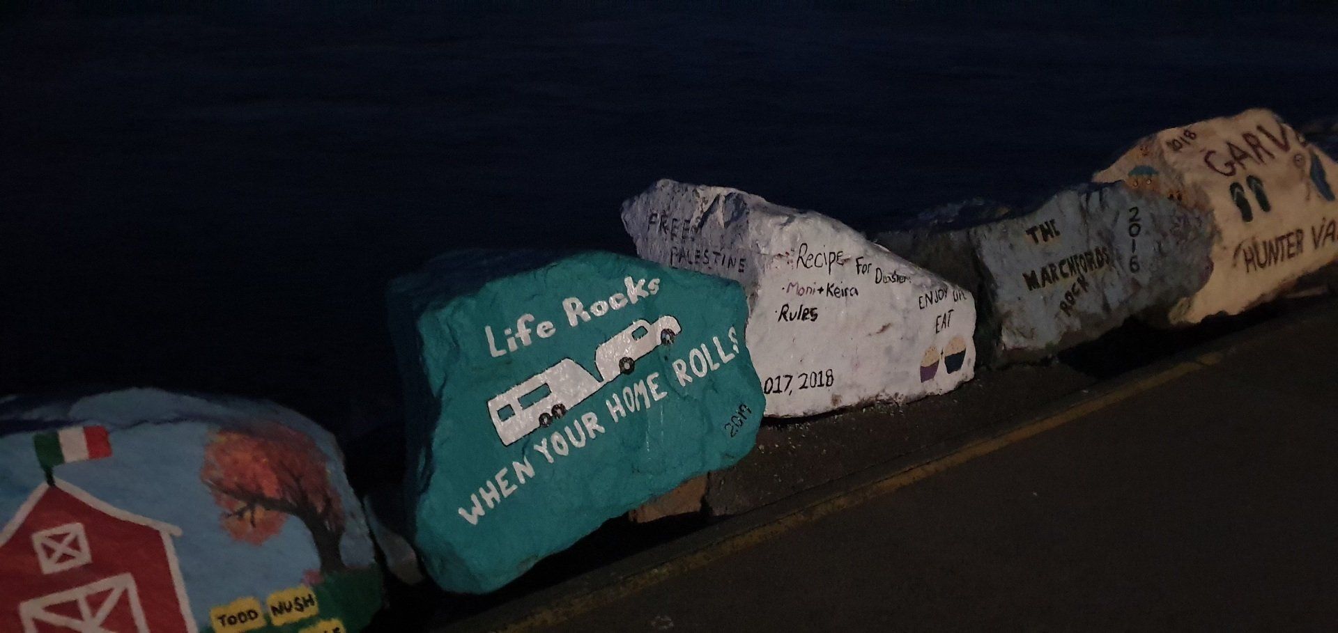 Es ist ein hübscher Weg und am Hafen sind die Steine schön bemalt. Hier laufe ich eine Weile rum und bestaune die tollen Malereien, die von verschiedenen "normalen" Bürgern, also nicht von Künstlern, gestaltet wurden.