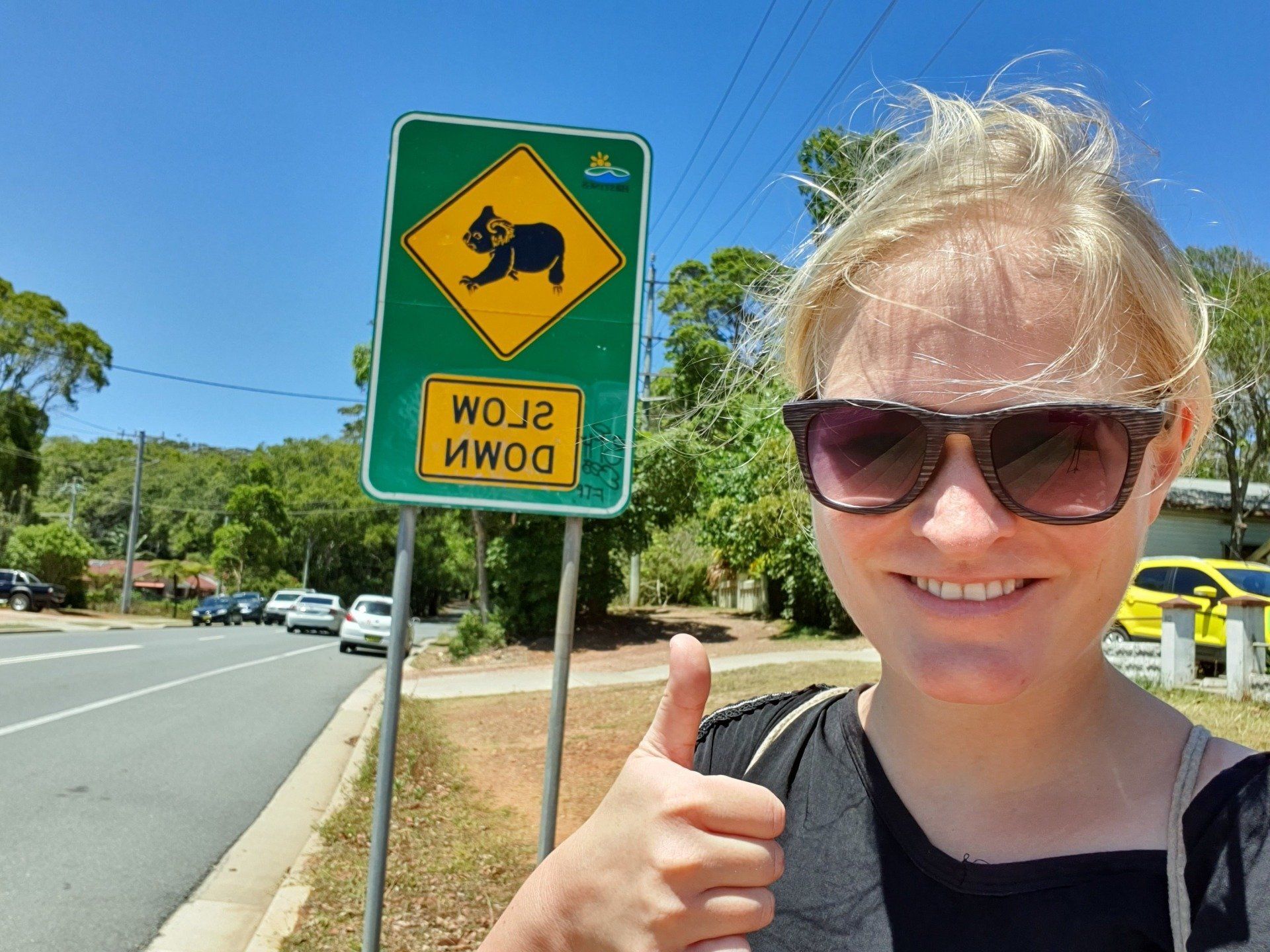 Dann laufe ich los, mein erstes Ziel ist das Koala Hospital, was etwa 3 Kilometer entfernt ist. So lerne ich das Städtchen mal kennen und freue mich, als ich am ersten Koala-Verkehrsschild vorbeikomme. Ich freue mich richtig, denn Koalas sind mit meine Lieblingstiere und was hier bei den Bränden aktuell so abgeht, das ist echt schlimm für die kleinen Kerlchen.