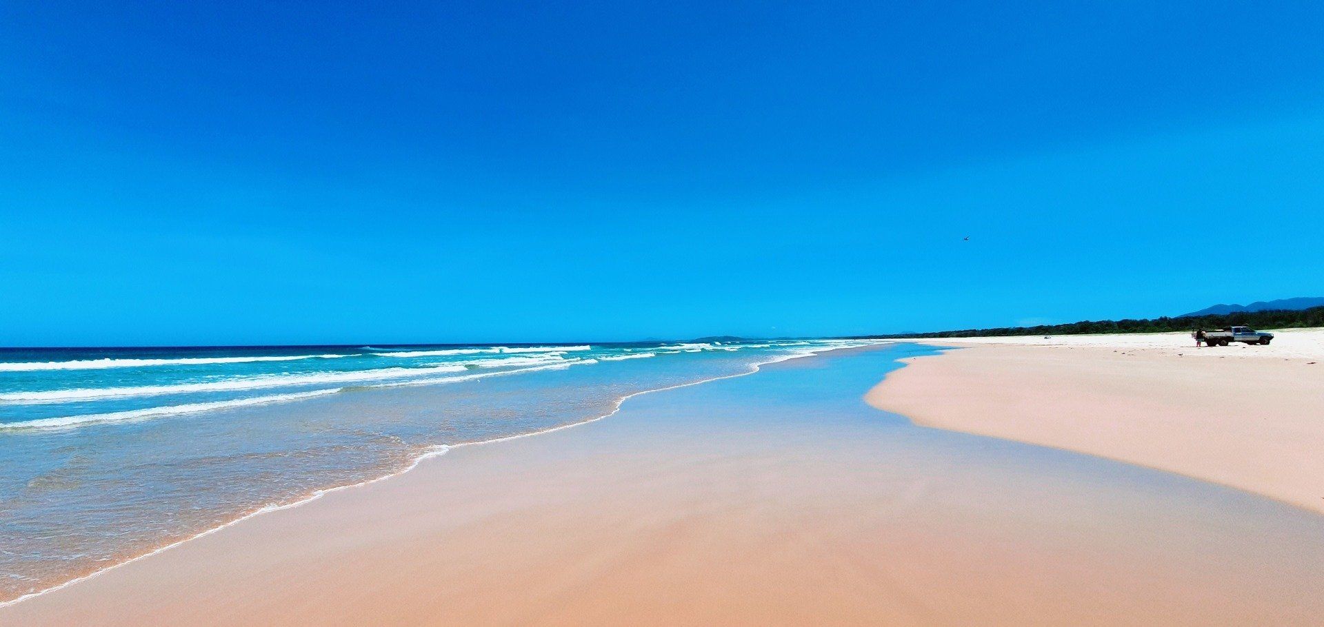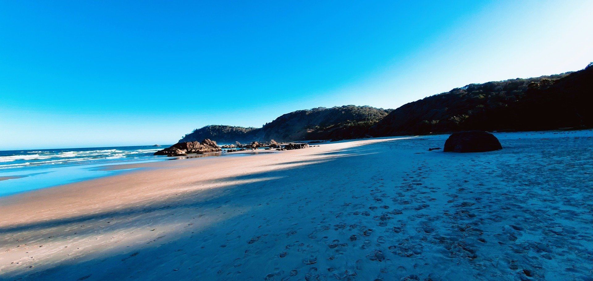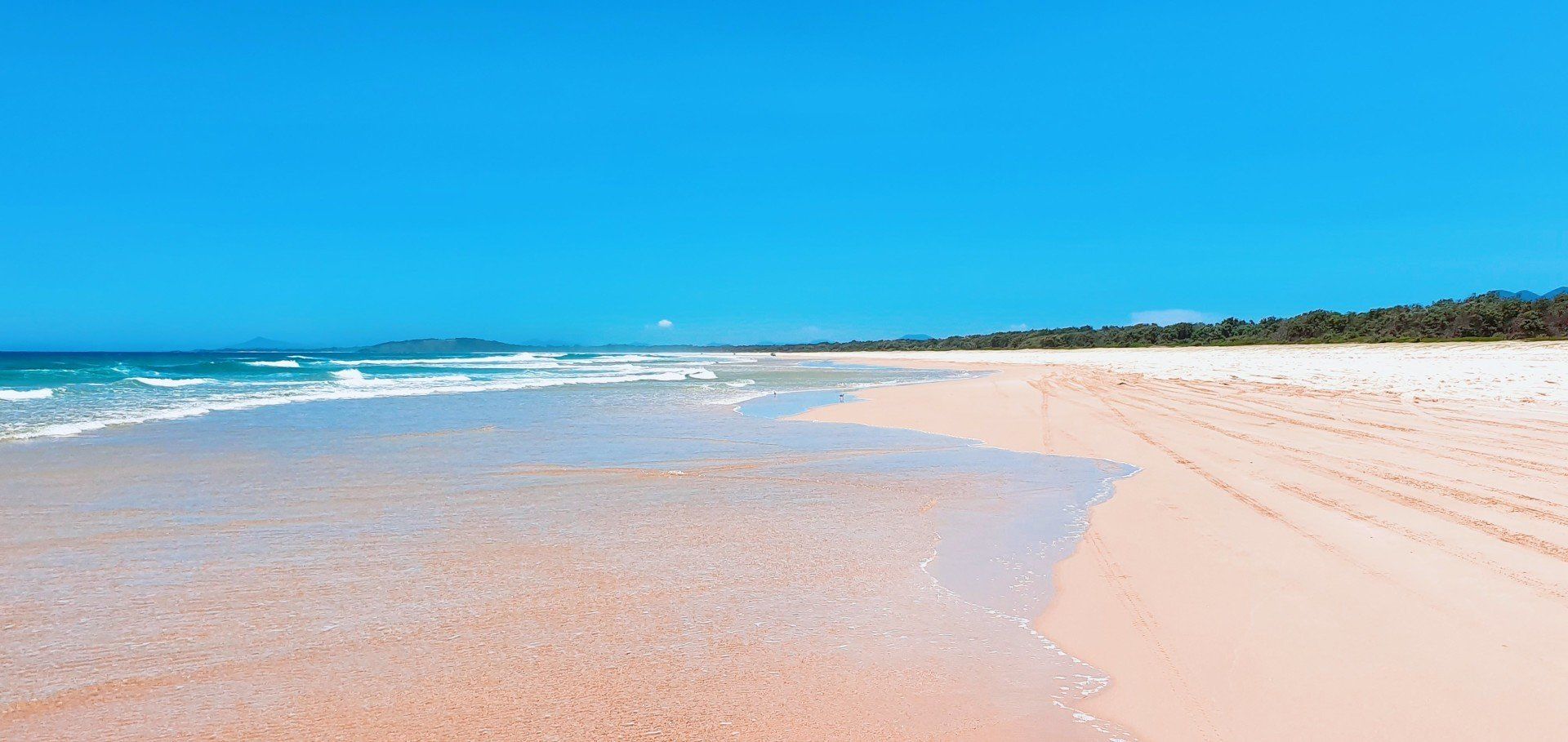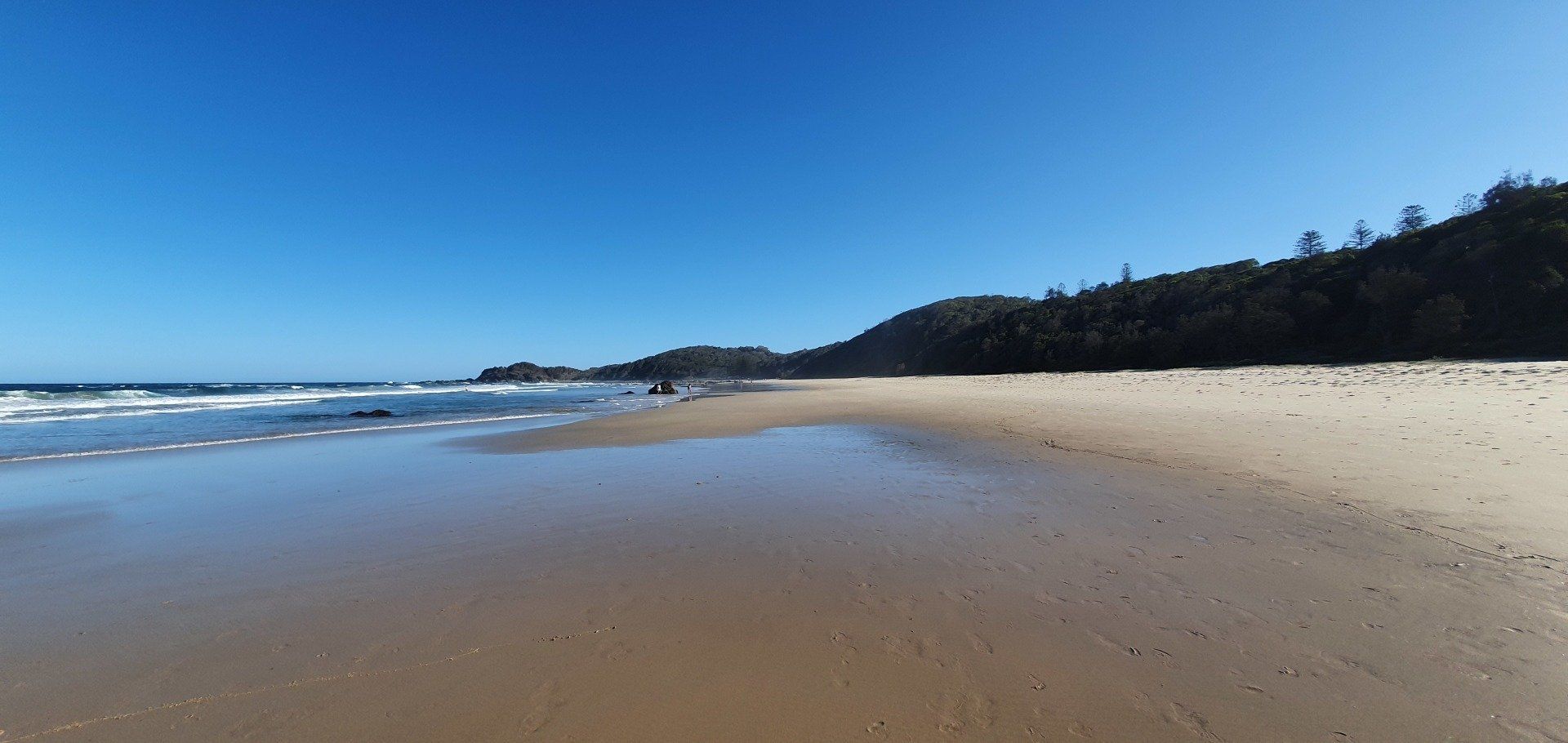 Weit und breit ist wieder kein Mensch, und die Farben sind der Wahnsinn. Allerdings ist es auch ein Strand, an dem Jeeps fahren dürfen, was etwas schade ist. Hält sich aber auch in Grenzen. Ich bin froh, dass ich mich von dem Typ nicht habe abhalten lassen und umgekehrt bin, denn dieser Strand ist mit Abstand der schönste bisher hier in Australien. So laufe ich also noch mal etliche Kilometer hier entlang, an diesem menschenleeren Strand. Zwei Stunden vor Zugabfahrt laufe ich dann wieder zurück, gehe noch was essen und dann zurück zum Bahnhof. Dort sammle ich mein Gepäck ein und warte dann auf den Zug, der nach "Casino" fährt. Von dort geht es dann mit dem Bus nach Surfers Paradise, wo mich Tarryn abholen will. Ab hier fahre ich in eine andere Zeitzone, wo es dann eine Stunde früher ist. Scheinbar will man in New South Wales Lichtzeit sparen :)