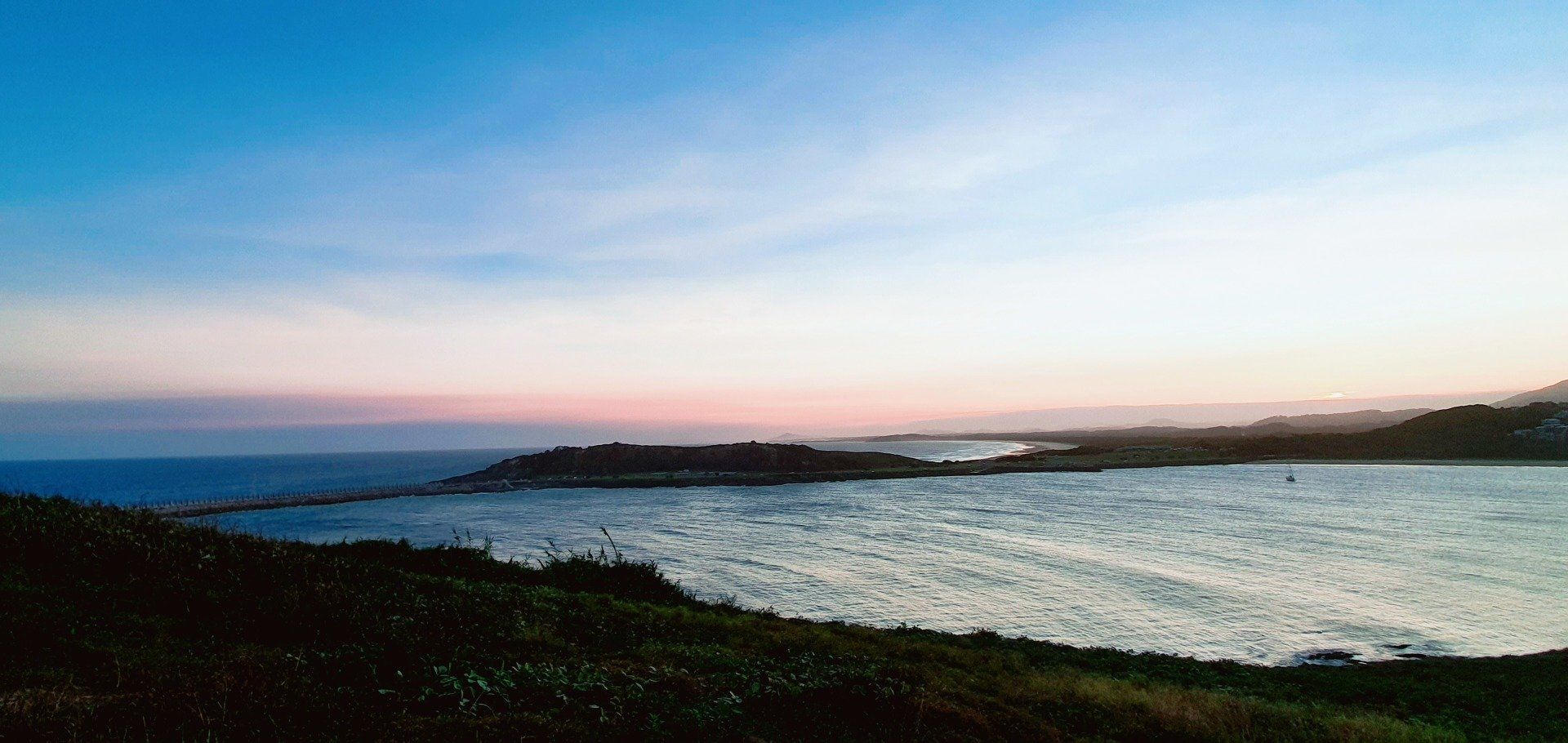 Nach dem Frühstück schlender ich dann noch am Meer etwas entlang und auch am Hafen, und dann mache ich mich langsam auf den Weg zurück, denn die magische 12-Uhr-Grenze nähert sich. Allerdings bin ich so müde, dass ich mir noch mal ein Uber suche. Wieder gibt es nur 2 Autos, aber was solls. Dann bin ich endlich da, und kann einchecken. Gerade mal ein Zimmer ist fertig, der Rest noch voll im Reinigungsmodus. Es gibt keinen Aufzug, keiner hilft mit dem Gepäck, alles ist sehr in die Jahre gekommen und schön ist definitiv anders. Auch die Klimaanlage ist ein uraltes Monstrum, das sich nur manuell bedienen lässt, wenn man auf einen Stuhl steigt. Aber es ist da: das Bett. Ich springe unter die Dusche und haue mich dann hin. Der Krach draußen kann mich zum Glück nicht wach halten, weil ich echt so platt bin. Immerhin ist das Bett recht sauber und auch relativ bequem. 3 Stündchen gönne ich mir, aber natürlich mit Wecker. Danach bin ich jetzt nicht fit wie ein Turnschuh, und könnte auch noch viel weiter schlafen, aber ich will noch mal los. Außerdem würde ich dann auch in der Nacht nicht durchschlafen können. Gegen 4 laufe ich dann los, wieder Richtung Hafen, und dieses Mal auch durchgehend zu Fuß. Noch einen Halt am Supermarkt, dann laufe ich zum Botanischen Garten, den ich gerne besuchen möchte, der aber leider schon zu hat, weil ich zu spät unterwegs bin. Dadurch lande ich aber auf einem schönen kleinen Wanderweg, der zum Meer führt. Durch ein Naturschutzgebiet, an einem Flüsschen entlang, richtig hübsch zu laufen. Wieder am Hafen, wo ich mich ja mittlerweile schon "auskenne", laufe ich über den künstlich angelegten Steg zur Muttonbird Insel. Hier wohnen und nisten die einheimischen "Muttonbirds" (Dunkelsturmtaucher), und man kann einen schönen Ausblick auf die Stadt genießen und einen tollen Sonnenuntergang sehen. Es ist ein Naturschutzgebiet und viele Schilder weisen darauf hin, dass hier die Vögel nisten und man aufpassen soll. So ganz verstehe ich zwar nicht, warum man dann so einen Weg dahin bauen muss, der natürlich die Leute anzieht und das Ökosystem aus dem Gleichgewicht bringt (so steht es auch geschrieben), aber gut. Hoffentlich respektieren die Besucher die Natur und Tiere. Ich laufe einmal auf die andere Seite auf dem Berg und die Aussicht mal wieder genial.