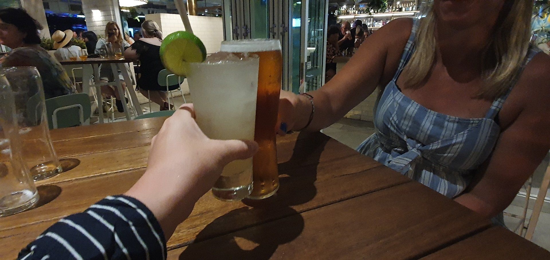 Auf dem Weg zurück halte ich noch in einer Bar, um etwas zu essen. Als ich nach einem typischen australischen Bier am Tresen frage, lande ich plötzlich im Beertasting und probiere verschiedene Biere und unterhalte mich nett mit den Kellnern.