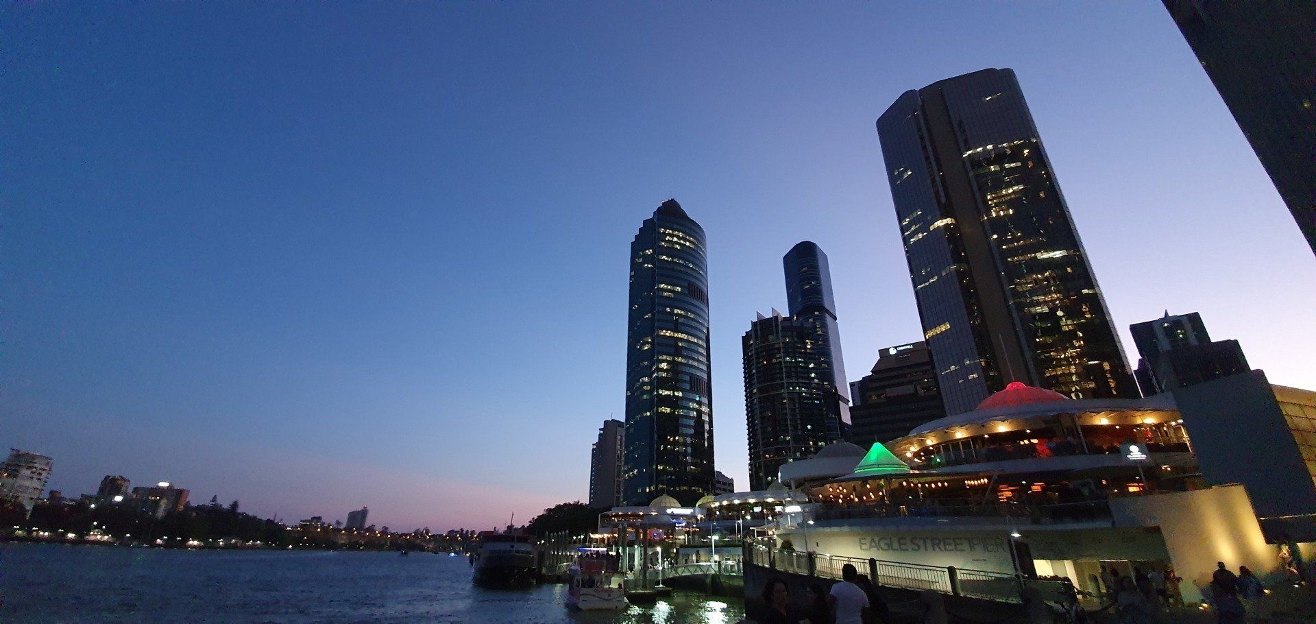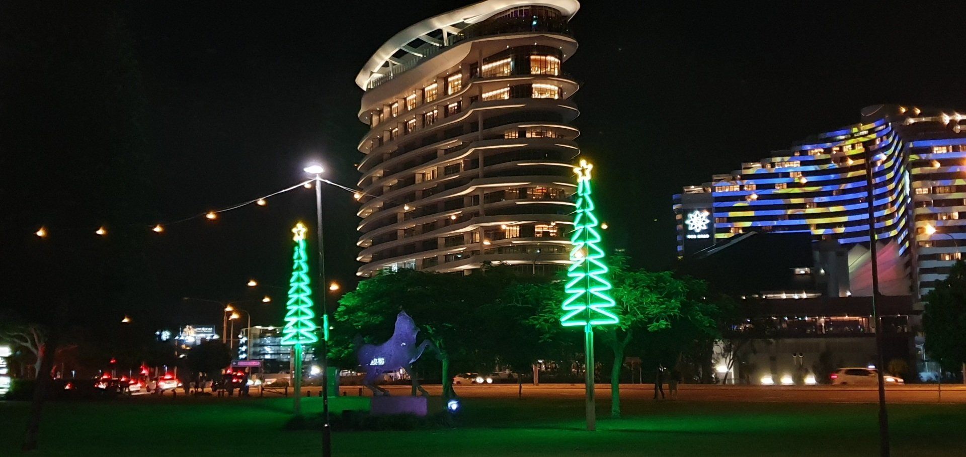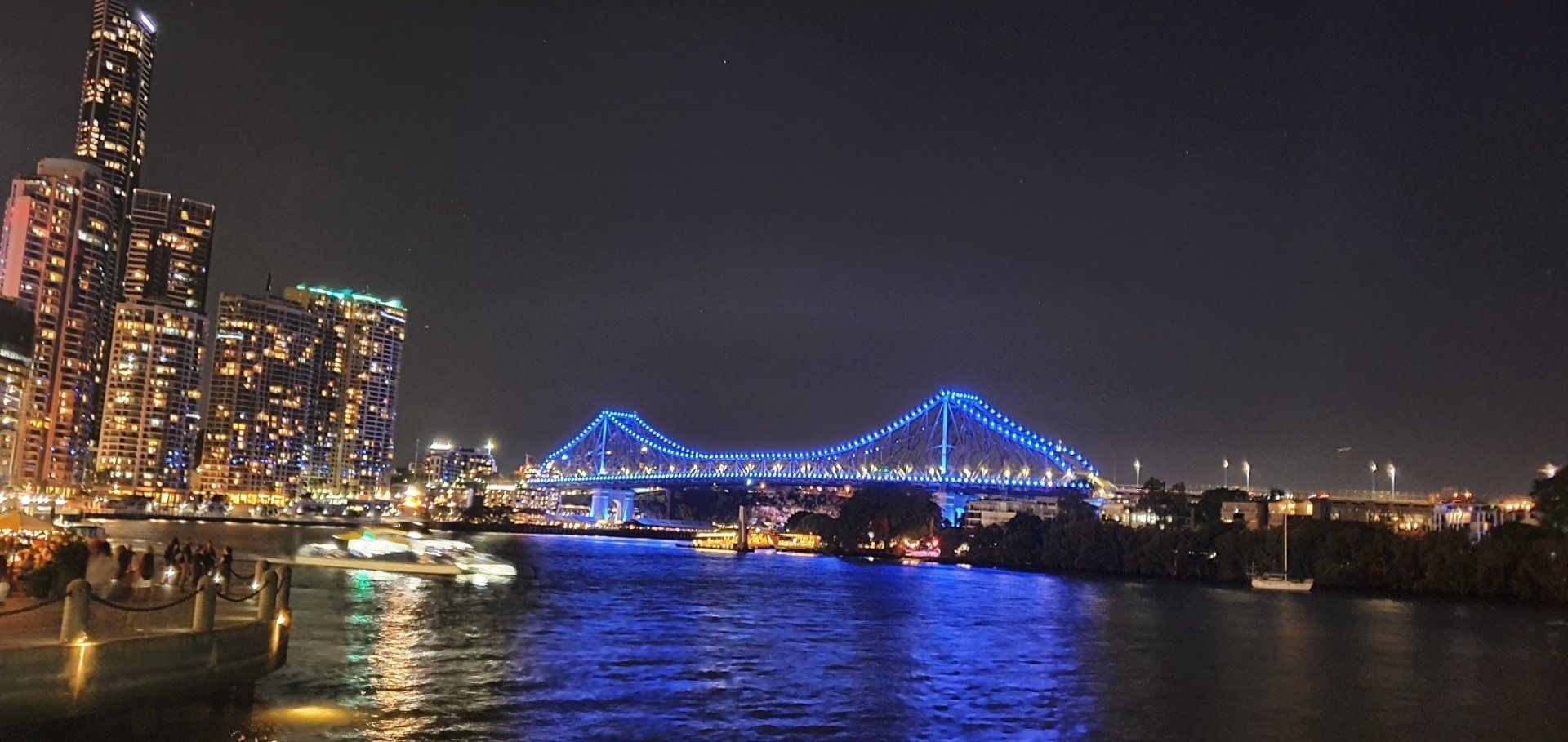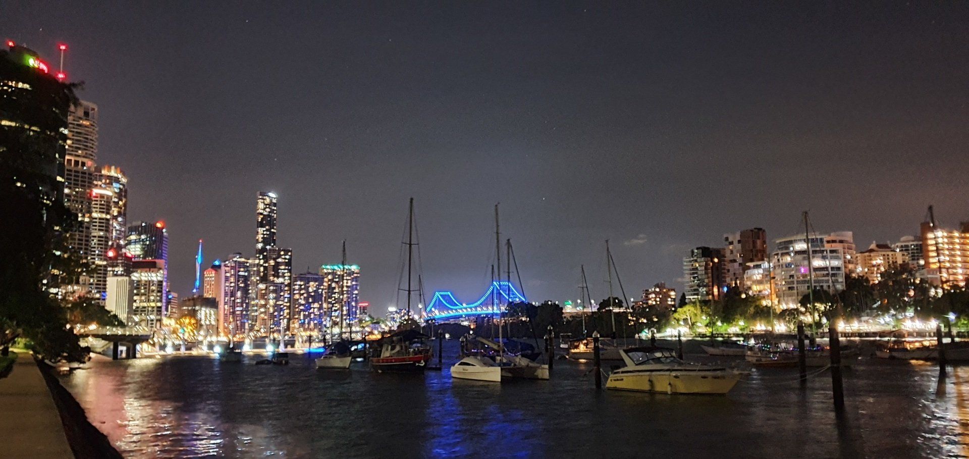 Aber als es dann endlich losgeht, ist der Verkehr besser und die Fahrt geht recht schnell und gut vorbei. In Brisbane komme ich am Busbahnhof an, von wo aus ich ein Uber bestelle und zu meinem Apartment fahre: Oaks Towers. Hier habe ich ein Apartment, mit Selbstverpflegung und einem schönen Balkon. Ich habe hier extra ein Zimmer weiter oben gebucht, was ein wenig teurer ist, weil ich Lust auf selbst kochen und mal wieder ein "Wohnungsgefühl" habe, und gerne eine schöne Aussicht auf die Stadt haben mag. Beim Checkin erhalte ich dann aber leider nur ein Zimmer im 25. Stock, was eine Etage über den günstigeren ist, und da bin ich doch etwas enttäuscht, weil ich vorher extra danach gefragt hatte. Aber gut, das Apartment ist super stylisch, sehr sauber und ich habe ja trotzdem auch eine Aussicht. Aber natürlich nicht wie im 52. Stock. Also das beste draus machen, auch wenn es um das Geld dann schade ist. Es gibt ein Schlafzimmer, ein Wohn-/Esszimmer und eine kleine Küche, sowie eine Waschmaschine, die ich gleich mal ausnutze, um den gesamten Kofferinhalt mal wieder zu waschen. Und der Wintergarten mit Aussicht ist auch klasse. Nachdem ich die Sachen reingebracht habe, drehe ich wie immer die Veedelsrunde und verschaffe mir einen ersten Eindruck. Gefällt mir ganz gut, es wirkt sehr sauber und atmosphärisch. Dann gehe ich zum Supermarkt und kaufe für die nächsten 3 Tage ein, worauf ich mich sehr freue, mal selbst wieder zu kochen und Frühstück zu machen. Es ist nicht weit und ich kriegen im Supermarkt auch wirklich alles, was ich will. Ein komisches Gefühl, aber es ist eben nicht mehr Asien. Es tut mal richtig gut, essen wie deheem :D Auch wenn es super teuer ist, kaufe ich einfach alles, auf was ich Lust habe und schleppe es dann zurück. Dann gehe ich noch mal los, Richtung Bahnhof, und will mal den Weg auschecken. Denn am 5. muss ich von dort zum Flughafen fahren und will mir das Taxi oder Uber sparen. Da ich eh noch eine Runde drehen will, laufe ich den Weg und stelle zufrieden fest, dass die 1,3 Kilometer gut machbar zu sein scheinen, auch mit Koffer. Der Weg führt mich durch die Einkaufsstraße, die noch hübsch weihnachtlich dekoriert ist, und mein guter Eindruck der Stadt bestätigt sich immer mehr. Dann gehe ich noch kurz an den Brisbane River und schaue mir an, wie die Lichter der Stadt im Dunkeln auf den Fluss reflektieren und die Goodwill-Brücke schön beleuchtet wird. Dann gehe ich zurück, koche was und gehe dann ins Bett, was sehr bequem ist. Für die nächsten Tage habe ich nicht wirklich was geplant. Ich habe zwar im Kopf, mal einen Fallschirmsprung hier zu machen, oder auch mal ins Wildlife Sanctuary zu fahren, oder auch zu Fraser Island, aber ich habe gerade null Lust auf Pläne und lasse mal alles auf mich zukommen.