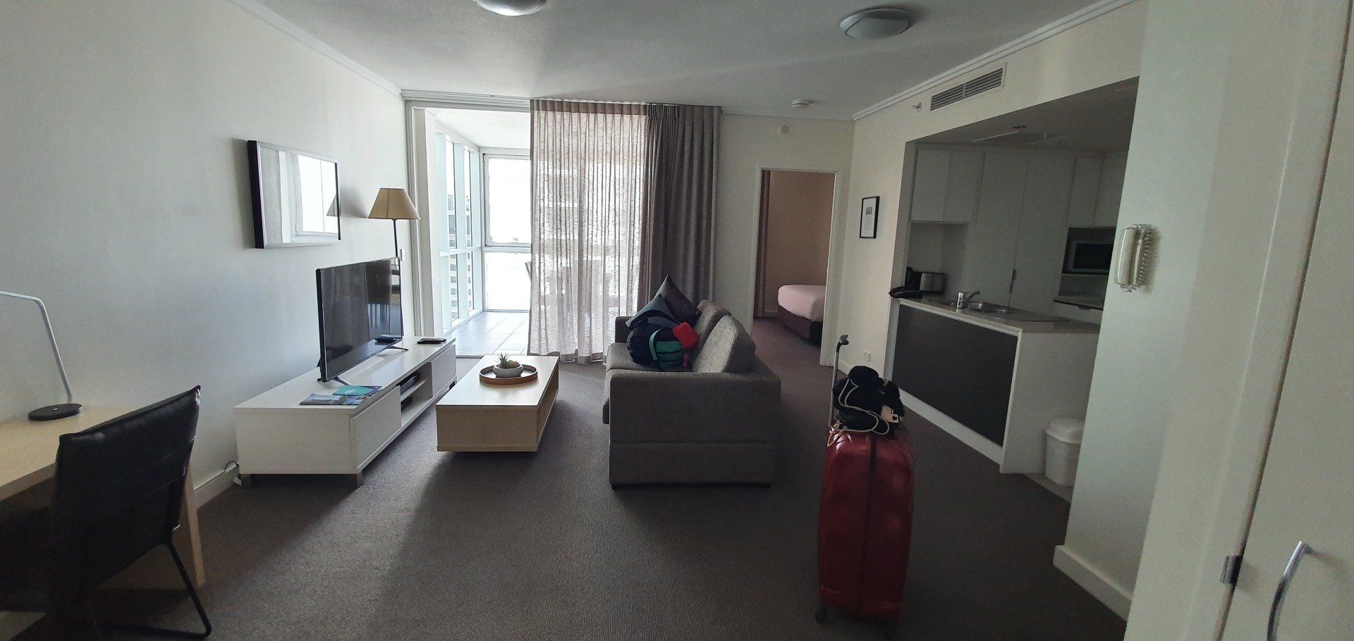 Das Bett war sehr bequem und entsprechend gut habe ich auch geschlafen. Ich gehe zum Frühstück, was sehr vielfältig und lecker ist, und frühstücke gemütlich und lange. Dann frage ich noch, ob ein späterer Checkout möglich ist, da ich nicht mehr vor habe, rauszugehen, und die Bahn erst um halb 2 geht. Bis 12 ist es möglich, und so bleibe ich noch eine Weile im Zimmer. Zwischendurch muss ich noch mal losziehen, einen Adapter kaufen, weil meiner ("Weltadapter", haha) in Australien nicht passt. Auch hier gestaltet es sich schwierig, einen zu finden, der für deutsche Stecker passt, und so muss ich in 3 verschiedene große Kaufhäuser laufen, um letztlich zum Ziel zu kommen. Aber ohne wird es schwierig. Wieder eine andere Erwartung gehabt, weil ich dachte, in Australien kriegt man alles immer und überall. Aber ich bin schon von Anfang an eines Besseren belehrt worden.