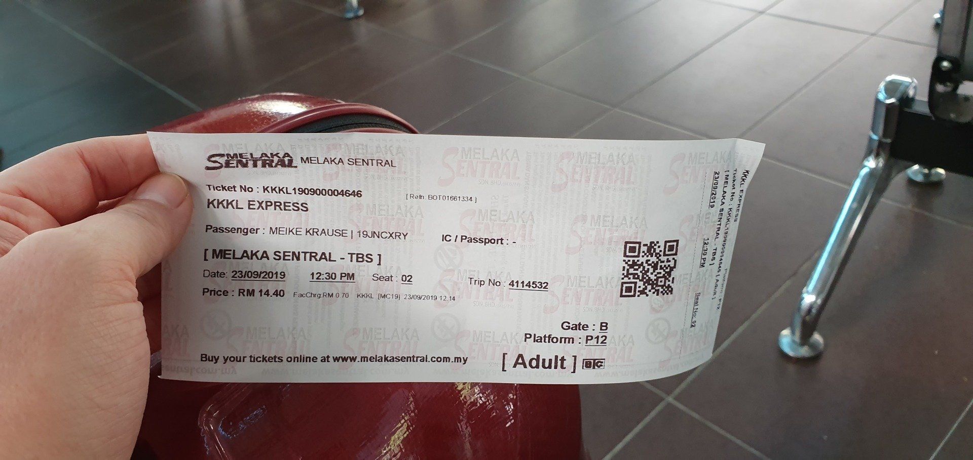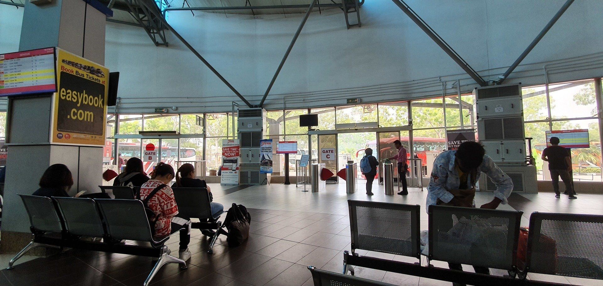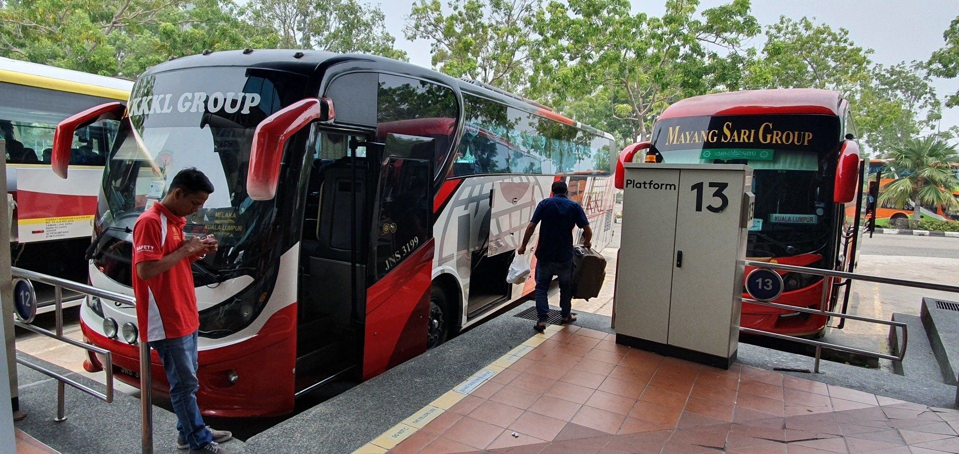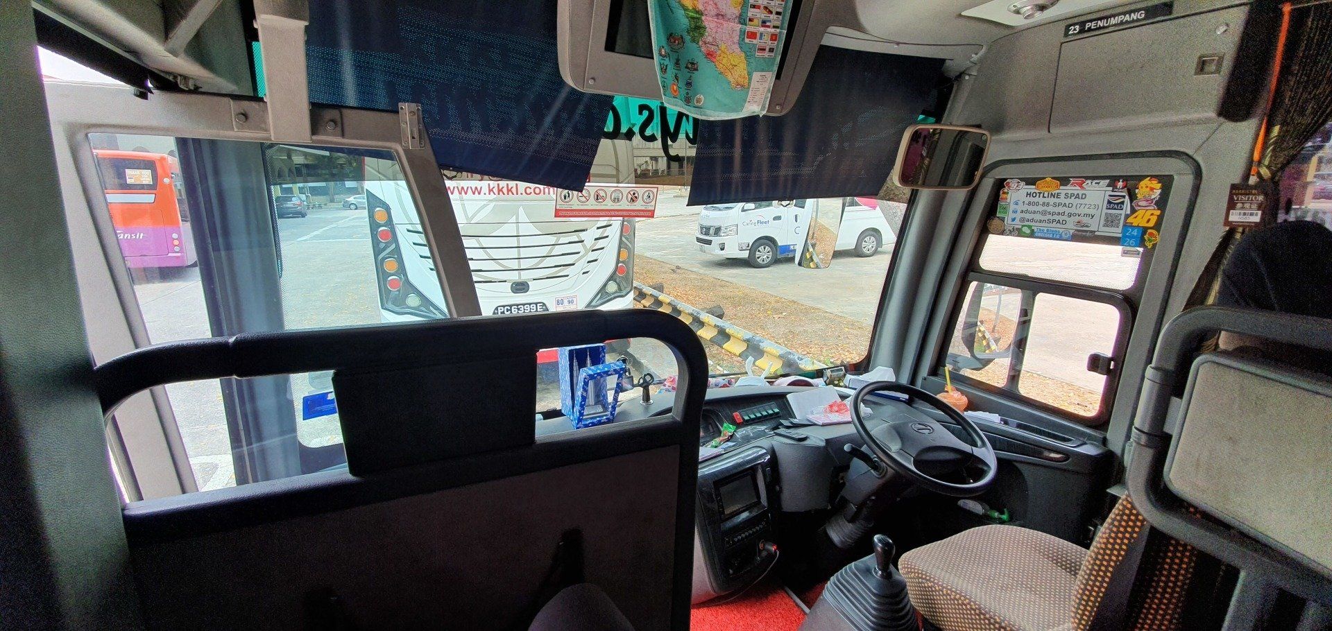 Dann packe ich gemütlich, checke aus, verabschiede mich von den Leuten und rufe mir um viertel vor 12 ein Grab. Dann denke ich, ich bin doch etwas spät dran. Weil man eigentlich das Ticket eine halbe Stunde vor Fahrtantritt noch am Schalter holen soll. Nun, schauen wir mal. Der Fahrer verfährt sich und um kurz vor 12 gehts los, Ankunft viertel nach. Aber na ja... Ich glaube, es fahren noch viele andere Busse nach KL, also kein Stress. Und so ist es, alles klappt, ich muss nicht lange warten und der Bus fährt mehr oder weniger pünktlich ab. Die Stationen sind auch super einfach zu finden an dem Busbahnhof, sodass man sich da keine Sorgen machen braucht. Vielleicht ein bisschen mehr Vorlauf mit Gepäck, um nicht zu sehr unter Stress zu geraten. Wieder mit KKKL Group geht die Fahrt dann los, der Bus ist nicht mal halb voll, die Beinfreiheit wieder eine Freude und man sitzt bequem. Kein WLAN, aber nicht weiter schlimm. Nach etwa 1 3/4 Stunden kommen wir auch schon an, das ging flott. Ich hatte ja mit Schlimmerem gerechnet, nach der letzten Fahrt ;)