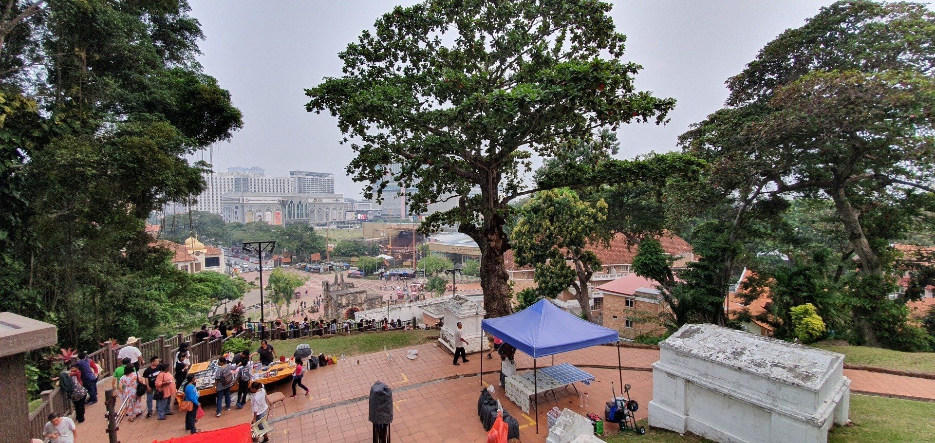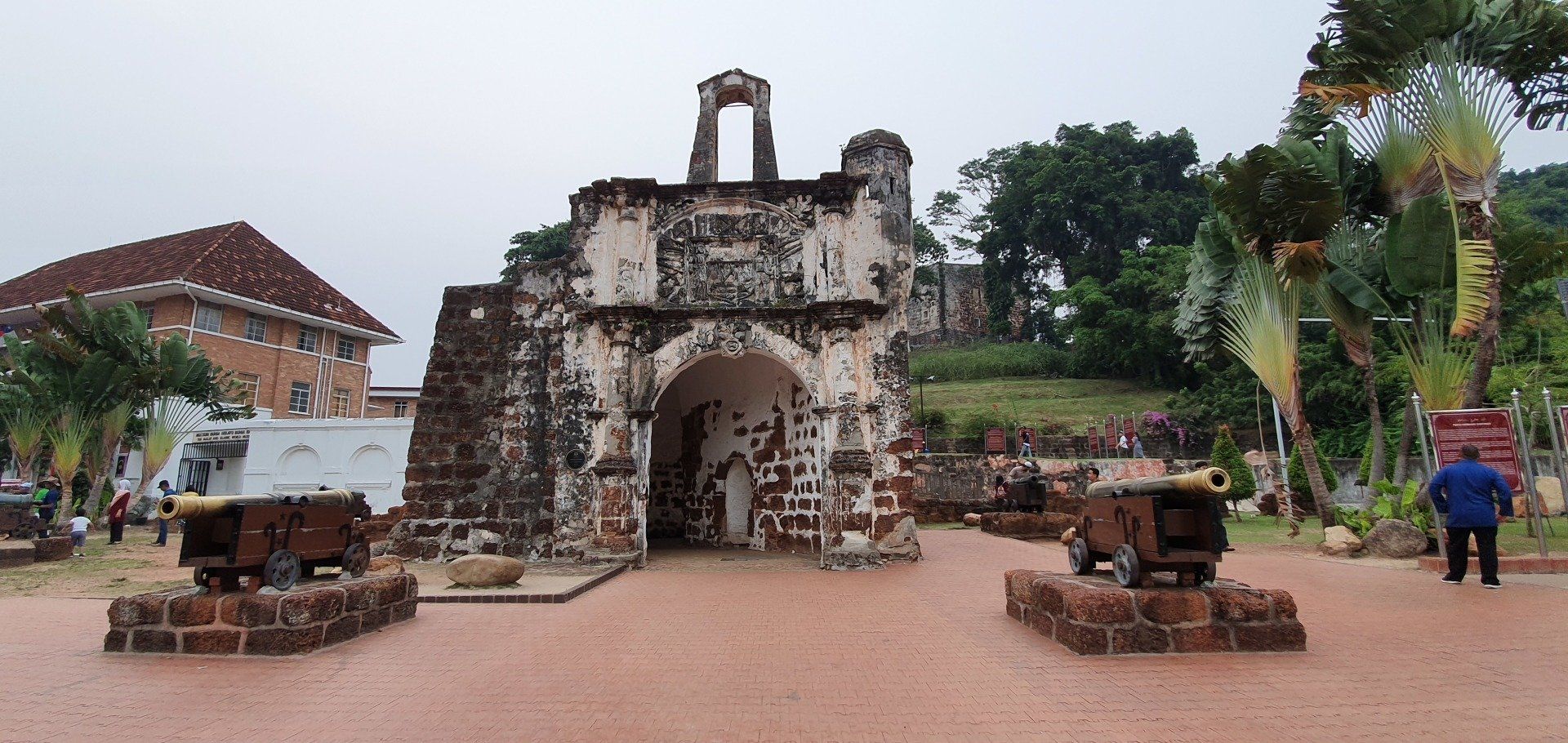 Der Weg zum Stadthaus ist schnell gefunden, und von dort geht man einen kleinen Hügel hinauf zur Kirche. Ich habe keine Ahnung, was mich erwartet und bin dann total fasziniert. Sie ist nicht mehr "funktionstüchtig", aber die alten Steine stehen einfach alles überdauernd da, es fehlt das Dach, aber dennoch ist ein Spirit zu fühlen. Und das, obwohl hier die meisten Touris hinkommen. Dies sind im Übrigen wenige Europäer, die ich hier treffe. Gerade mal eine Handvoll. Ich verweile eine Zeit in den Gemäuern und laufen dann an der alten Festung über den Hügel wieder runter zur Porta de Santiago. Stadtgeschichtlich sind hier die Portugiesen unterwegs gewesen, und dies sind die Überreste der Gebäude. Wirklich schön und ich freue mich, dass sie nicht dem Erdboden gleich gemacht wurden. Zudem gehört Malakka auch zum Weltkulturerbe. Nach dieser kleinen Runde will ich mir mal was zum Essen suche und lande, fast neben den historischen Gebäuden, in einer Einkaufsmall. So kommen alt und neu mal wieder direkt zusammen. Dort esse ich was Kleines und gucke mir die Mall an. Es ist nicht so, wie man es von uns oder aus Amerika z.B. kennt, aber der Trend ist schon da und auch modern. Etwas "unaufgeräumt", hätte ich jetzt mal gesagt.