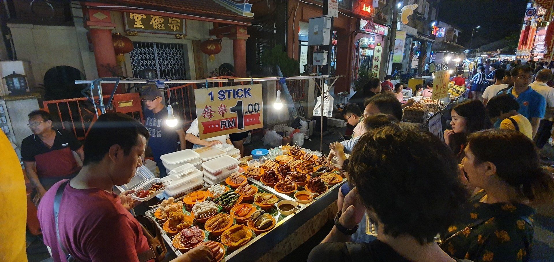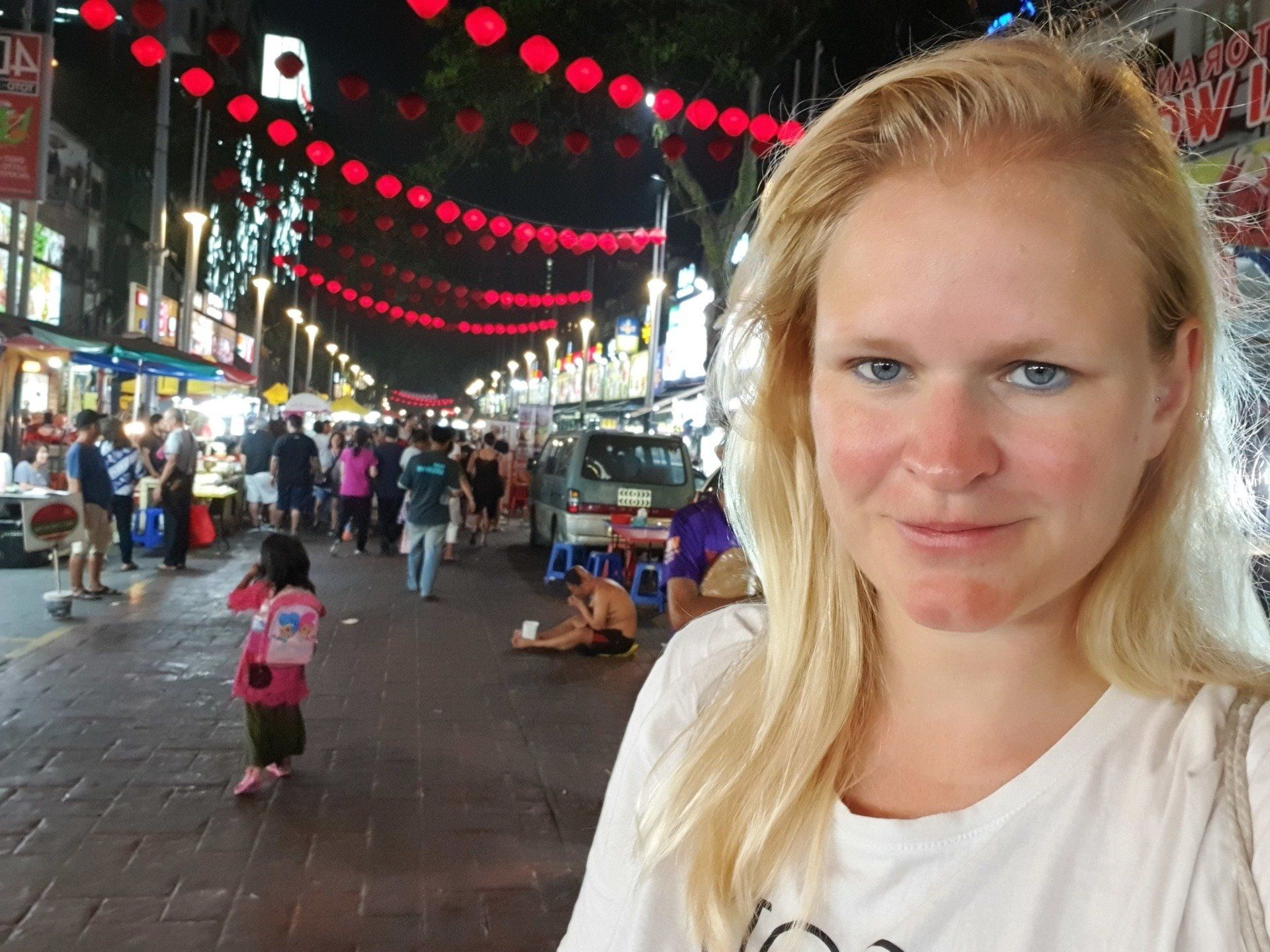 Die Straße mit dem Markt ist ein buntes Treiben, es gibt alles mögliche an Essen und Kram zu kaufen. Am Ende der Straße gibt es noch einen chinesischen Tempel, davor wird gerade eine Art Karaokewettbewerb durchgeführt, was ich mit den chinesischen Einwohnern und ihren Gewohnheiten meine: denn sie singen ja einfach gerne. Und auch gut, da kann man nichts sagen.