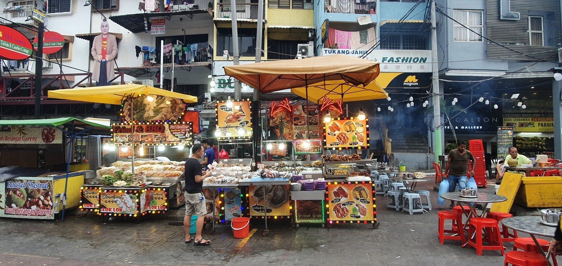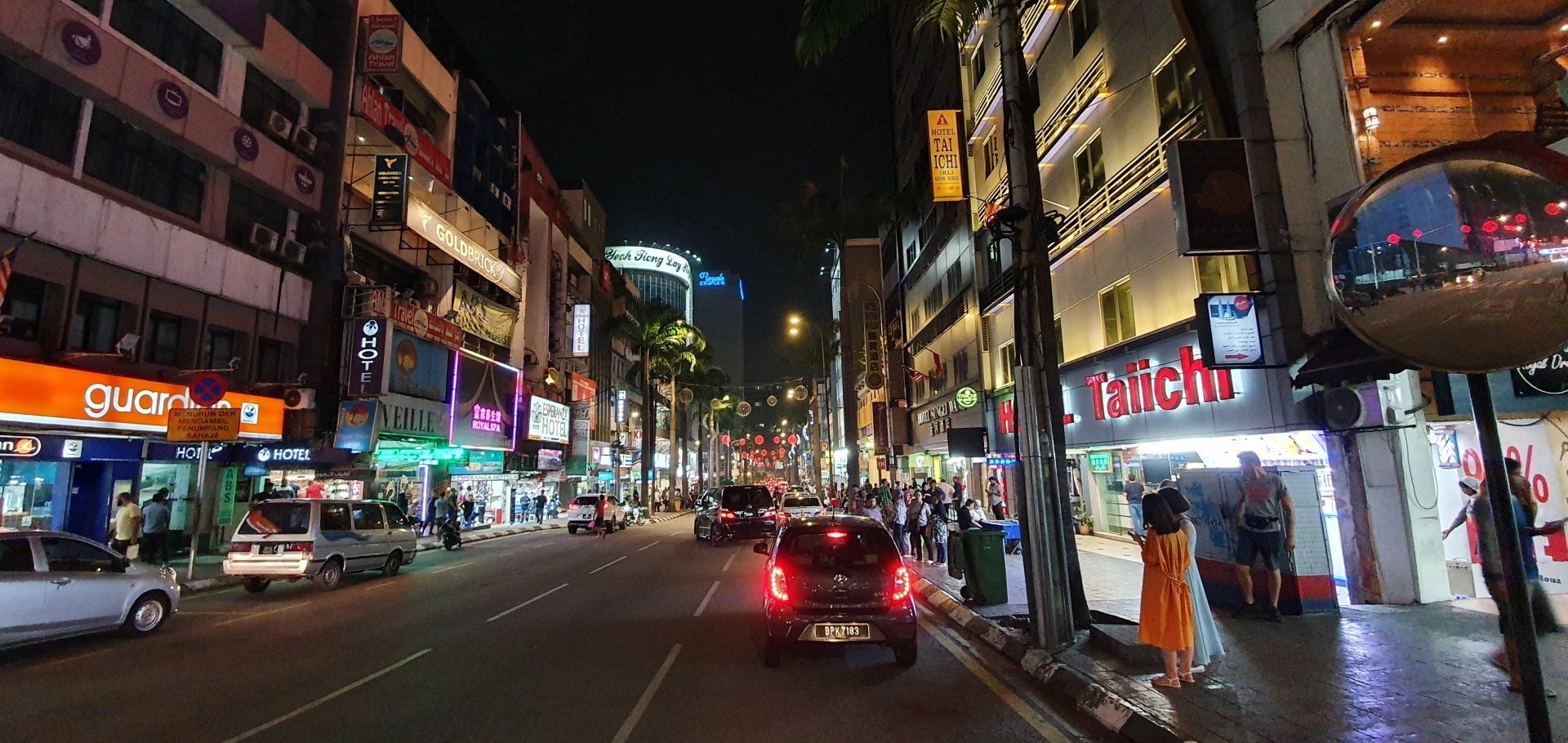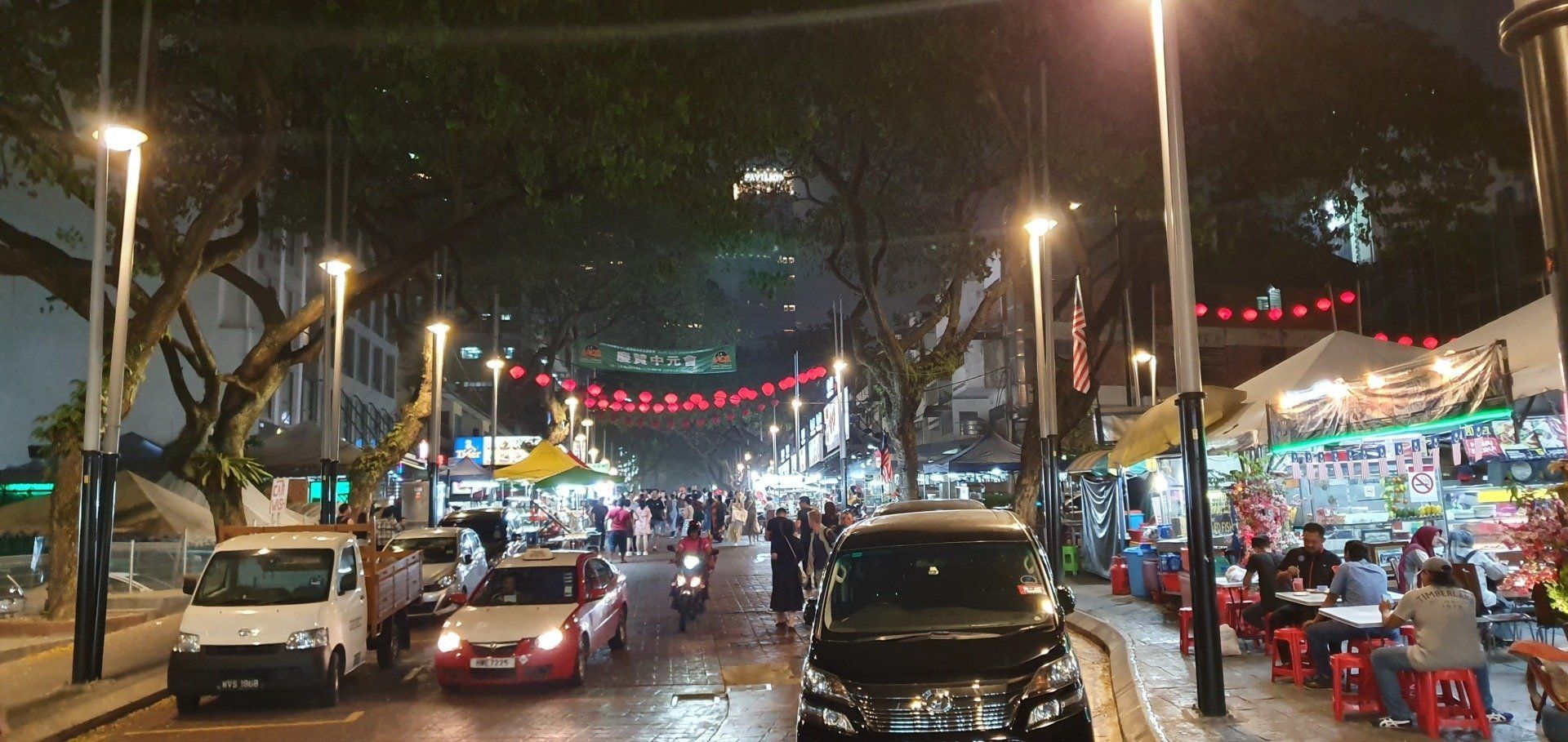 Der Busbahnhof in KL ist riesengroß, eine ganz andere Hausnummer. Aber auch sehr gut geordnet, mit verschiedenen Gates, Haltestellen und co. So habe ich schon mal einen Eindruck für meine Weiterfahrt von KL nach Tanah Rata in den Cameron Highlands. Ich bestelle mir wieder ein Grab, was etwa umgerechnet 5 Euro kostet bis in die Stadt, denn der Busbahnhof liegt etwas außerhalb. Sicher könnte man sparen und mit dem Zug fahren, aber ich habe da mit dem Gepäck keine Lust drauf. So bin ich dann ruckzuck an den Robertson Residences, meiner Unterkunft die nächsten 4 Tage. Es sind 2 riesige Türme, und eigentlich scheinen hier die Leute wirklich zu wohnen. Es ist kein Hotel. Ich checke in einer Bar ein und fahre in den 29. Stock im Südturm. Dort ist mein Appartment, nett eingerichtet, modern, relativ sauber, tolle Aussicht. Erst mal ein Nickerchen, und dann habe ich unfassbar krass Appetit auf Pasta vom Italiener. Das wird gegoogelt und am frühen Abend (früher kann man es draußen auch hier nicht aushalten) mache ich mich auf den Weg ins etwa 1,5 km entfernte Lädchen, das wohl gute Pasta hat. So sehe ich schon mal was von der Stadt und kann mir einen Überblick verschaffen. Es ist eine sehr lebendige Stadt, eben eine richtige Metropole. Überall Hotels, Menschen, verschiedenste Restaurants, überfüllte Straßen, Bars, Händler... Alles eben. Aber ich muss sagen, es gefällt mir. Die kleineren Seitengassen, die mir mein Navi vorschlägt, meide ich allerdings erst mal lieber und richte mich nach den größeren Straßen. Die Bar, die ich ansteuere, liegt auf einer Art Partymeile, und so genieße ich bei meinen leckeren Nudeln und frischgepresstem Apfelsaft auch noch ein bisschen das Nachtleben hier. Dann gehe ich diese Straße einmal ab, und noch über eine längere Straße mit buntem Treiben auf einem Foodmarkt. Es ist eine tolle Atmosphäre und es gefällt mir richtig gut.