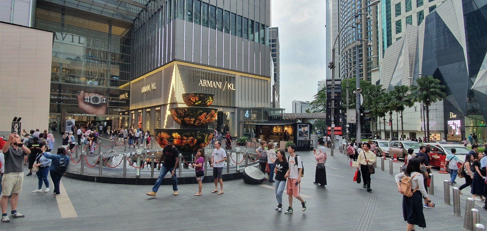 Nach etlichen Umwegen, die aber nicht schlimm, sondern eher toll sind, da ich so viel von der Stadt sehe, lande ich im Megaeinkaufszentrum Pavilion. Dort gehe ich kurz rein und versuche dann, einen Weg rauszufinden, in annähernde Richtung der Türme, und so lande ich in einem Gangway, der direkt zum Park führt, Muss man nicht mal raus. Bzw. kann ich auch nicht, habe den Ausgang nicht mehr gefunden. Haha. Dann schlendere ich durch den Park, und die Türme sind natürlich alles dominierend und echt hübsch anzusehen, wie ich finde. Auf dem Vorplatz höre ich auf einmal "Marschmusik", und ich bin zufällig gerade da, als eine Art Parade stattfindet, die wirklich beeindruckend ist und auch 30 Minuten dauert. Den Anlass konnte ich allerdings bisher nicht rausfinden. Es wurden mit verschiedenen Instrumenten verschiedene Lieder gespielt. Und nach der halbstündigen Aufführung, die etliche Leute angelockt hat, ging es auch mit indonesischen Künstlern weiter, die auch einen Tanz aufführten. Da habe ich mich dann aber mal auf den Rückweg gemacht, da ich noch was essen will, und ja auch immer durch "die grobe Richtung" etwas länger brauche. Und so lande ich wieder über die Gangway in der Mall, esse was, und laufe dann zurück. Kurz was einkaufen und dann zurück. Und nun diese Zeilen endlich mal abtippen. Gute Nacht aus dem tollen Kuala Lumpur.