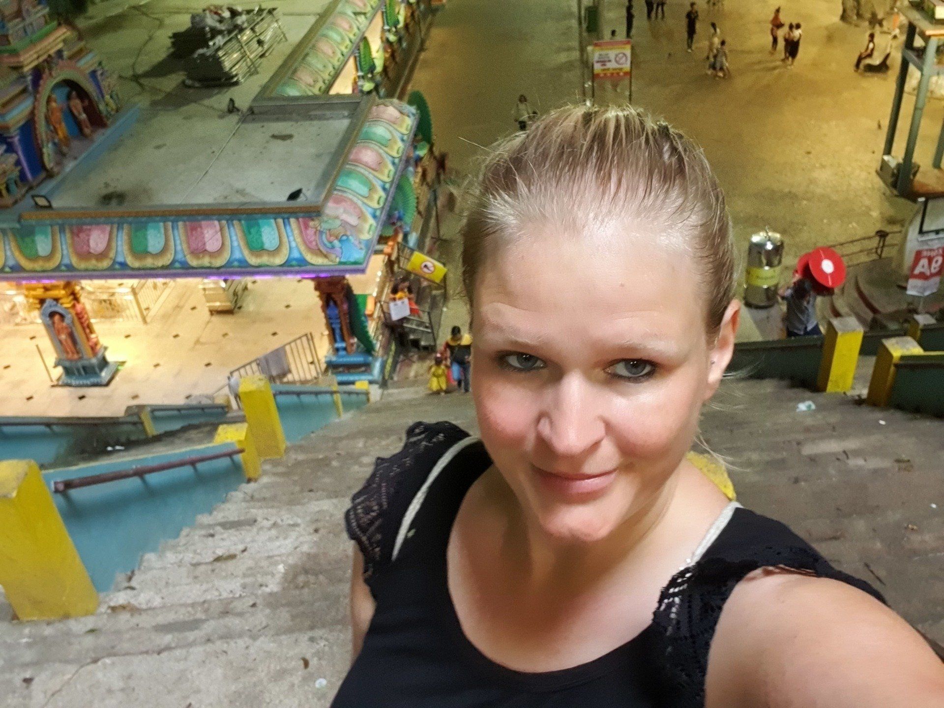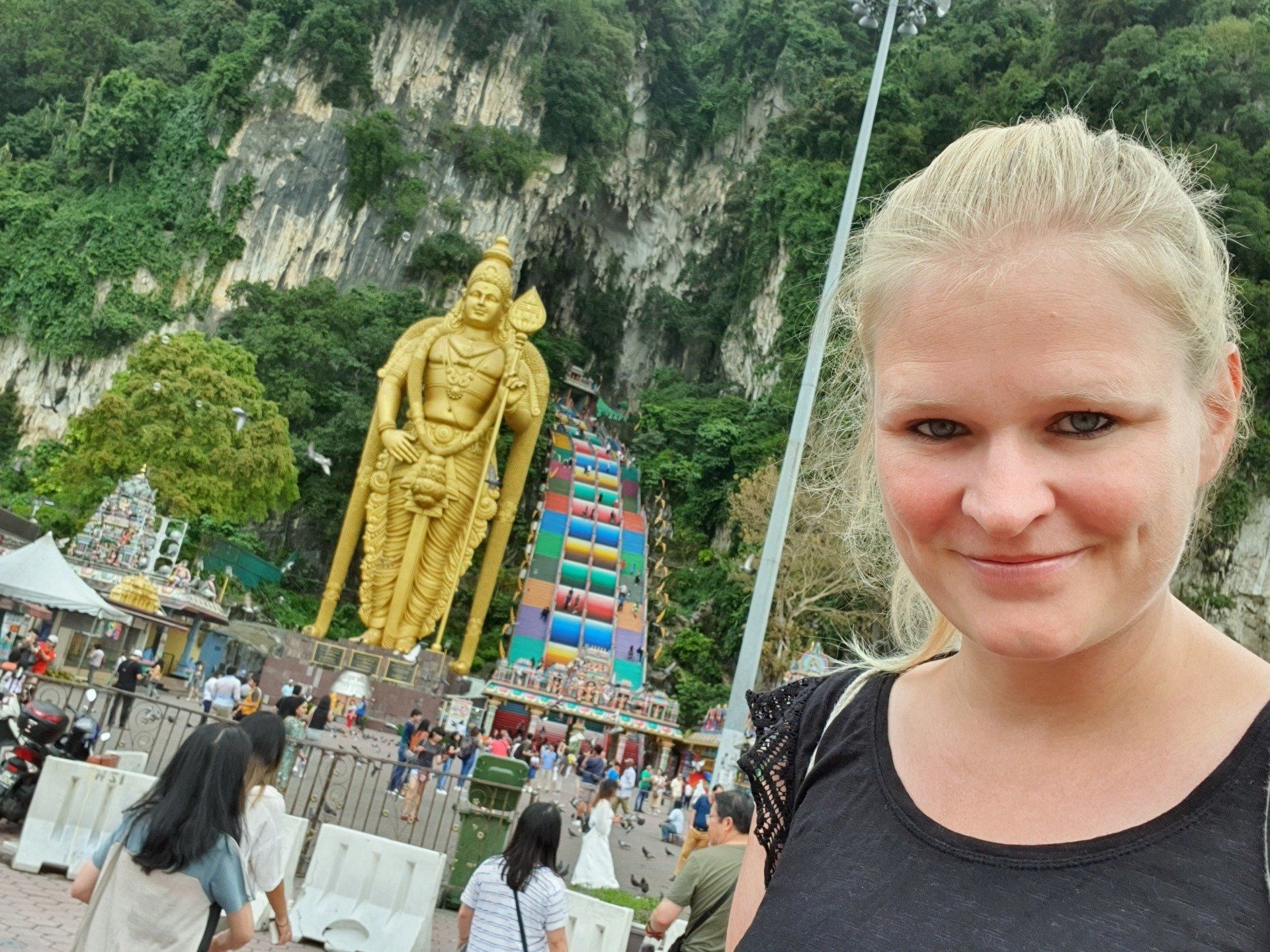 Heute habe ich mir mal vorgenommen, nicht ganz so spät aus dem "Haus" zu gehen, auch wenn es natürlich noch mega heiß ist. Es geht gegen 4 Uhr am Nachmittag los, per Grab (4 Euro) zu den etwas außerhalb gelegenen Batu Caves, Kalksteinhöhlen etwa 15 km außerhalb der Stadt. Diese Höhlen, die Hindu-Tempel beherbergen, sind weitestgehend bekannt und deshalb interessiert es mich natürlich auch, was dort so vorzufinden ist. Die Fahrt dauert ca. 30 Minuten und der Fahrer ist sehr nett. Wir unterhalten uns über Gott und die Welt, seine Zeit in Amerika, was ich super spannend finde, und wie jeder von uns so lebt. Wie viele, die ich treffe, sagt er, dass er unbedingt mal Deutschland besuchen will. Ob das immer nur so eine Masche ist? :D