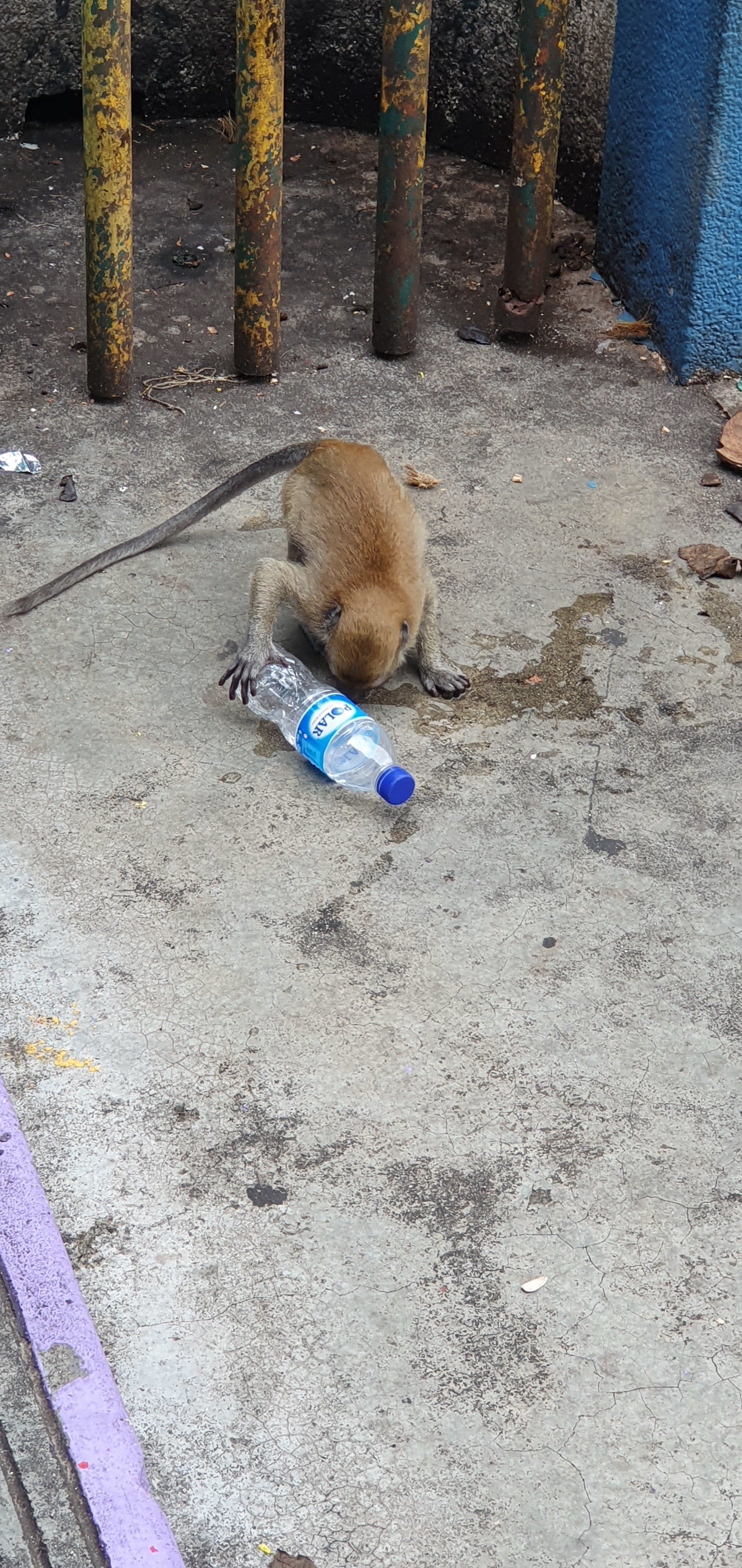 Ich filme noch ein paar Äffchen beim Lausen und Spielen, dann laufen die Inder wieder an mir vorbei und quatschen mich voll, und da ich eine Sekunde unachtsam bin, bin ich auch flott meine Wasserflasche los. Der Affe wirft sie auf den Boden, damit ein Löchelchen entsteht, und trinkt dann draus. Schlaues Kerlchen. Ich hätte sie ihm aber auch geöffnet. Aber man muss echt gut aufpassen und darf keine Sekunde unachtsam sein.