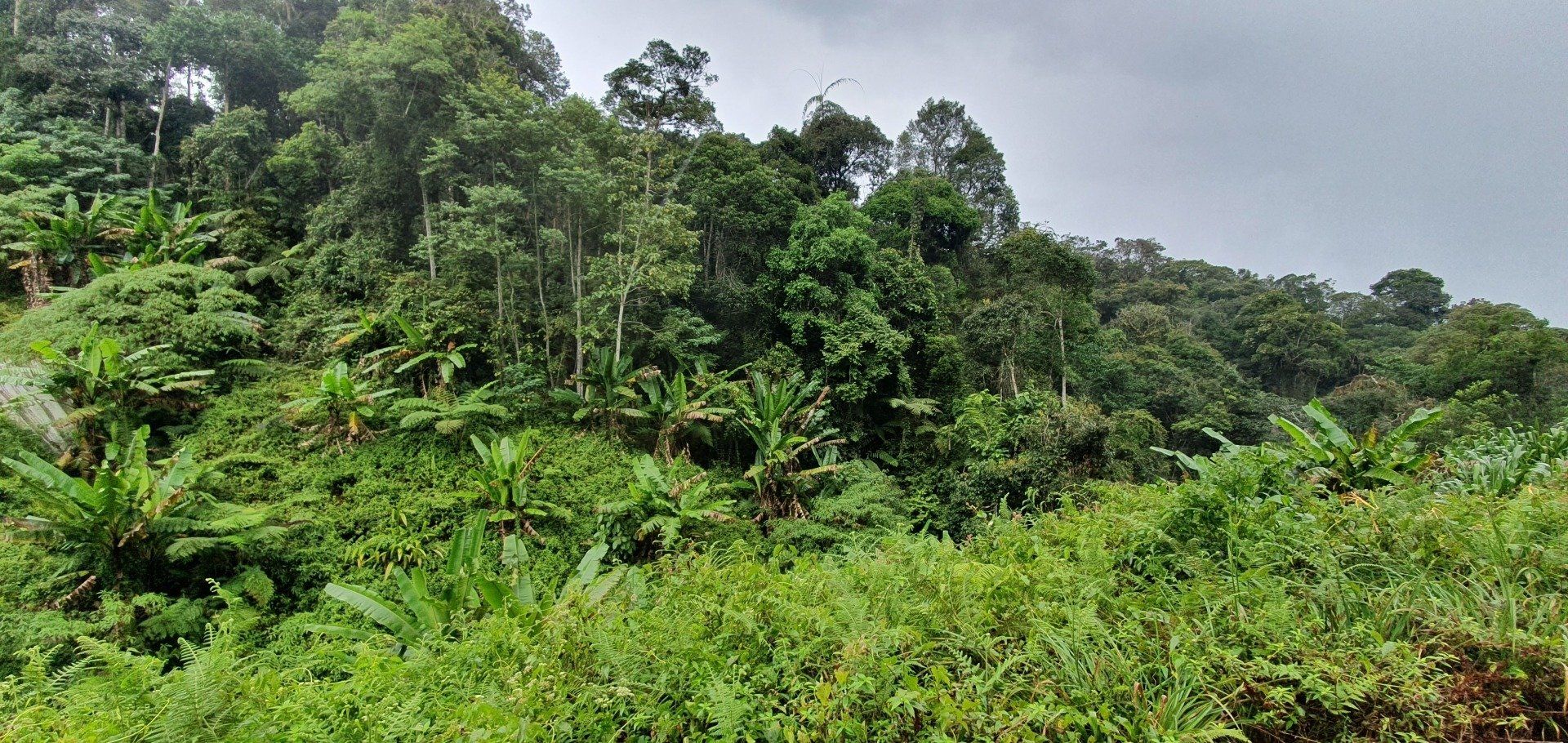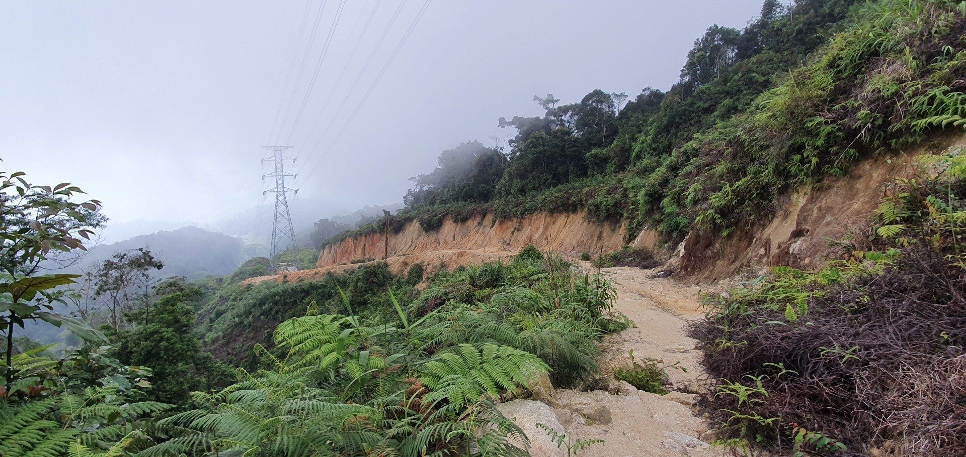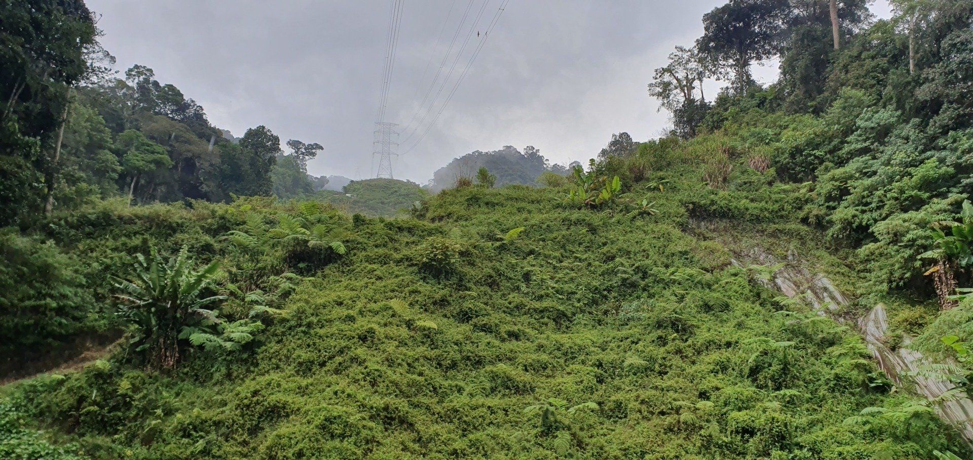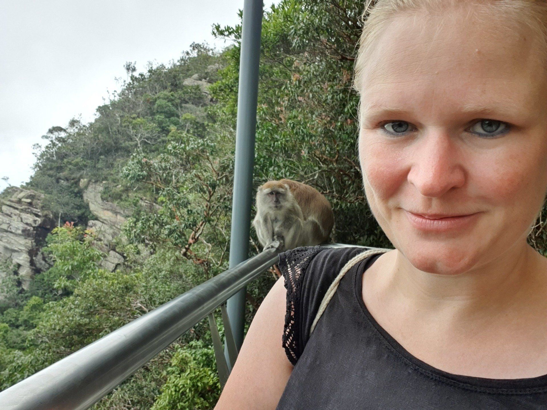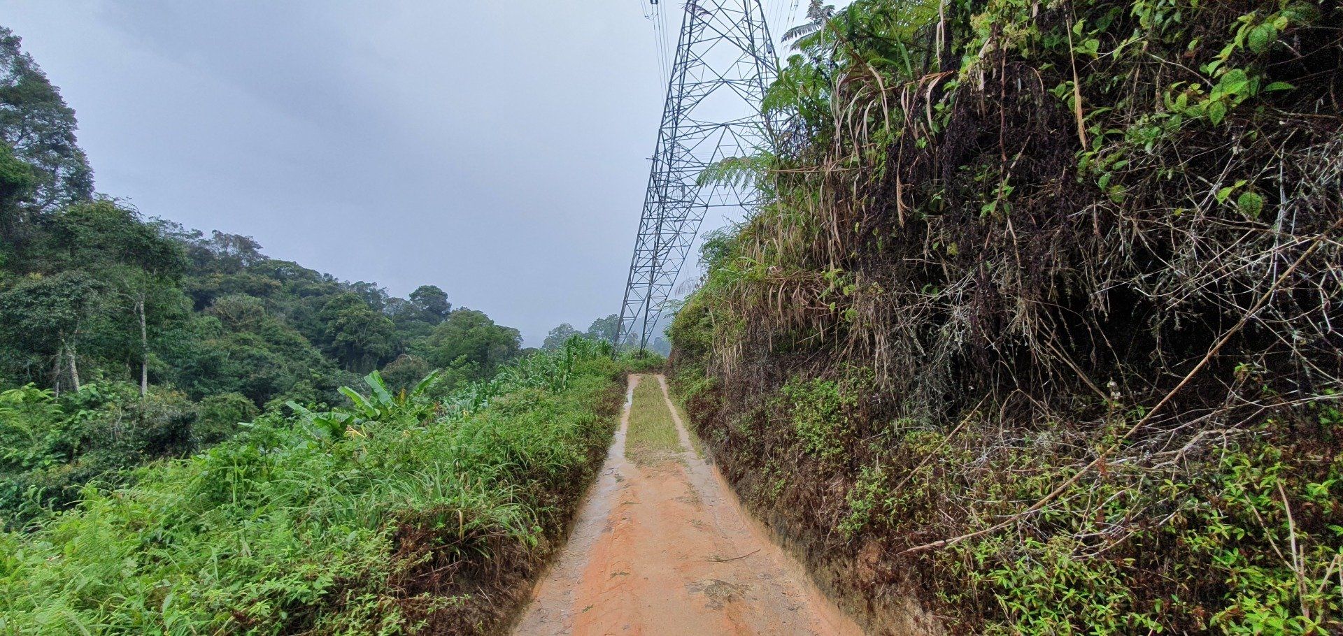 Gegen Mittag mache ich mich dann gut ausgerüstet auf und treffe im Hostel noch ein nettes deutsches Paar, die per Anhalter umherreisen und wir verquatschen uns noch eine Weile. Dann geht es für mich erst relativ spät los. Ausgesucht habe ich mir den Pfad 10 für "hin", und Pfad 6 für "zurück". Man soll nur aufpassen, dass man sich an ein paar Stellen nicht verirrt, aber mit Maps.Me an Bord fühle ich mich relativ sicher. Der Weg aus der Stadt zum Pfad ist recht easy, man muss nur genau hingucken, wo man abbiegt, um auf den Pfad zu gelangen. Denn es gibt nur ein winziges, schon recht verwittertes Schild und der erste Teil ist auch eine Art Baugrube. Aber ich bin richtig und freue mich auf eine schöne Wanderung, die ja nicht so schwer sein soll. Relativ schnell schwirrt schon ein überdimensional großes Insekt, Wespenartig, an meinem Kopf vorbei und ich denke: Welcome to the jungle. Die erste Strecke ist auch ganz nett zu laufen und das Wetter hält auch gut. Die Sonne ist kaum da und das ist von den Temperaturen recht angenehm. Nach und nach wird es immer steiler und steiler, und wer mich kennt, der weiß, wie sehr ich das liebe. Aber ich habe nicht vor, umzudrehen, und kämpfe mich über die verschiedenen Bodenarten und Baumwurzeln durch. Je höher ich komme, desto mehr merke ich, wie meine Kopfschmerzen stärker werden. Es ist wirklich sehr anstrengend und weit und breit ist auch kein Mensch zu sehen. Irgendwann kam noch ein Paar vorbei, aber das wars dann auch. Ich denke mir zwischendurch, dass diese Wanderung so alleine im Dschungel vielleicht doch nicht so die allerbeste Idee war, falls was passiert. Und bei den Wegbeschaffungen und den Tieren, die die leben, ist das nicht mal so abwegig. Man muss ja nur mal umknicken. Aber gut, hilft ja nix und es geht weiter. Und ich denke, ich habe ja auch einfach Glück, dass es nicht regnet. Und irgendwann erreiche ich dann auch den Gipfel und freue mich sehr darüber. Ein paar Meter noch weiter hoch und ein Schild zeigt die Spitze an. Die Aussicht ist auch wirklich sehr nett und ich überlege, ob ich den Rest von diesem Pfad, der quasi noch einen Umweg über ein Elektrizitätswerk macht und dann wieder zurück führt, noch mache. Aber ich merke, dass ich nicht ganz fit bin und noch einen weiten Heimweg vor mir habe, und außerdem ist mir etwas schwindelig und die Kopfschmerzen werden schlimmer und schlimmer. Also beschließe ich, den Rückweg über Pfad 6 anzutreten, der ganz nett sein soll. Lediglich mit dem Hinweis, dass man den Einstieg vielleicht nicht gut finden kann. Herausforderung angenommen, denke ich. Leider zieht es von jetzt auf gleich zu und es beginnt zu regnen, als ich da oben stehe und keinen "schützenden" Wald mehr über mir habe. Aber es ist auch irgendwie gut, denn so ziehe ich meine Regenjacke an. Die ich dann auch brauche, wie sich rausstellen soll.