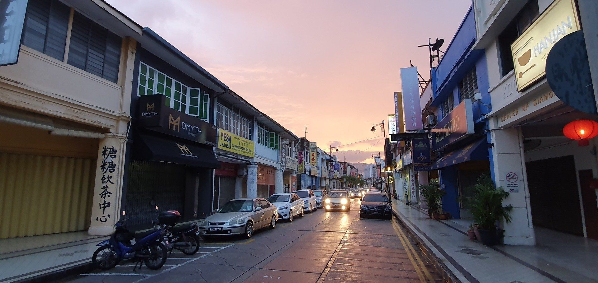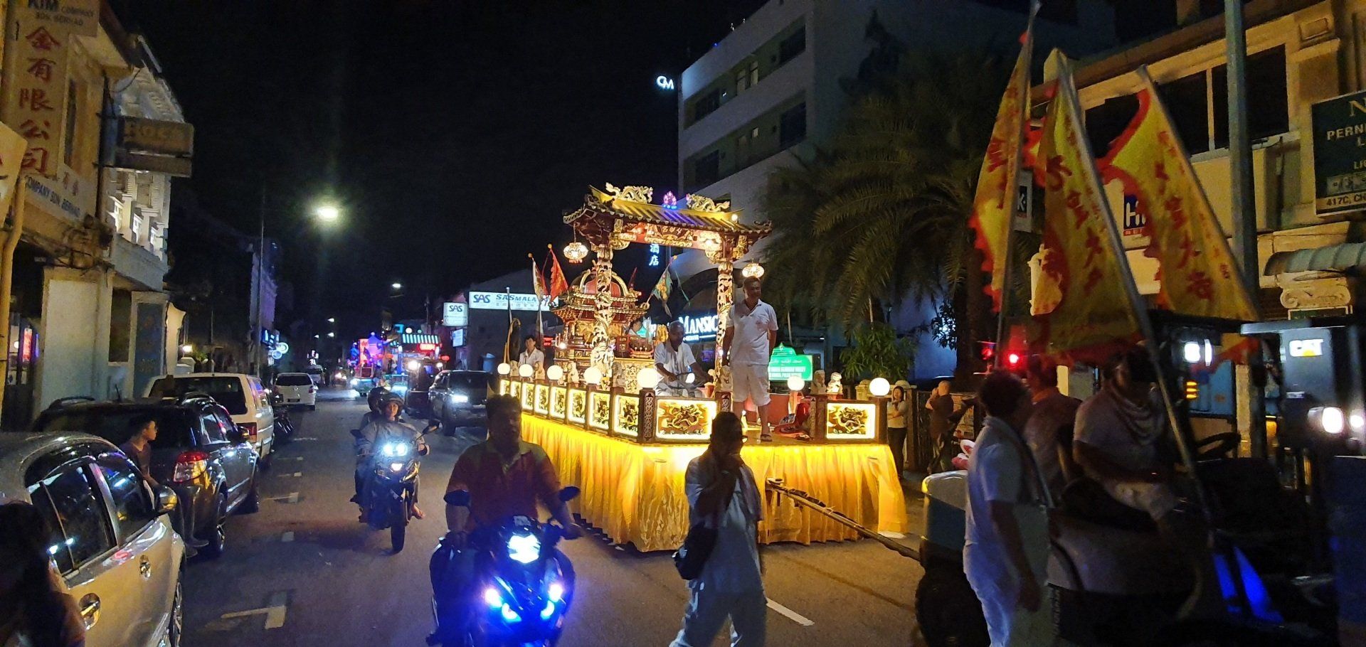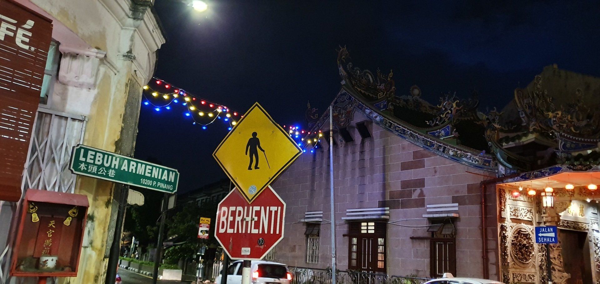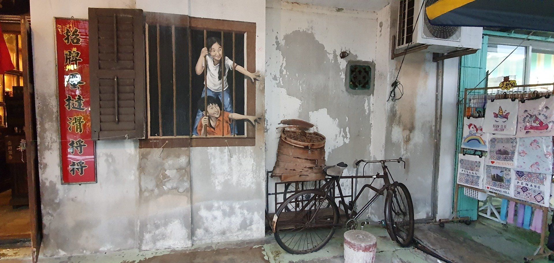 Irgendwie einfach nicht mein Tag heute. Dann Tür auf, wieder Treppen, ein extrem komischer Geruch begrüßt mich und ein Mitarbeiter, der mich bittet, noch kurz draußen zu bleiben. Er versprüht irgendein Spray, scheinbar ist was ausgelaufen, und ich muss davon erst mal wild husten. Dann trägt er den Koffer hoch und ich kann endlich einchecken. Allerdings will man noch einen Deal mit mir aushandeln, um sich die Gebühren zu sparen, und damit es schneller geht, willige ich einfach ein. Denn wenn 4 auf dich einreden, ist es schwer, zu diskutieren. Dann geht es ins Zimmer, was auf den ersten Blick recht nett ist, modern und mit Balkon. Das Hotel ist das Attic Hotel, im Herzen von Chinatown in der Stadt Georgetown. Doch als ich ins Bad gehe, merke ich, dass da wohl kurz vorher noch jemand geduscht hat. Alles ist nass, ein gebrauchtes Shampoodöschen liegt rum und ich denke, oh mann, wann ist dieser Tag endlich rum. Also erst mal zum runterfahren aufs Bett gelegt, es fängt auch noch unfassbar heftig an zu gewittern und schütten, dass man eh keinen Fuß raussetzen könnte - oder wollte. Aber bald hört es auf und ich schnappe mir meine Sachen und drehe noch eine erste Runde in der Stadt zum Kennenlernen. Hier habe ich immerhin 6 Nächte gebucht. Auf Maps.Me ist am Ufer ein Aussichtspunkt ausgeschrieben, den ich ansteuere. Insgesamt ist mein erster Eindruck sehr gut, alles wirkt irgendwie süß und ich habe den Eindruck, man kann sich hier wohlfühlen. Als ich dann zum Wasser komme, ist der Steg aber leider nicht begehbar, weil es wohl einen Wasserrohrbruch gab und das gerade den Steg überflutet. Aber was wundert es mich an diesem Tag... Also such ich mir eine kleine Bar, um noch was zu essen, und gehe dann, vorbei an ersten Streetarts, die einem hier überall begegnen, über die berühmte Lovelane in Richtung Hotel zurück. Und prompt lande ich wieder in einer Straßenparade, scheinbar von Chinesen, die es krachen lassen. Welche Festivität das nun aber war, habe ich nicht mehr rausgefunden. Aber ich verfolge das Spektakel eine ganze Weile und dann gehts zurück. Da keiner mehr an der Rezeption ist, dusche ich halt in dem dreckigen Bad, was mich schon etwas aufregt, und gehe dann ins Bett. Endlich ist dieser Tag vorbei und es kann ja nur wieder was Besseres kommen.
