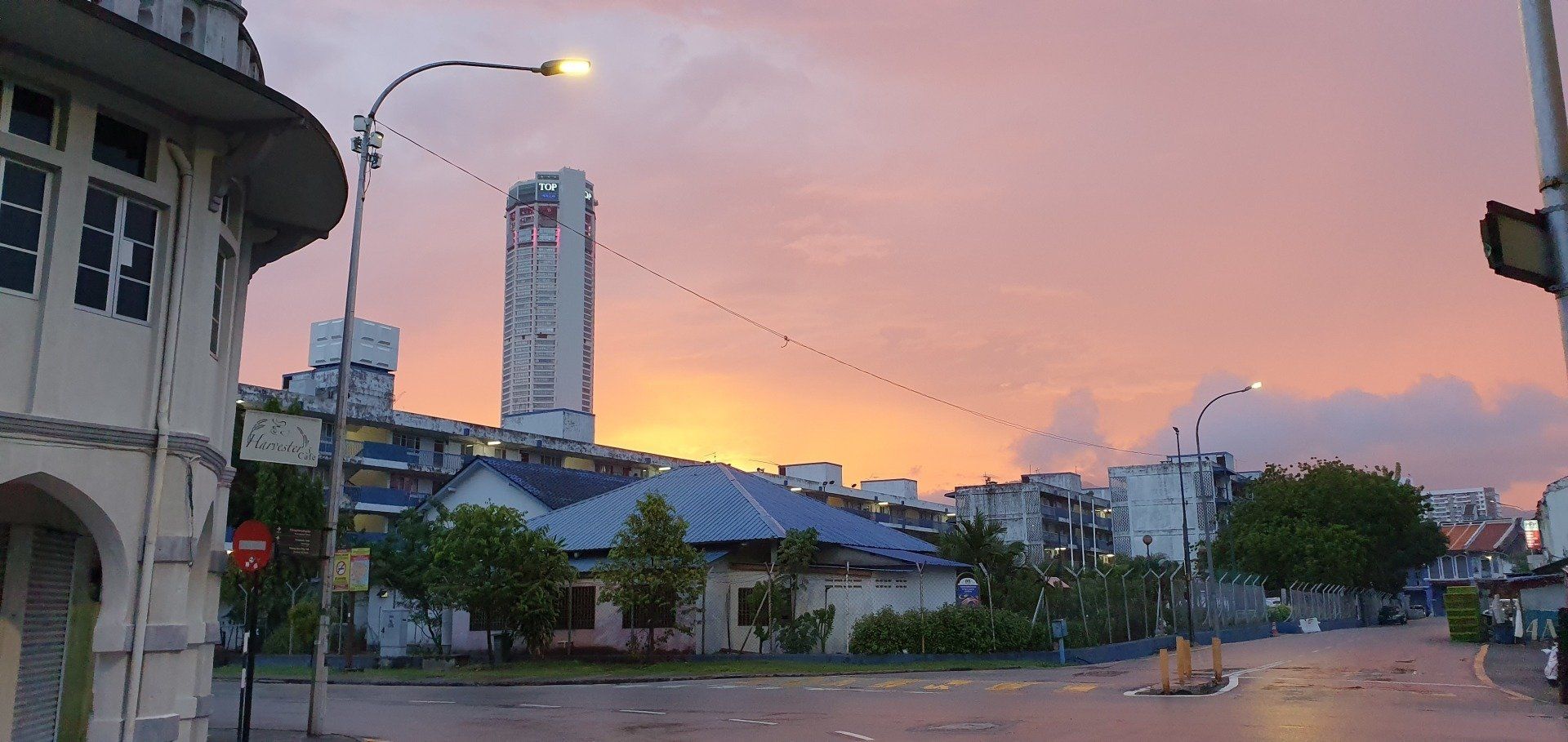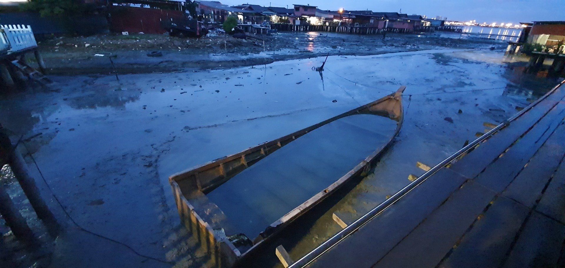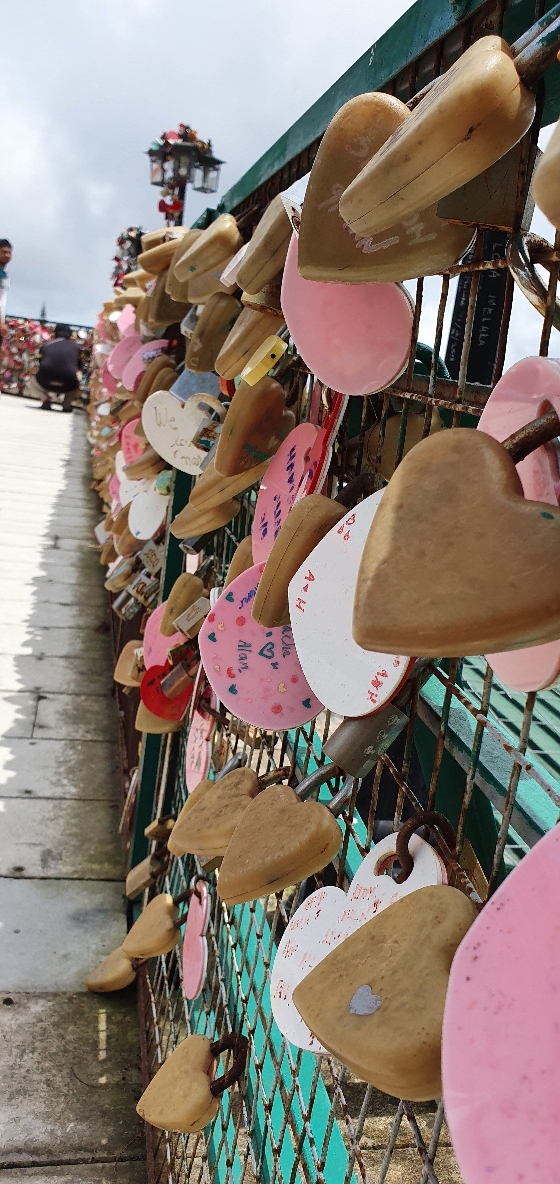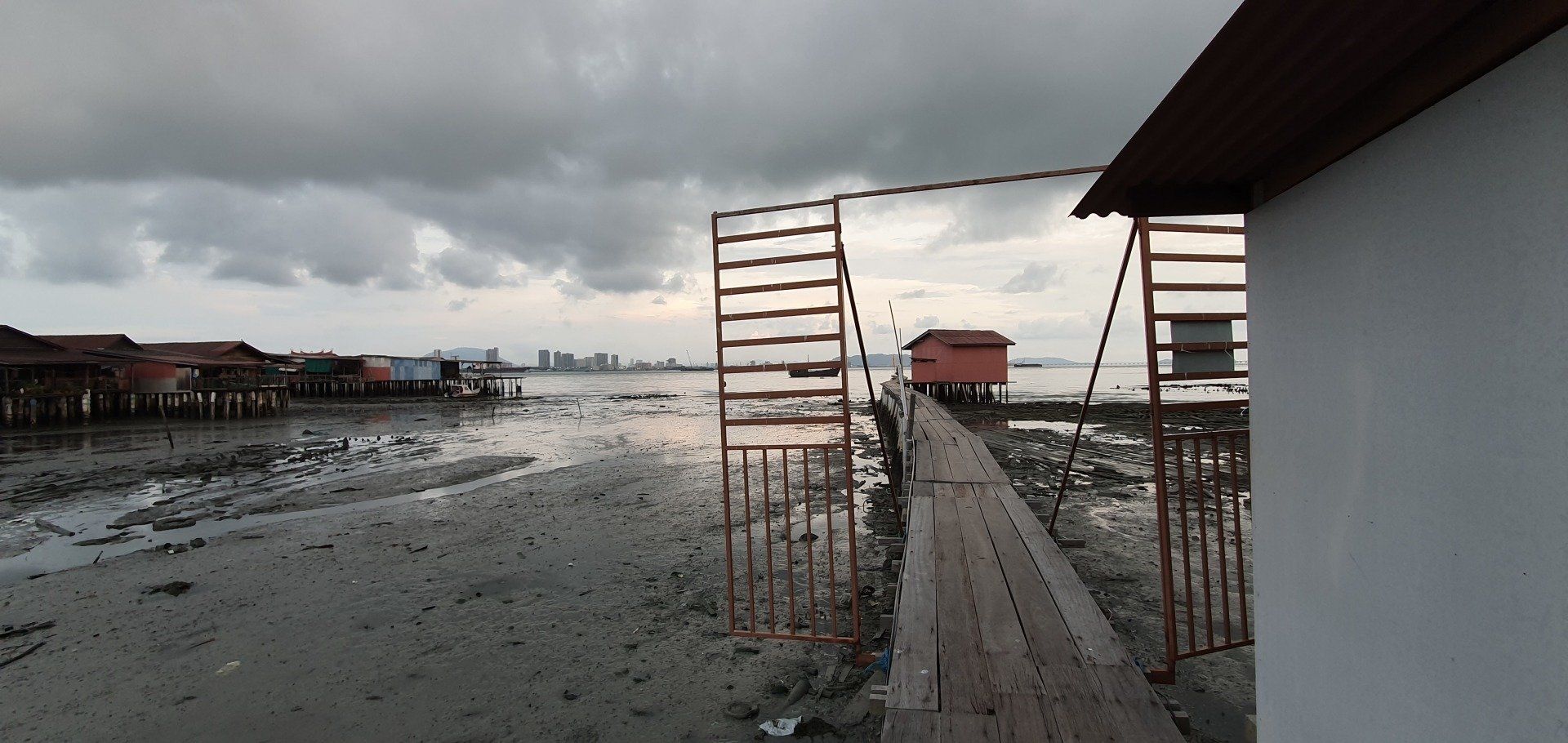 Dann geht es für mich wieder runter, vorbei an vielen Baustellen. Insgesamt ist diese Anlage also schon noch im Aufbau, oder immer wieder im Bau. Es war interessant, aber richtig empfehlenswert irgendwie auch nicht. Und dann bringt mich Grab wieder für ca. 3 Euro zurück zum Hotel. Nach einer kurzen Pause mache ich mich wieder auf zu dem Aussichtpunkt, der gestern nicht zu betreten war. Und es geht, auf wackeligen Brettern kann man weit ins Meer reinlaufen, das sich aufgrund der Ebbe gerade zurückgezogen und viel Müll zum Vorschein gebracht hat. Bis hin zu einem LKW ist nichts da, was es nicht gibt, und was alles so im Meer landet. Von vorne schaue ich mir noch den etwas wolkenbelasteten Sonnenuntergang an und mache mich dann auf den Weg. Kurz vor Anfang der Straße steht noch eine Familie, die ein Foto mit mir machen wollen. Alle, in verschiedenen Konstellationen. Und auch der kleine Junge muss mal mit mir aufs Bild und man sieht ihm an, dass er denkt, was soll ich denn jetzt mit der komischen fremden Frau auf einem Bild. Aber was solls, sie freuen sich drüber und dann gehe ich auch weiter. Entlang des Ufers, was aber auch nicht so ganz einfach ist und man oft auf die Straße muss. Es gibt aber dennoch viel Schönes zu sehen und ich muss sagen, dass mir Georgetown echt gut gefällt. Immer mal wieder trifft man auf die Streetart, auf Sprüche und Bilder. Nach etwa 4 KM Rundgang laufe ich noch mal zur berühmten Lovelane, dieses Mal ohne Parade, und gehe in einem Italiener was essen. Dann geht es auch für mich schon wieder zum Hotel, es ist aber auch schon spät am Abend.