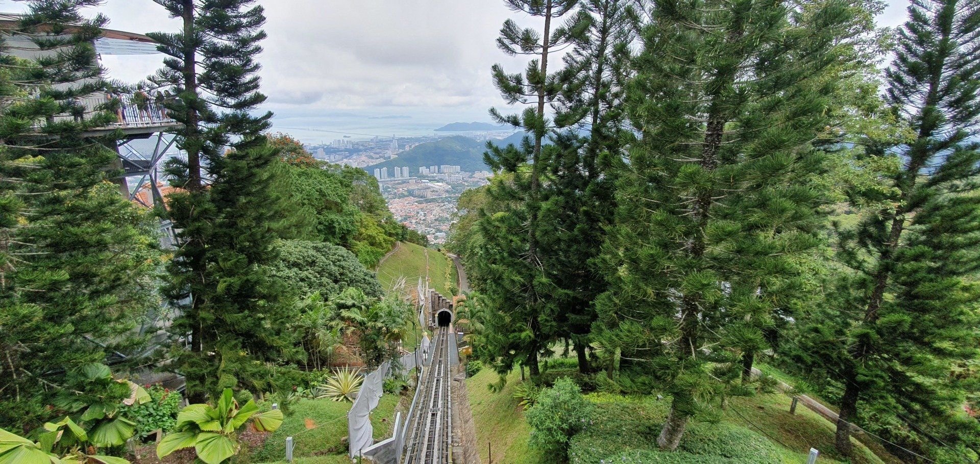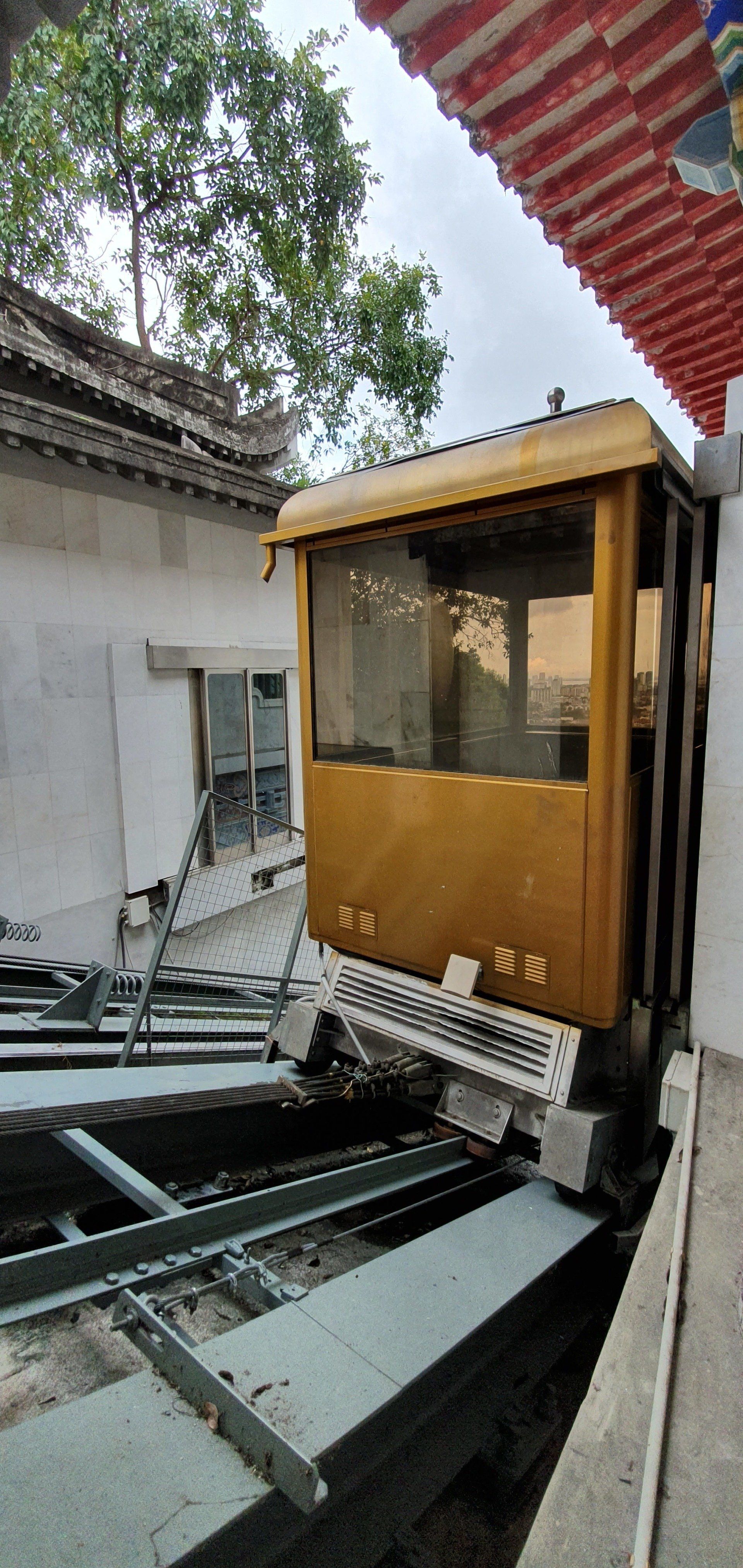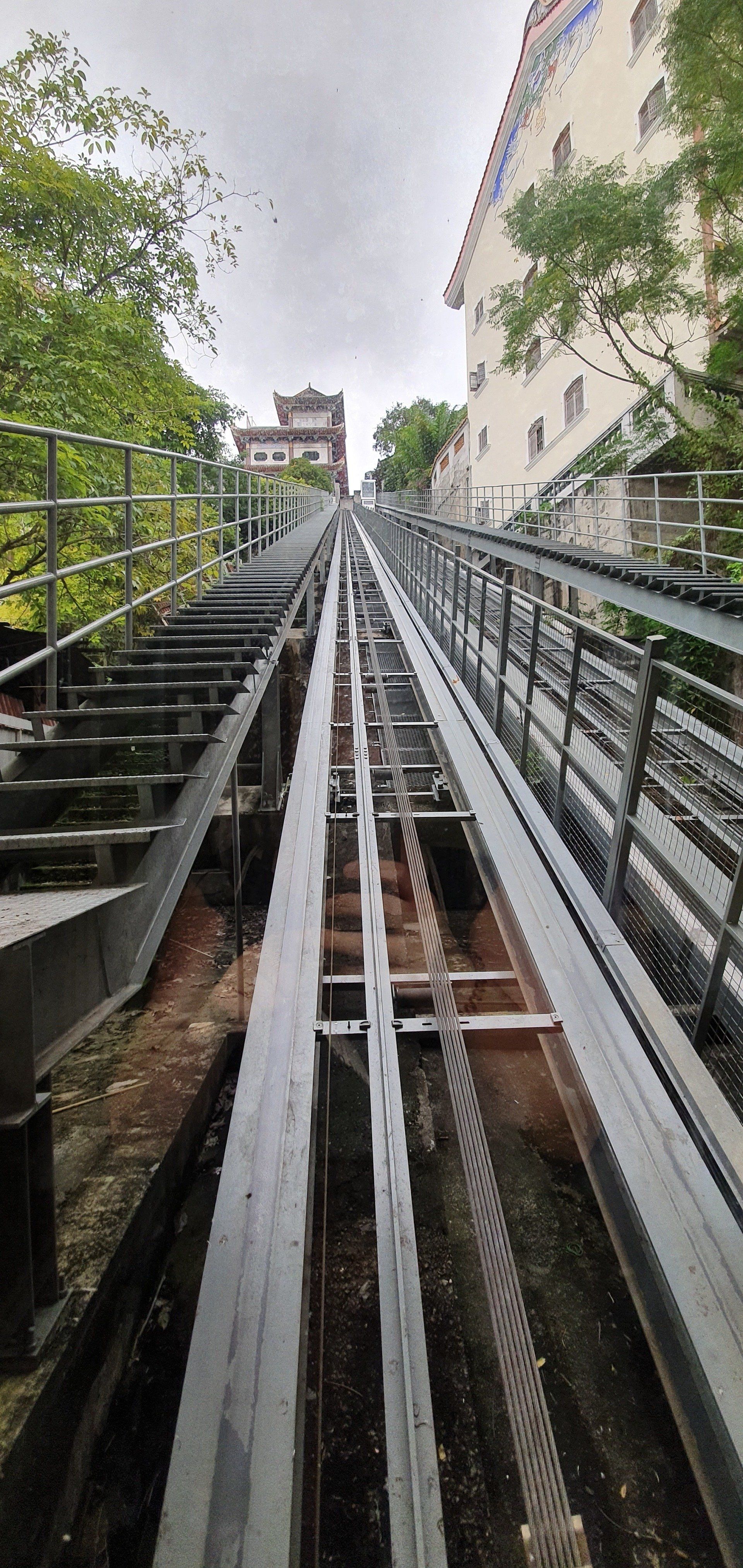 Glücklicherweise habe ich endlich mal wieder gut geschlafen und fühle mich ausgeruht und fit, auch ohne Kopfschmerzen. So starte ich gemütlich in den Tag und plane, auf den bekannten "Berg" von Penang zu fahren und, wenn noch Zeit ist, einen bekannten Tempel zu besichtigen. Vorher trage ich noch kurz meine kleine Beschwerde bezüglich des Bades vor und man merkt, dass man es vergessen hat. Ei ei ei... Es ist, nebenbei bemerkt, kein günstiges Hotel. Aber egal, ich bin wieder fit und gut gelaunt und freue mich, dann am Abend in ein sauberes Zimmer zu kommen. Im Hotel nebenan gehe ich noch frühstücken und mit Grab gehts zum Penang Hill, etwa 10 km außerhalb der Stadt, für etwa 3 Euro. Dort kann man hoch wandern, was ich nicht tue. Es fährt auch eine Bergbahn hoch, die für Ausländer, ganz offiziell auf einem Schild ausgewiesen, mal schön doppelt so teuer ist. Aber egal, ich will ja auch gerne mal damit fahren.