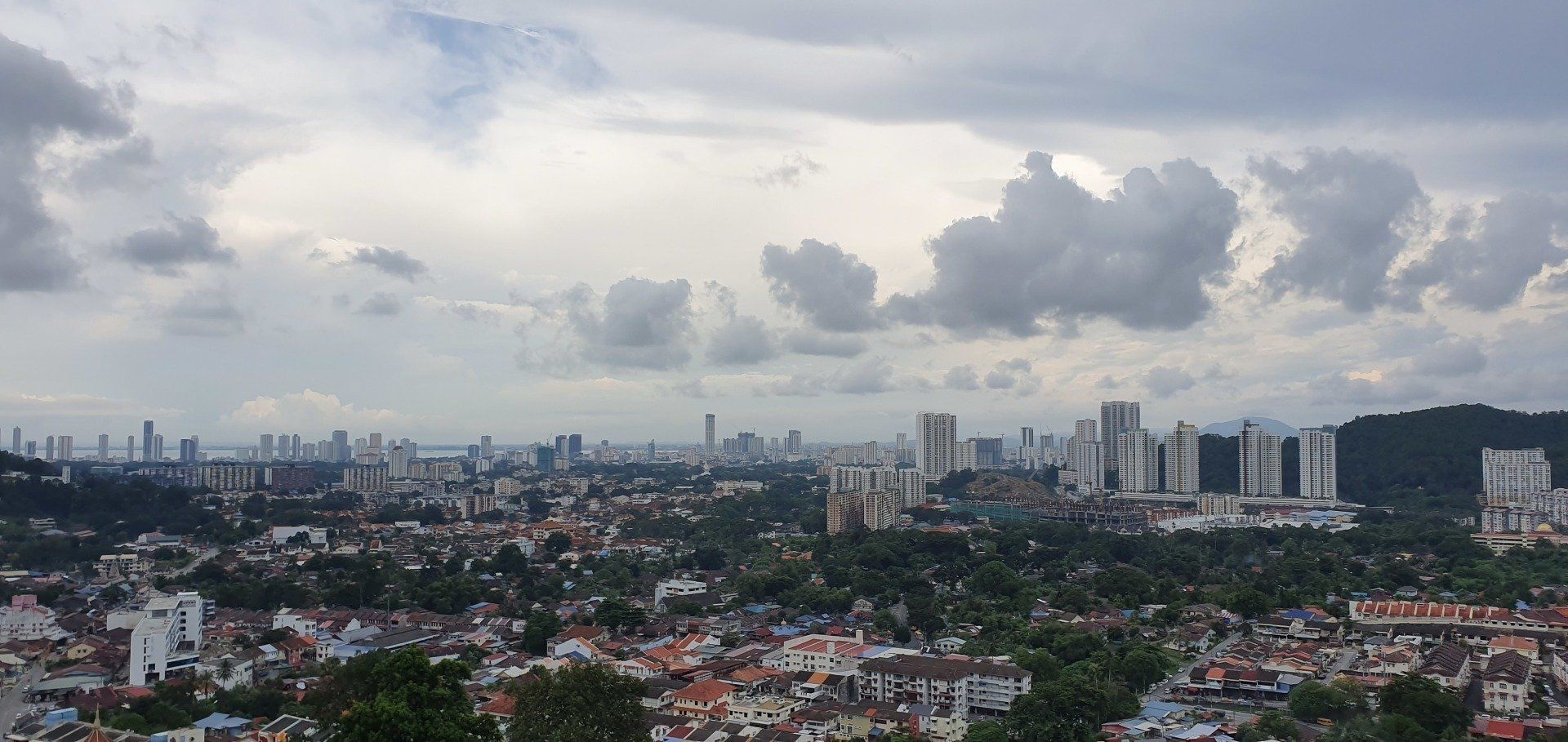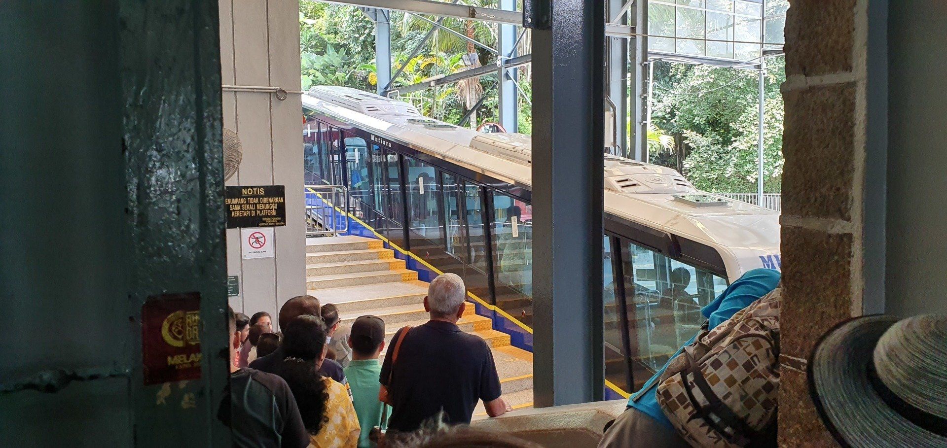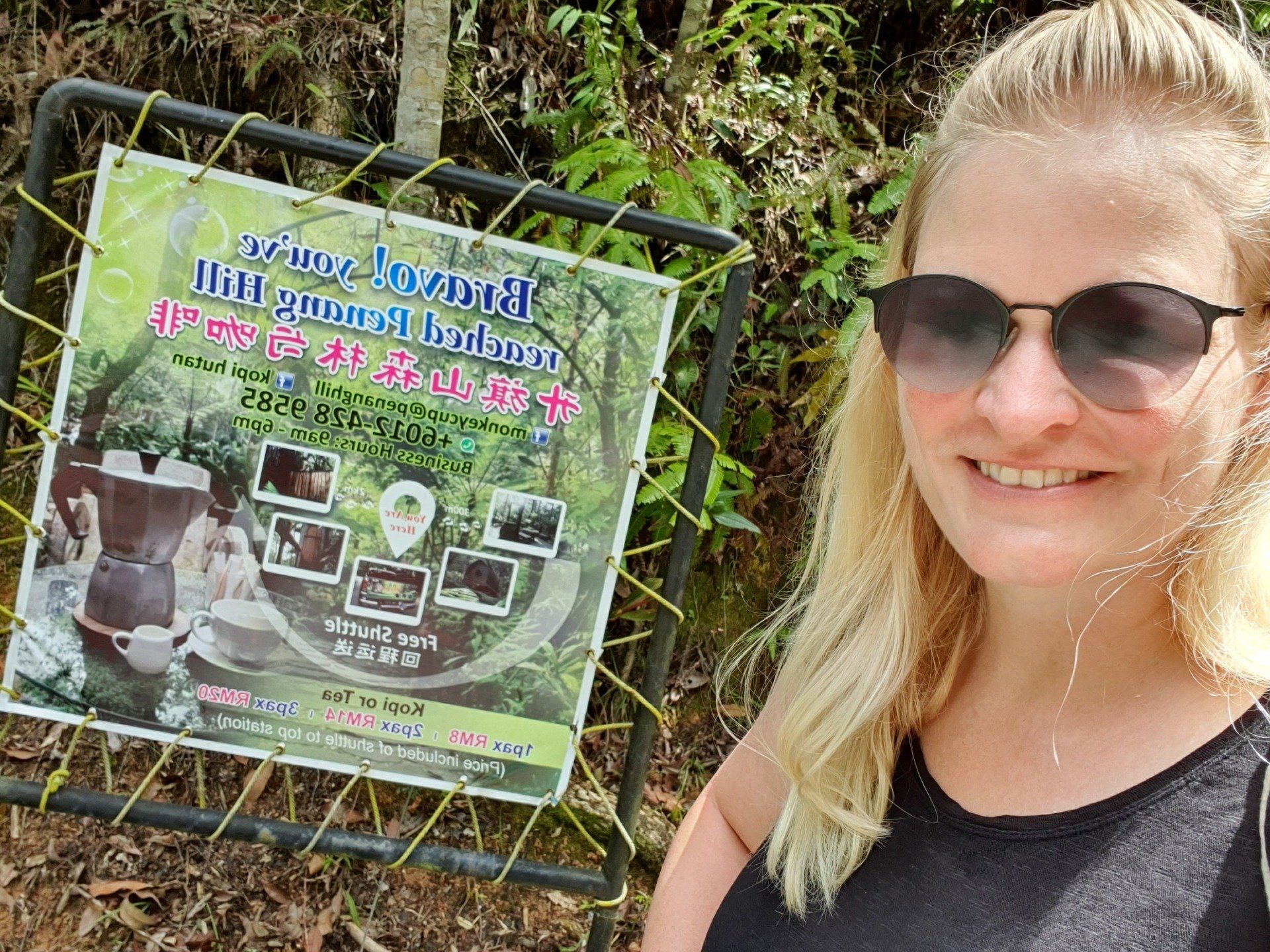 Glücklicherweise habe ich endlich mal wieder gut geschlafen und fühle mich ausgeruht und fit, auch ohne Kopfschmerzen. So starte ich gemütlich in den Tag und plane, auf den bekannten "Berg" von Penang zu fahren und, wenn noch Zeit ist, einen bekannten Tempel zu besichtigen. Vorher trage ich noch kurz meine kleine Beschwerde bezüglich des Bades vor und man merkt, dass man es vergessen hat. Ei ei ei... Es ist, nebenbei bemerkt, kein günstiges Hotel. Aber egal, ich bin wieder fit und gut gelaunt und freue mich, dann am Abend in ein sauberes Zimmer zu kommen. Im Hotel nebenan gehe ich noch frühstücken und mit Grab gehts zum Penang Hill, etwa 10 km außerhalb der Stadt, für etwa 3 Euro. Dort kann man hoch wandern, was ich nicht tue. Es fährt auch eine Bergbahn hoch, die für Ausländer, ganz offiziell auf einem Schild ausgewiesen, mal schön doppelt so teuer ist. Aber egal, ich will ja auch gerne mal damit fahren.