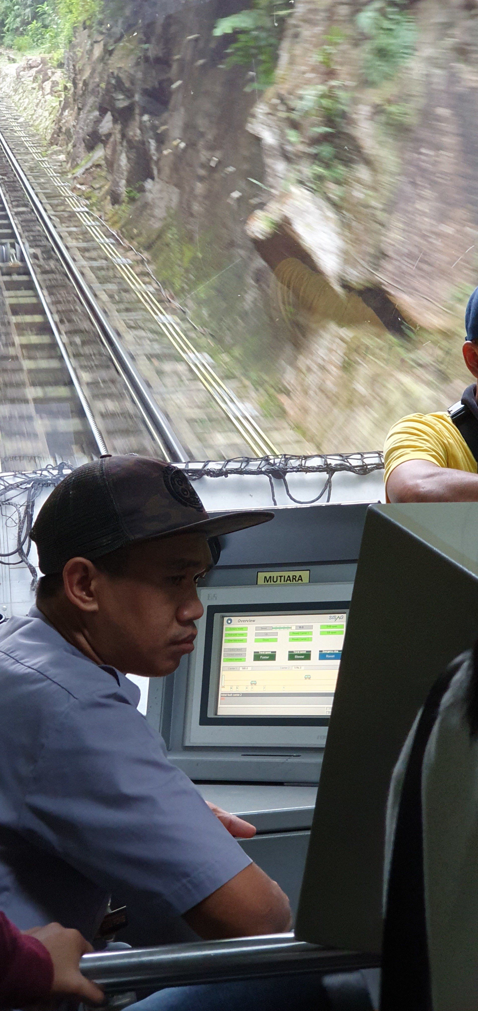 An der Station angekommen sind ein paar Bauarbeiter vor Ort und sie sagen mir, dass ich die Bergstation anrufen muss, damit die Bahn mich hier einsammelt. Auf dem Kasten, in dem sich das Telefon befindet, steht fett geschrieben, dass nur Befugte das Telefon bedienen dürfen und auch nur im Notfall. Auf meine Frage, ob sie sich da sicher seien, nickt man und so rufe ich an und bestelle mein "Bahntaxi" zu meiner Station. Und dann geht es auch relativ schnell runter.