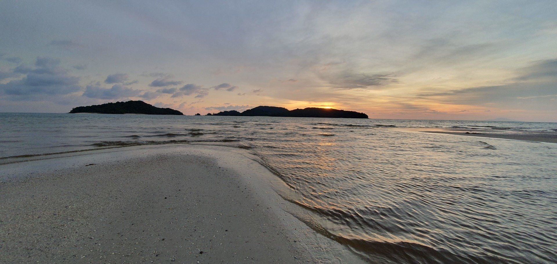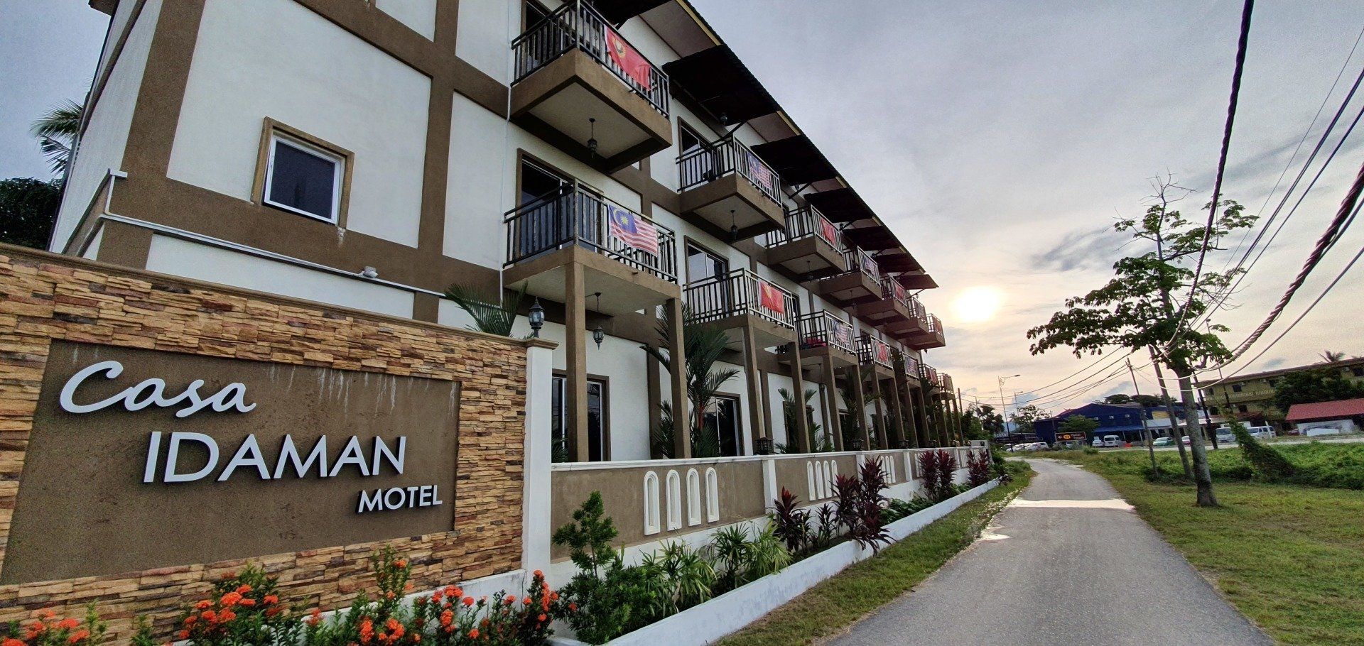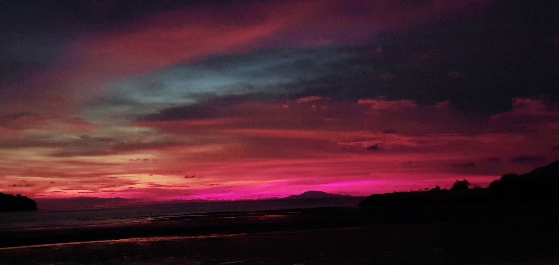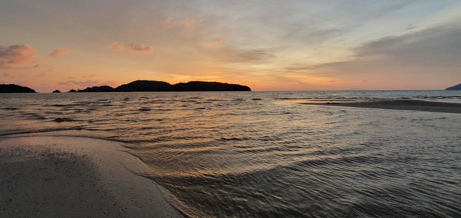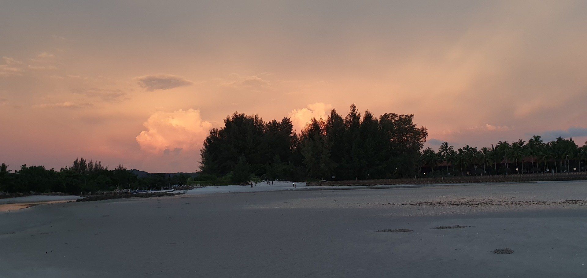 Dann auf Langkawi ist es aber recht easy, weil der Flughafen auch klein ist. Mit Grab gehts zu meiner Unterkunft. Der Fahrer ist nett und wir unterhalten uns gut, und er sagt noch, wenn ich Roller fahre, wäre es hier nicht so schlimm. Nur muss man aufpassen, dass einem keine Tiere vors Gefährt laufen: Hunde, Katzen, Hühner, Ratten, Kühe, Affen... Meine Unterkunft hier ist etwas günstiger und nicht direkt am Strand, aber ich habe auch eh nicht vor, viel dort zu sein. Dennoch ist es sehr nett und das Personal auch, sodass man sich schnell wohl fühlt. Wie man auch sehen kann, ist hier viel im Aufbau. Bei vorherigen Bewertungen war die Rede von Bauarbeiten, wo ein Pool entstehen soll, der jetzt in den letzten Zügen war. Es fehlten nur noch die Feinheiten, dann hätte man ihn schon nutzen können. Auch befindet sich nach wie vor viel Müll an den Straßenrändern, aber an dieses Bild muss man sich leider hier in Asien vielerorts gewöhnen. Nachdem ich mein Zimmer eingecheckt habe, laufe ich zum Strand und einmal den ganzen Ort ab, Cenang Beach. Meine Unterkunft ist das Casa Idaman Motel in Cenang. Der Strand ist wirklich sehr schön und ich fühle mich direkt wohl. Die ganze Stimmung und Atmosphäre ist toll und man kann wirklich weit ins Wasser laufen, da gerade Ebbe ist. Man könnte sogar bis zur nächsten kleinen Insel laufen. Leider habe ich die Zeit nicht dafür und schlendere weiter am kilometerlangen weißen Sandstrand entlang, bis die Sonne untergeht und ich einen der schönsten Sonnenuntergänge sehe, die ich jemals sehen durfte. Der Himmel wird pink angemalt, richtig kräftige Farben schmücken den Himmel. Zwischendurch fliegt noch ein Flugzeug über meinen Kopf, da der Flughafen recht nah am Strand ist.