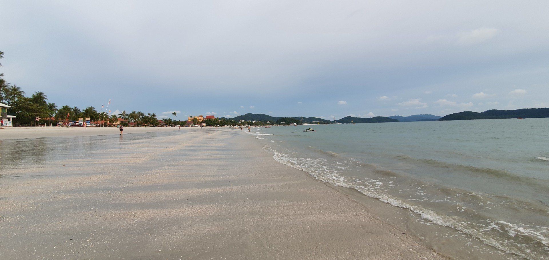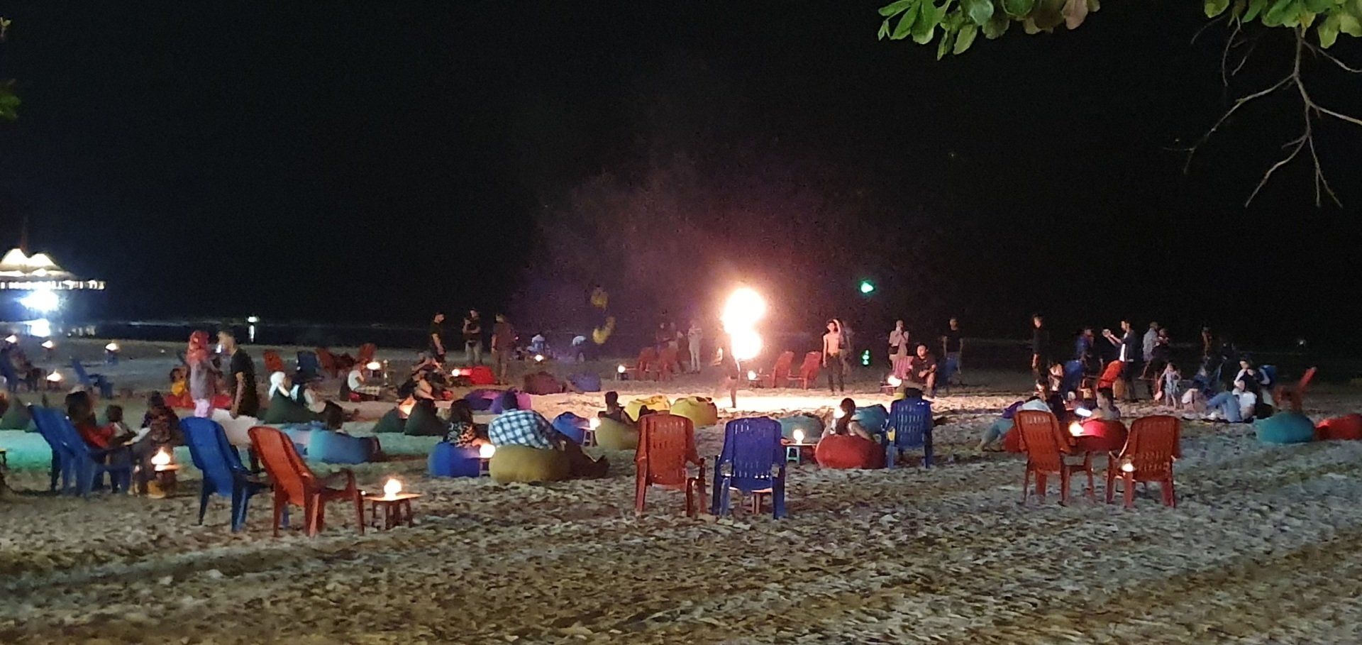 Ich bin wirklich fasziniert und freue mich auf die weiteren beiden Tage. An einem Promenadenweg laufe ich dann zurück Richtung Ortskern, bis fast einmal ganz auf die andere Seite. Alles gut zu Fuß zu erreichen. Es zieht mich noch mal zum Strand, es ist auch noch gut was los überall, aber nicht mit dem Gefühl, dass es so überlaufen ist. Am Strand machen Künstler, so nenne ich die jungen Herren mal, eine Feuershow, wo sie sich auch mal über die Köpfe der Zuschauer hinweg die brennenden Fackeln zuwerfen - und oft auch nicht fangen. Ich bin in sicherem Abstand und finde es dennoch sehr hübsch anzusehen. Also bleibe ich etwa eine halbe Stunde und gehe dann noch was essen und dann wieder zum Hotel, weil ich morgen recht früh raus muss. Ich habe eine Jetski-Tour gebucht, die einen in 4 Stunden zu 8 verschiedenen Inseln bzw. verschiedenen Stopps dort führt. Darauf bin ich sehr gespannt und konnte durch meinen Spaziergang auch schon in etwa auskundschaften, wohin ich muss. Denn exakte Angaben dazu gab es leider nicht, außer "Cenang Beach", der ja nun wirklich lang ist.