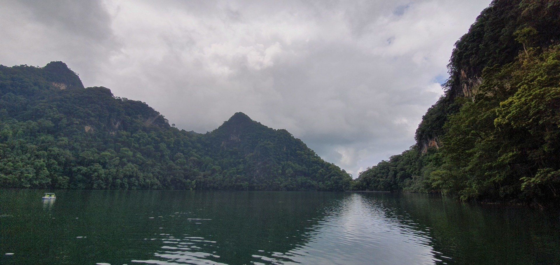 Dann geht es weiter und leider zieht das Wetter zu, sodass die Fahrt doch recht rau wird und ich mich an Florida erinnere. Man knallt aufs Wasser und muss sich wirklich sehr konzentrieren. Zum Glück hört es immer wieder mal auf, sodass wir auf einer freien Fläche auch mal 20 Minuten ohne Formation in der Gruppe, die wir sonst einhalten müssen aus Sicherheitsgründen, frei auf dem Meer umherheizen können, und das macht richtig Spaß. Der Guide sagt nur, viel Spaß, und fahrt bitte nicht nach Thailand. Denn die Grenze ist gar nicht so weit weg :)