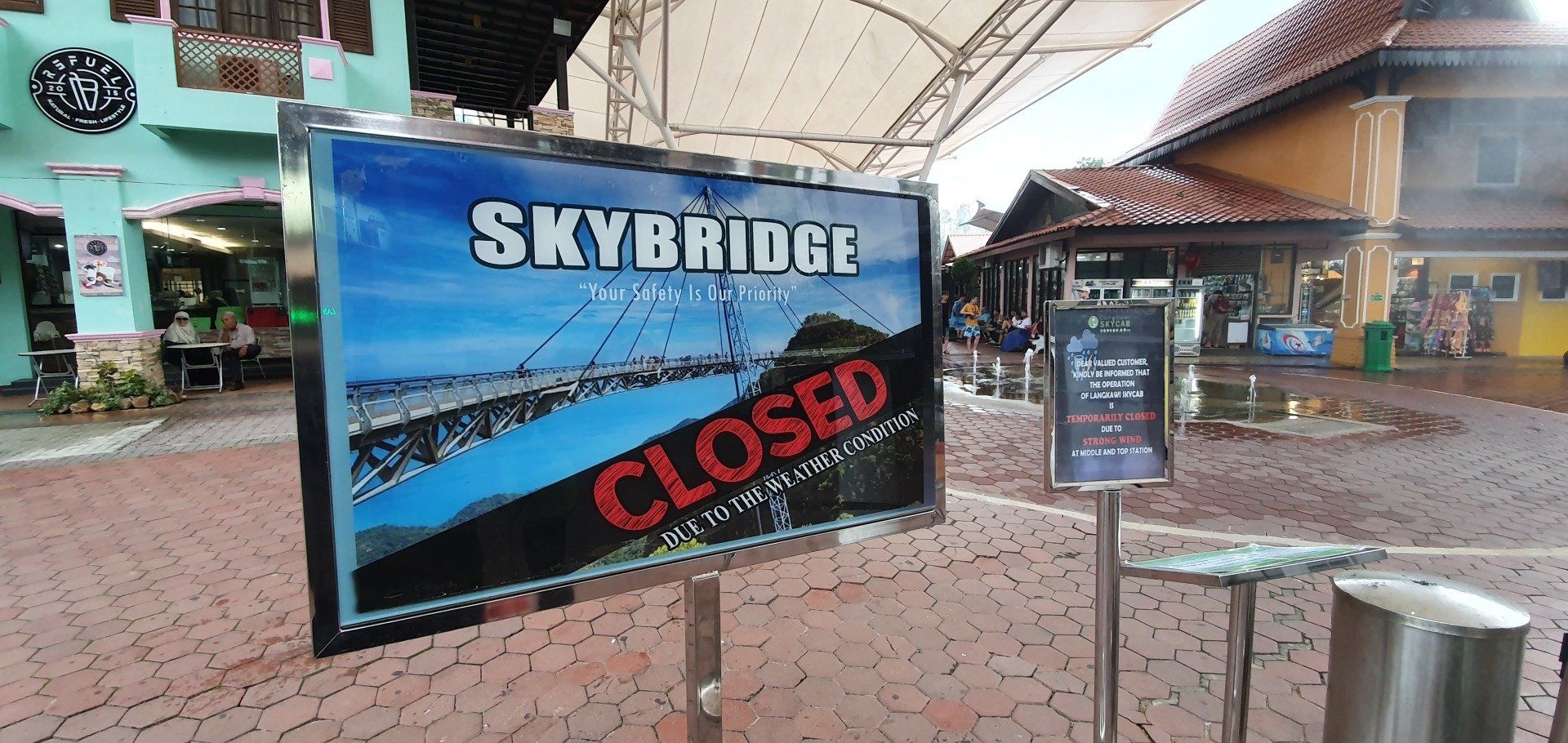 Ich gehe dann ins Hotel, duschen und aufwärmen und ein Nickerchen machen und miete mir dann noch einen Roller. Noch am Abend fahre ich in Richtung Seilbahn, für die Langkawi bekannt ist. Ich habe im Kopf, dass sie bis 8 geöffnet ist, stehe aber leider um 6 schon vor verschlossenen Türen. Etwas ärgerlich, weil ich umsonst dahin bin. Aber so kenne ich die Strecke, bin mal wieder Roller gefahren und mit den Gegebenheiten vertraut und starte einfach am nächsten Morgen früh. Der Rückflug geht erst am Nachmittag. Ich fahre mit dem Roller noch mal ein wenig durch die Gegen und durch den Ort und esse dann in einem tollen Restaurant, The Cliff, mit Blick aufs Meer, mein Abendessen.
