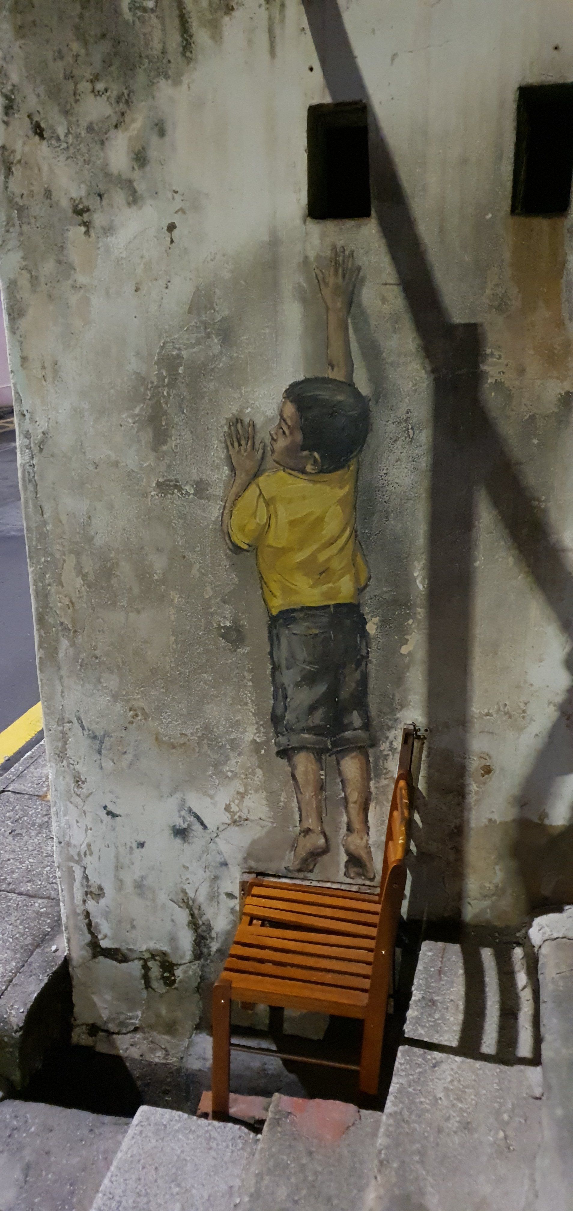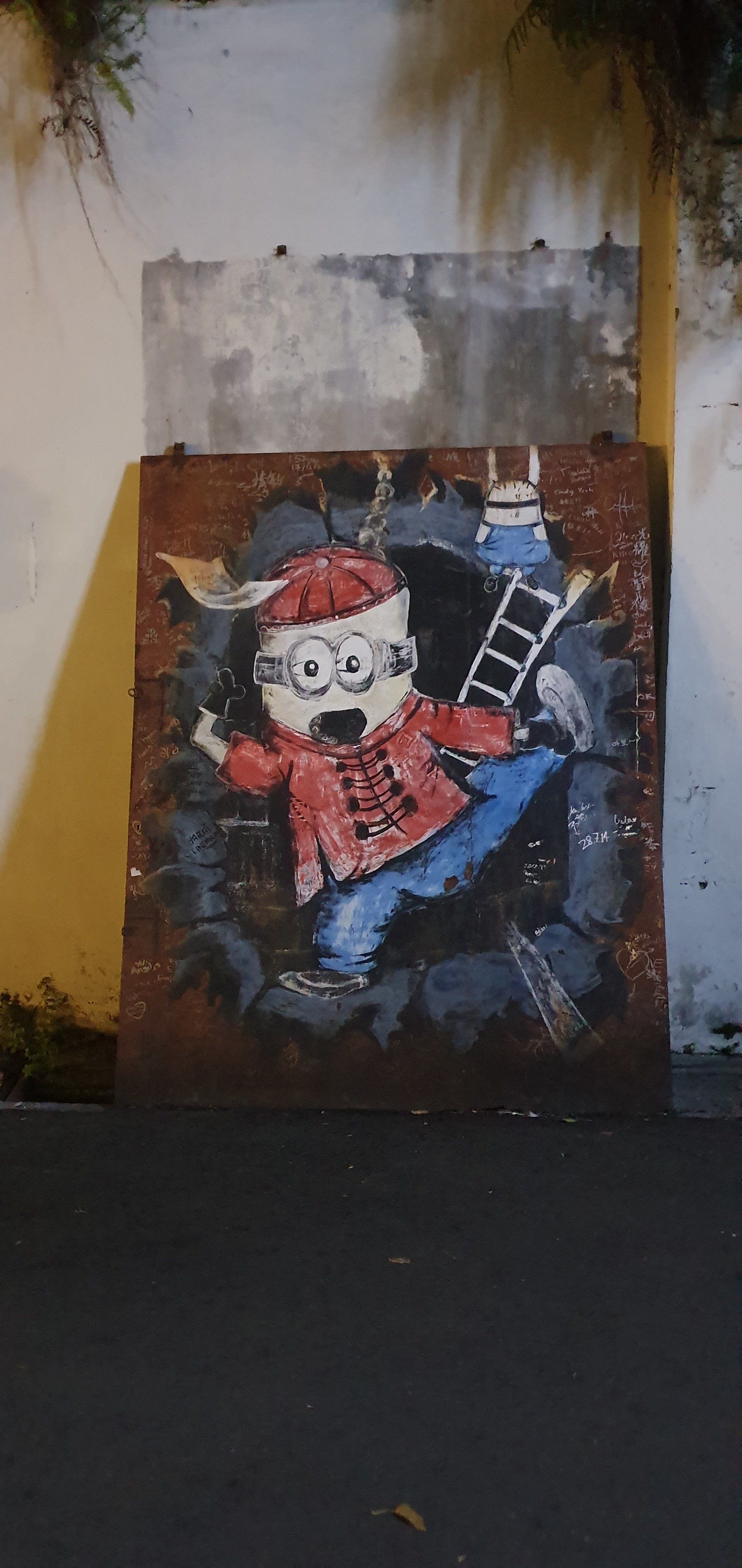 Zurück im Hotel erst mal duschen und ausruhen, und dann drehe ich abends noch mal eine Runde auf der Suche nach den bekanntesten Streetarts in Penang. Die ganze Stadt ist davon voll, und wenn man achtsam ist, entdeckt man auch in den kleinen Gassen allerhand. Es war zwar nicht geplant, aber insgesamt bin ich dann doch noch mal über 2 Stunden unterwegs und finde wirklich schöne Motive. Zwar muss man bei den Straßen hier auch sehr gut aufpassen, wo man hintritt, denn manchmal sind einfach tiefe Löcher oder ganze Schächte frei, durch die man einfach mal schnell verschwinden könnte. Es ist ein toller Abschied von Georgetown, von Malaysia. Nachdem ich noch was zu Essen gefunden habe geht es zurück, packen und vorbereiten auf den nächsten Tag, der mich in ein weiteres Land bringt: Vietnam. Dort werde ich dann meine Freundin Anna in Ho-Chi-Minh treffen.