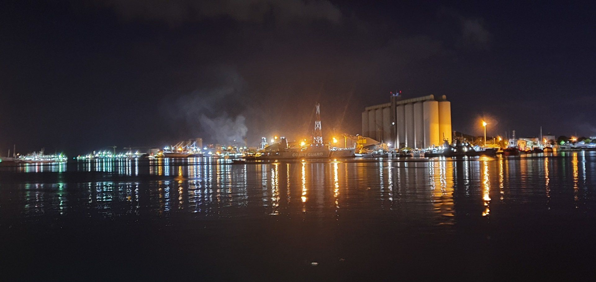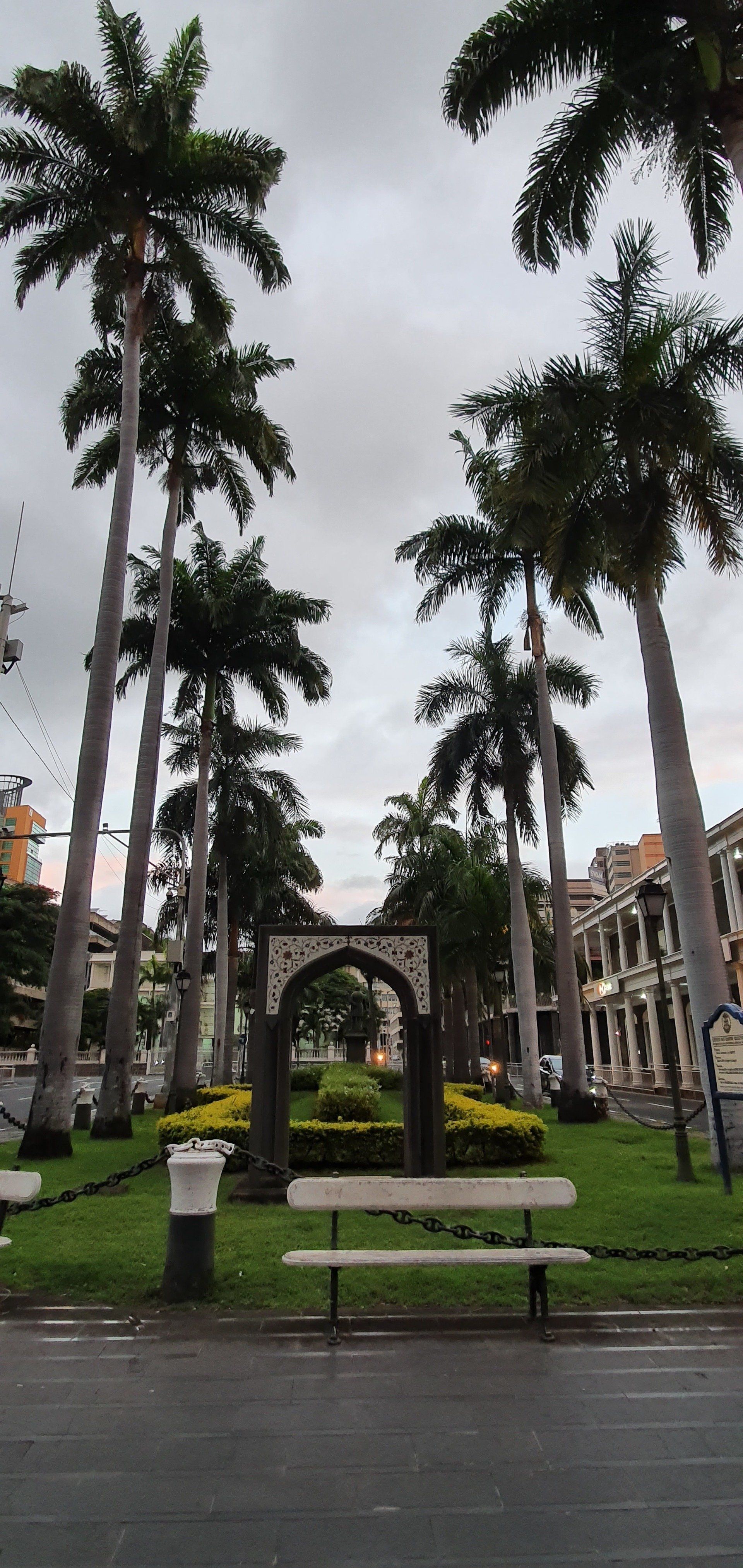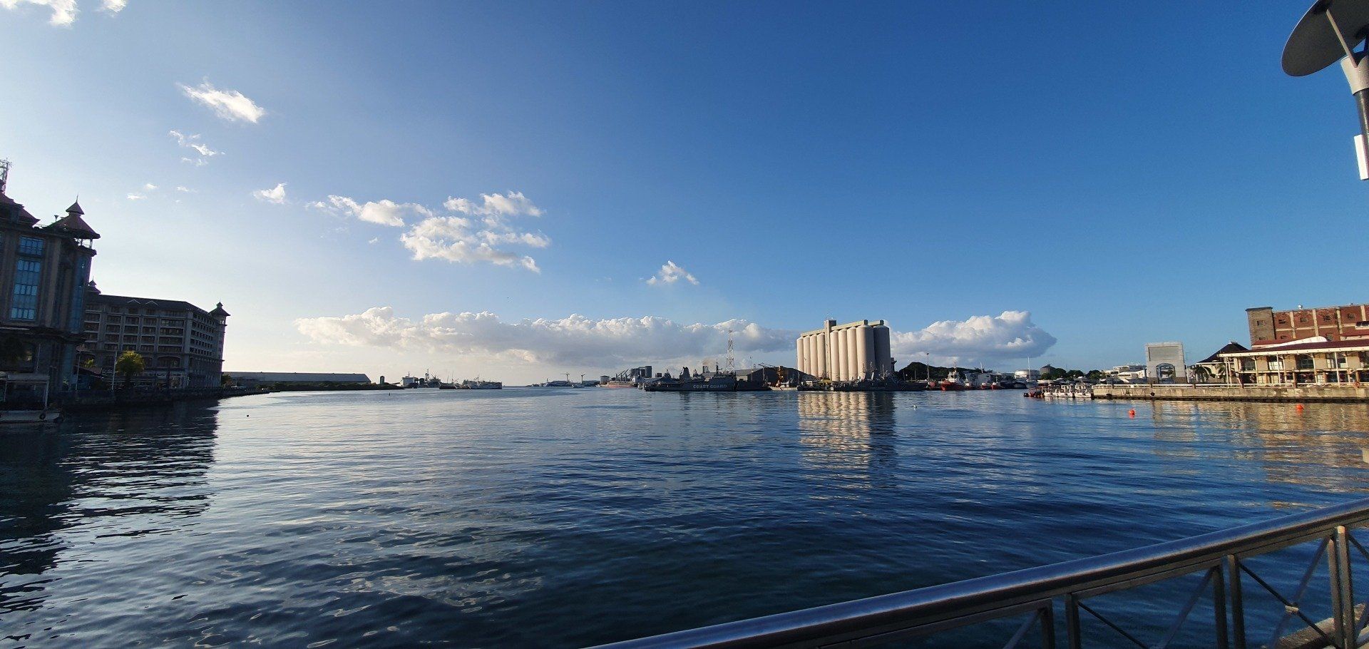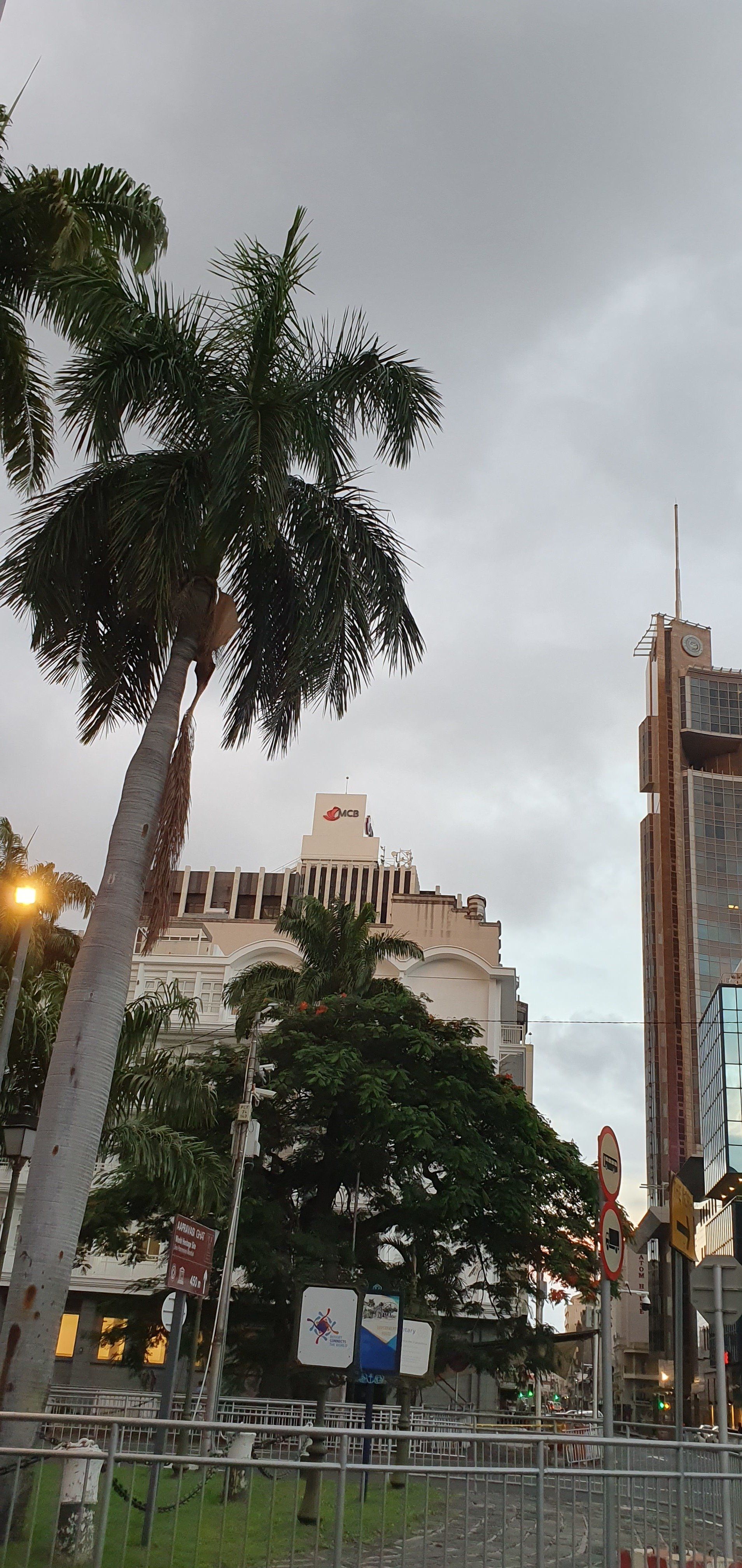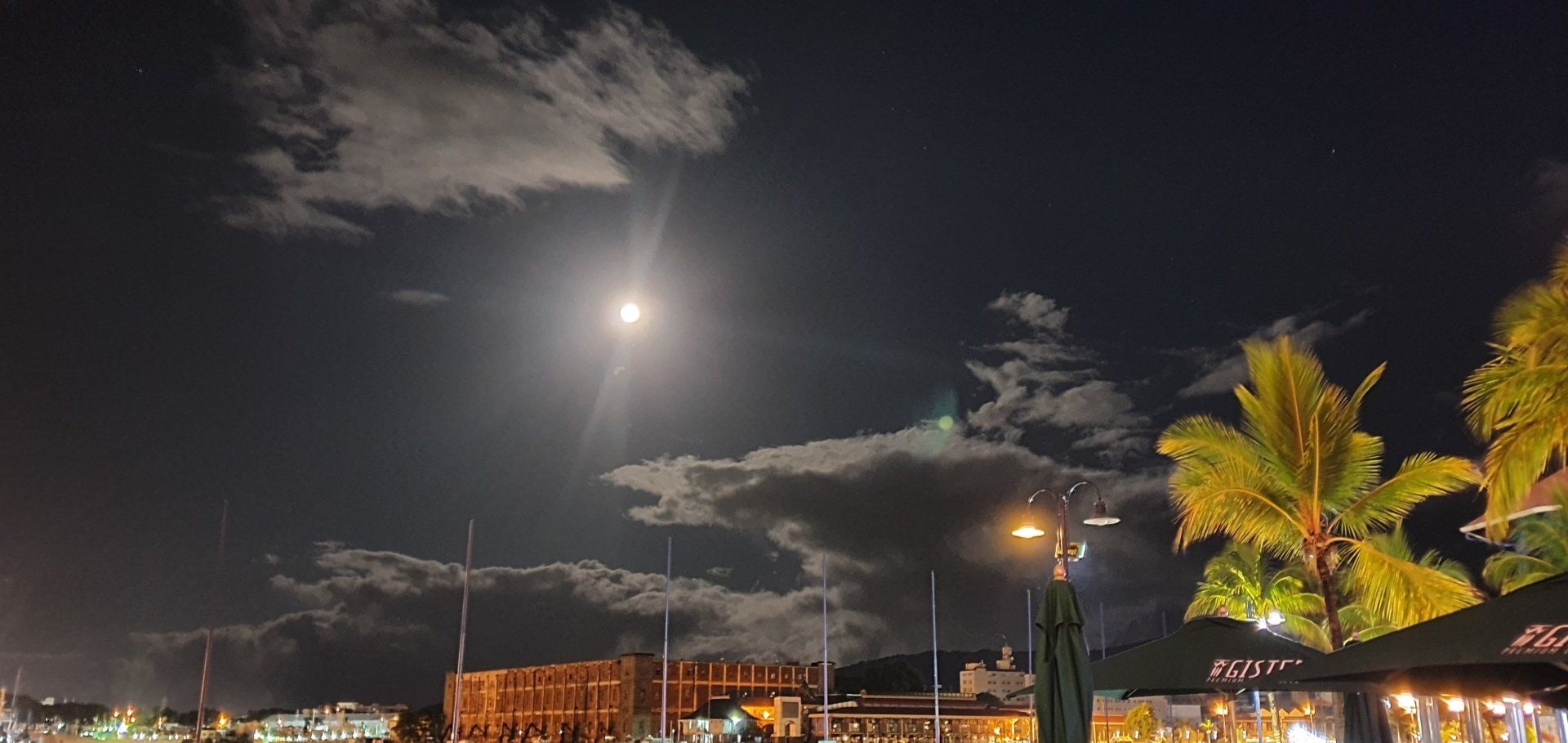 Dann gehts zurück, ich chille noch mal ne Runde und dann meldet sich Christian, dass er auch gelandet ist. Ich hatte ihm denselben Fahrer organisiert und dann klopft es irgendwann. Die netten Securityjungs stehen an der Tür und haben Chris im Schlepptau. Er richtet sich dann mal ein, es ist mittlerweile schon früher Abend. Dann machen wir uns irgendwann auf den Weg und laufen mal eine Runde am Wasser lang, auch am alten Postgebäude. Nach etwa 15 Minuten Fußweg erreicht man die Waterfront, eine nette Ecke, wo ein paar Bars sind und eine Art Promenade mit Einkaufszentrum. Echt ganz nett und scheinbar die einzige Ecke, wo man "ausgehen" kann. Das wird hier aber nicht großgeschrieben, denn eine richtige Bar- oder Discoszene gibt es hier nicht. Dann setzen wir uns mit den letzten Sonnenstrahlen in eine Bar und essen und trinken was. Danach drehen wir noch eine kleine Runde bis an die Spitze des Hafens und hier sieht es wirklich recht nett aus. Allzu viel ist aber nicht los, und scheinbar ist ab 12 Uhr hier auch Schicht im Schacht. Der Vollmond scheint sehr hübsch auf das Wasser im Hafenbecken und verleiht dem ganzen Anblick was romantisches. Es ist auch noch schön warm, sodass man gut in kurzen Sachen laufen kann. Dann gehts durch die Gassen zurück, hinter der Unterkunft, wo quasi tagsüber Trudel vom Markt ist, und abends tote Hose ist, wo Mäuse und Kakerlaken eine Party in den Müllresten feiern. Nicht so toll, nach wie vor. Da es schon spät ist, müssen wir lautstark an dem Eisentor klopfen und dann kommt der Securitymann, öffnet ebenso lautstark das Schiebetor von unten nach oben und begrüßt uns nett. Trotzdem seltsam, dass man abhängig davon ist, dass einer einem die eigene "Haustür" öffnet. Dann gehts hoch und wir schnacken noch eine Runde auf der Terrasse. Dann setze ich mich noch eine Weile an den Blog, der noch in Sri Lanka hängt, und Christian geht schon mal in sein Zimmer. Ab morgen werden wir dann den Mietwagen haben und ich bin gespannt, was die Insel außerhalb der Hauptstadt Port Louis kann. Nächtle.