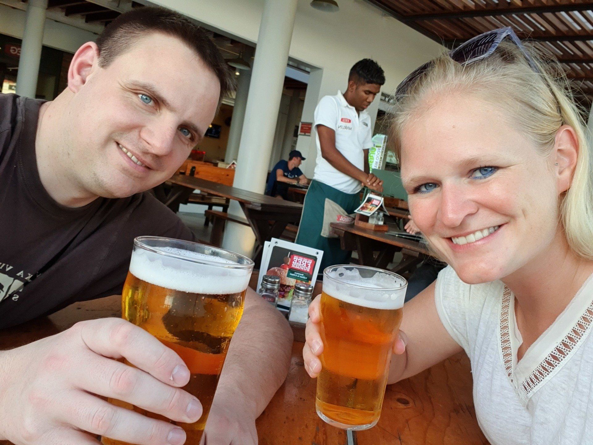 Hier vor Ort finden wir aktuell auch kein Restaurant, was uns anspricht, und da die Fahrt im Dunkeln auch nicht so die beste Idee ist hier (viele Hunde, die nicht auf die Straße achten), machen wir uns auf den Rückweg, um dann in Port Louis was zu essen. Als wir dort dann endlich ankommen, sind alle möglichen Restaurants, die die Karte anzeigt, dicht. Verrückt. Dann laufen wir eine Runde, um was zu suchen, landen aber im "Rotlichtviertel", was man nicht unbedingt braucht, weshalb ich die Suche lieber wieder aufs Auto verlege. Nix zu finden. Aber dann gibt es eine Filiale von Dominos Pizza, wo wir dann "notgedrungen" drin noch eine Pizza schaufeln. Besser als nix, aber optimal finde ich es irgendwie nicht. Dann fahren wir zurück. Da es nach 8 und dunkel ist, ist es nun also an der Zeit, mal wieder am Rolltor zu klopfen. Der Security muss dann einmal mit uns drumrum laufen, um uns die Einfahrt zu zeigen, und läuft dann noch mal von innen hoch, weil er das Tor nur von innen öffnen kann. Verrückt. Aber gut, wir können es nicht ändern und das muss der Vermieter auch wissen. Der Sec ist aber sehr nett und dann parken wir das Auto ganz oben. Dann geht es erst mal wieder runter ins menschenleere Kaufhaus, und dann mit dem Aufzug hoch. Man kann sich hier echt verirren, spooky. Zurück in der Wohnung gibts dann noch ein "Feierabendbierchen" auf der Terrasse, dann schreibe ich noch mal am Sri-Lanka-Blog. Dann gehts ins Bettchen. Für den nächsten Tag ist der Süden der Insel auf dem Plan.