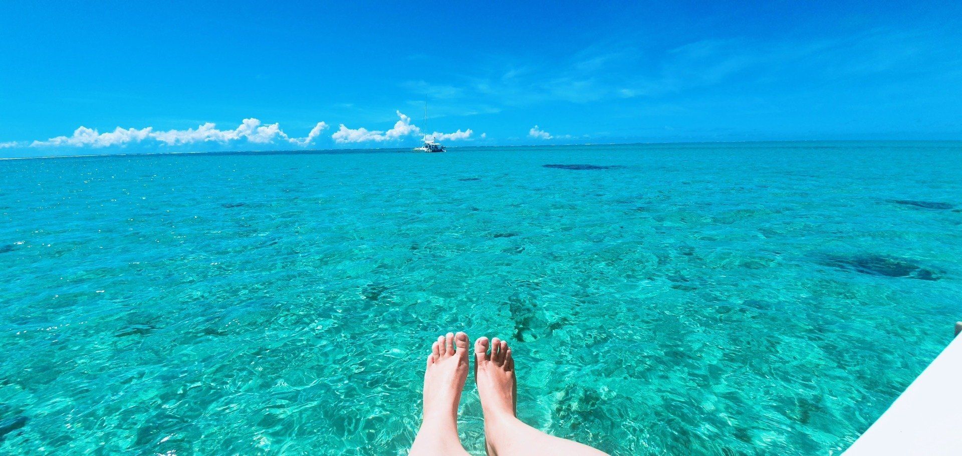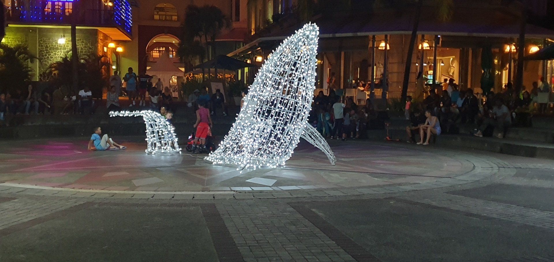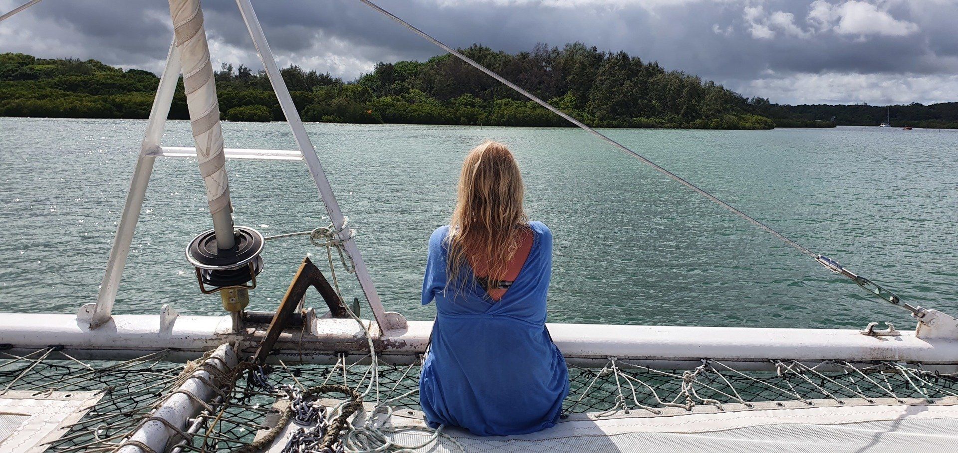 Dann ist er also da, der letzte ganze Tag meiner langen Reise. Er startet früh, um 8 wollen wir los. Also erst runter durch das Einkaufszentrum, wieder hoch zum Parkplatz (ich sage ja, mal kann sich hier echt verirren). Teilweise herrschen hier unten so üble Gerüche, weil es eine Tierhandlung gibt, dass einem richtig schlecht wird. Also schnell hoch zum Auto, und wieder runter fahren. Allerdings geht der Chip nicht, weil am Abend vorher der Security für uns gechippt hat und das System nun denkt, dass wir gar nicht drin sind. Okay, wir schalten ein wenig spät, man hätte den Chip ja auch einfach auf der anderen Seite mal erkennen lassen können, aber so müssen wir einen der Securities bemühen, was sehr lange dauert. Diese 15 Minuten warten mit voll angezogener Handbremse vor der Schranke am steilen Berg sind für die Fahrt zum Hafen nicht einkalkuliert. Dann geht es halt so schnell wie nur möglich über die Insel, aber um die Zeit sind viele unterwegs, auch viele Busse. Also dauert es wieder mal sehr lange, und eine Telefonnummer der Agentur haben wir auch nicht mit. Also fahre ich so schnell wie nur möglich, bis wir dann am Büro der Agentur ankommen, ich mich erst mal für die 30 Minuten Verspätung entschuldige (ja, so lange hats tatsächlich gedauert), und auch nicht mehr damit rechne, dass das mit dem Trip noch was wird. Die Dame ist aber ganz ruhig und meint, der Katamaran würde ja eh später fahren. Oh Mann. Wozu dann die Hektik? Aber gut, besser so, als das Ding verpassen und evtl noch Strafe zahlen, weil wir ja 2 Plätze gebucht hatten. Dann beschreibt sie mir eher schlecht als recht den Weg zu einem Parkplatz, den wir prompt nicht finden. Also wieder raus, jemanden fragen, ob man da, wo das Auto jetzt steht, stehen darf, dies wird verneint, also fragen, ob noch Zeit ist zum Umparken... Chaos. Aber dann läuft es, wir finden den Parkplatz, den man bei Regen definitiv nicht befahren sollte (alles voller Erde, einen Hang runter) und werden dann am Hafen vom letzten kleinen Boot abgeholt, das uns zum Katamaran bringt. Alle entspannt, keiner genervt. Ein Glück, dann kann der entspannte Teil endlich kommen. Die Sonne strahlt und knallt gleichzeitig erbarmungslos auf Schiff und Mensch. Ich verkrümel mich ein wenig in den Schatten und dann gehts schon los. Was nicht kommuniziert wurde, war, dass alle Getränke, inkl. Alkohol, mit im Preis von ca. 45 Euro inkludiert ist. Das ist natürlich grandios. Das Meer hier ist sehr ruhig, weil man nur im Schutz der Riffe fährt, die keine großen Wellen durchlassen. Also kann man richtig relaxen. Es ist zwar recht voll an Bord, aber alle sind nett und genießen die Zeit. Unterwegs stoppen wir zum Schnorcheln, etwa eine Stunde. Da freu ich mich besonders drüber, weil es die letzten Monate ja eher wenig war mit Schnorcheln. Und dann gibt es auch ein paar tolle Fische zu beobachten. Nach dem Schnorcheln, etwa eine Stunde, gibt es ein leckeres Barbecue mit viel Auswahl, auch an vegetarischen Sachen, weil ich zuvor angemeldet hatte, dass ich nur veggie esse. Und das wurde wirklich toll bedacht und alles ist lecker. Das Bild vom dampfenden Grill am Heck des Katamarans ist natürlich auch nicht ohne :)