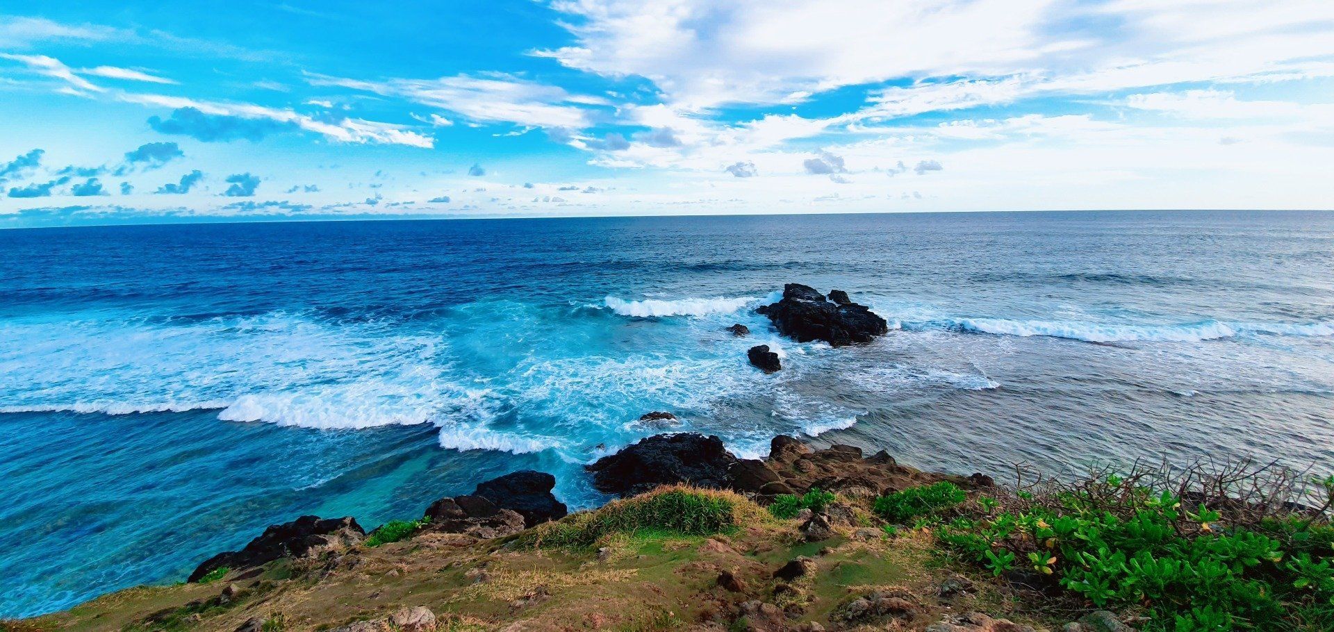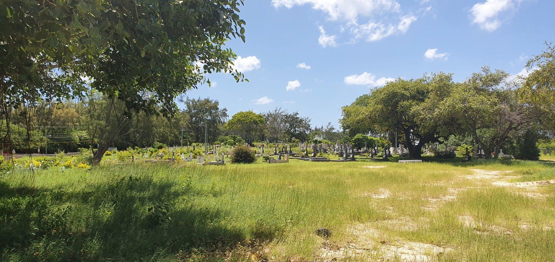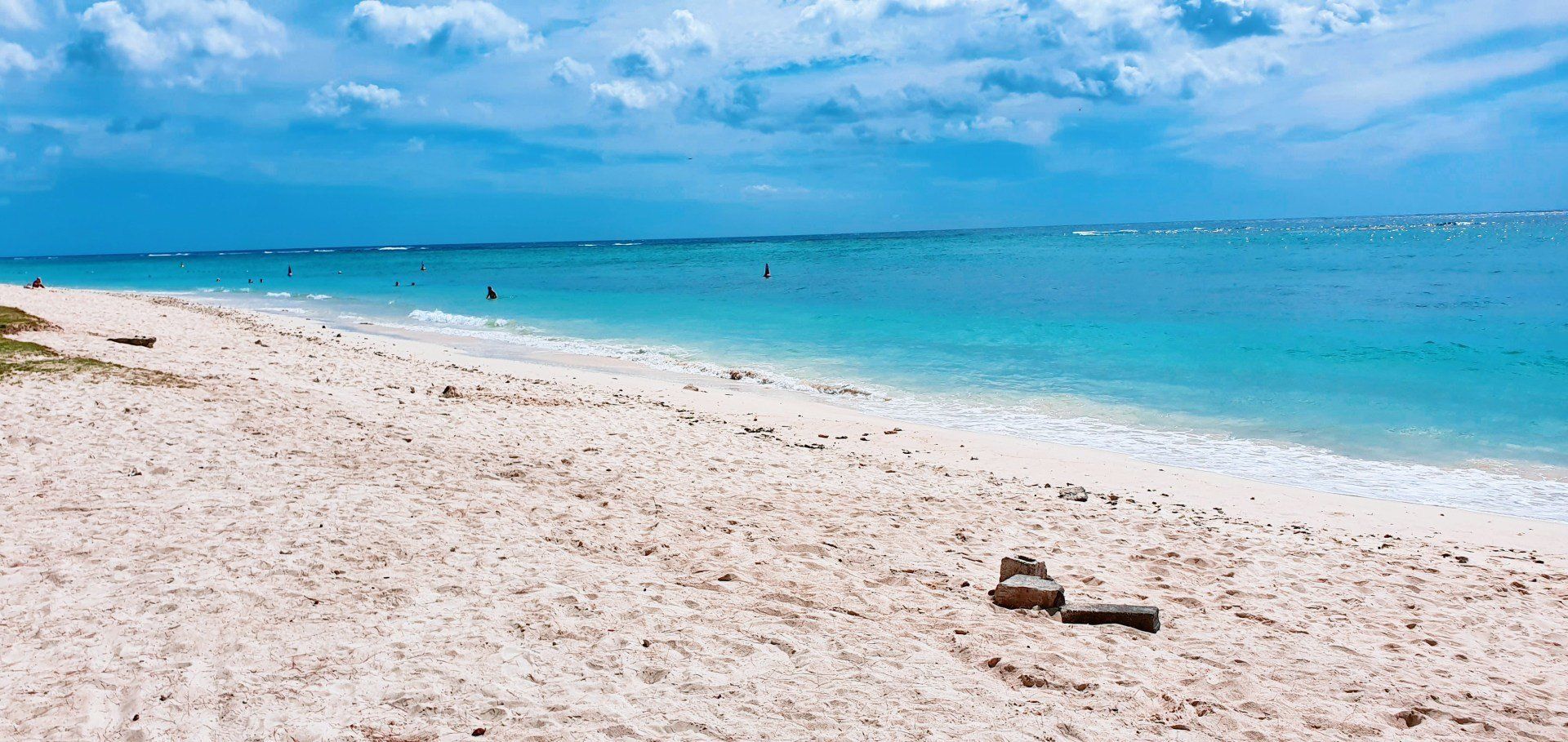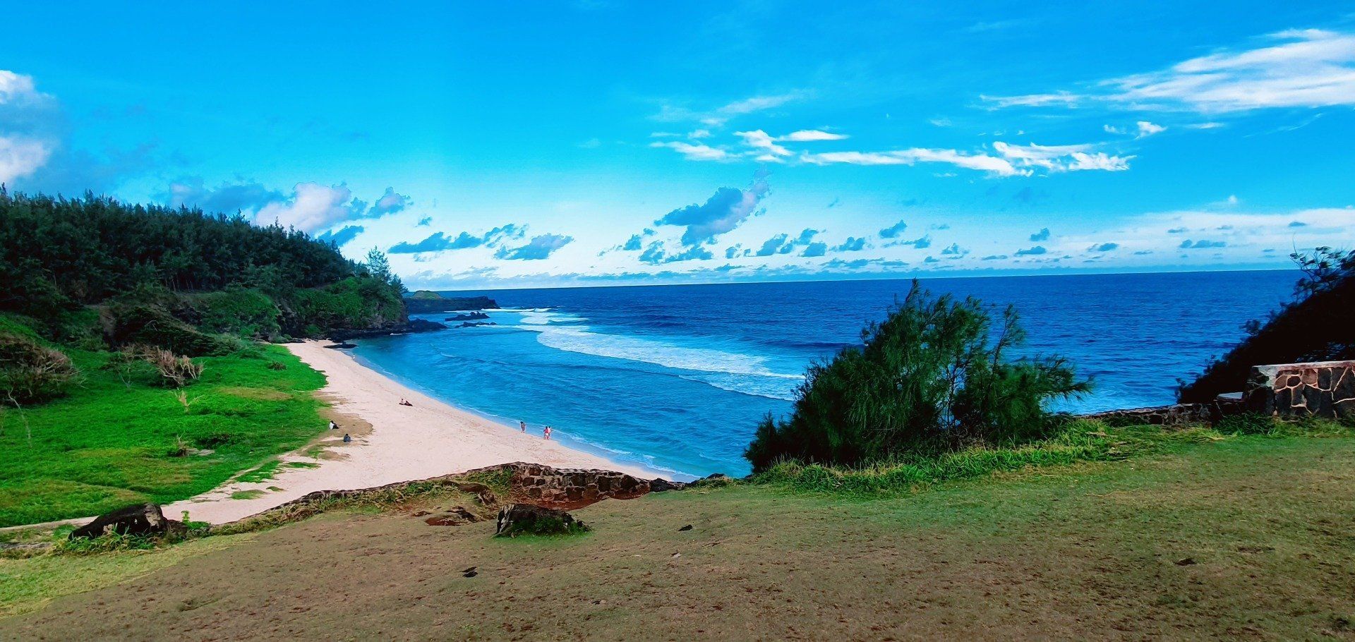 Dann sind wir in ca. 30 Minuten im Norden und stoppen am Cap Malheureux. Kurz vorher steigen wir zum 1. Mal aus und laufen an einem Friedhof vorbei, um dann vom strahlenden blauen Meer geblendet zu werden. Supertolle Aussicht mit Blick auf eine kleine Nachbarinsel, nur leider keine Möglichkeit, hier ans Wasser zu kommen. Also fahren wir noch mal ein Stück weiter und landen dann am Strand von Cap Malheureux, der sehr voll ist. Die Einheimischen verbringen hier friedlich ihren freien Tag, sitzen beisammen, grillen, trinken, und genießen die Zeit. Auch wenn es mir zu voll ist, liegt eine schöne Stimmung in der Luft.