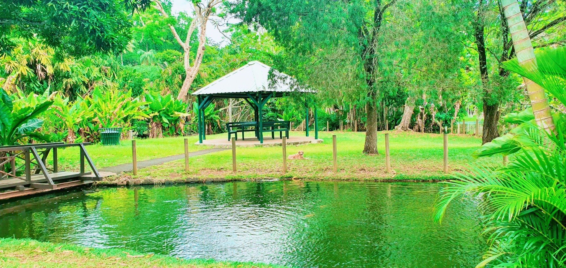 "Ein Tag wie jeder andere", hätte ich es fast geschimpft. Nach dem Frühstück mache ich mich heute aber mal auf den Weg zum Markt, der ja quasi unter meiner Wohnung stattfindet. Alles ist voller Stände, die Straßen sind voller Menschen, Touris und Einheimische gemischt. In jeder Halle gibt es nach Bereichen aufgeteilte Waren: Stoffe, Fisch, Fleisch, Obst, Gemüse, Accessoires, Souvenirs... Man kann echt alles kriegen. Es ist auch wirklich ein sehr hübscher und zudem sehr großer Markt, den man gesehen haben sollte. Ein paar Balinesen wollen gerne ein Foto mit mir machen, da wir aber gerade in der Fischhalle stehen, bitte ich sie, dass wir wenigstens nach draußen gehen, weil man es hier echt kaum aushält. Der Trubel und die vielen Waren erklären dann aber auch, warum nach 17 Uhr, wenn der Markt schließt, alles recht schnell wie leergefegt ist und alles voller Müll ist. Denn die leeren Kartons und Co. werden einfach auf die Straße geschmissen. Irgendwann muss die Müllabfuhr (bisher nie entdeckt hier) dann kommen und alles fein machen. Scheint aber irgendwie zu funktionieren. Dann gehe ich zurück und wir machen uns auf zu einer neuen Tour in noch unbekannte Ecken. Das erste Ziel heute ist die Maison Eureka, das zurecht als architektonisches Vermächtnis bezeichnet wird. Es ist nicht sehr weit von Port Louis entfernt und der Parkplatz ist schnell gefunden. Es kostet Eintritt, etwa 5 Euro, aber da es dahinter auch ein paar Wasserfälle zu sehen geben soll, nehmen wir es "in Kauf". Das Haus ist wirklich sehr hübsch, viele Möbel, Dokumente, Bücher, Bilder etc aus dem Haus von 1830, das der neue Besitzer unverändert gelassen hat. Scheinbar gibt es angeschlossen ein Restaurant, weil man hier auch in Zimmern speisen kann. Wirklich toll anzusehen, und wie gut Vieles noch erhalten ist.