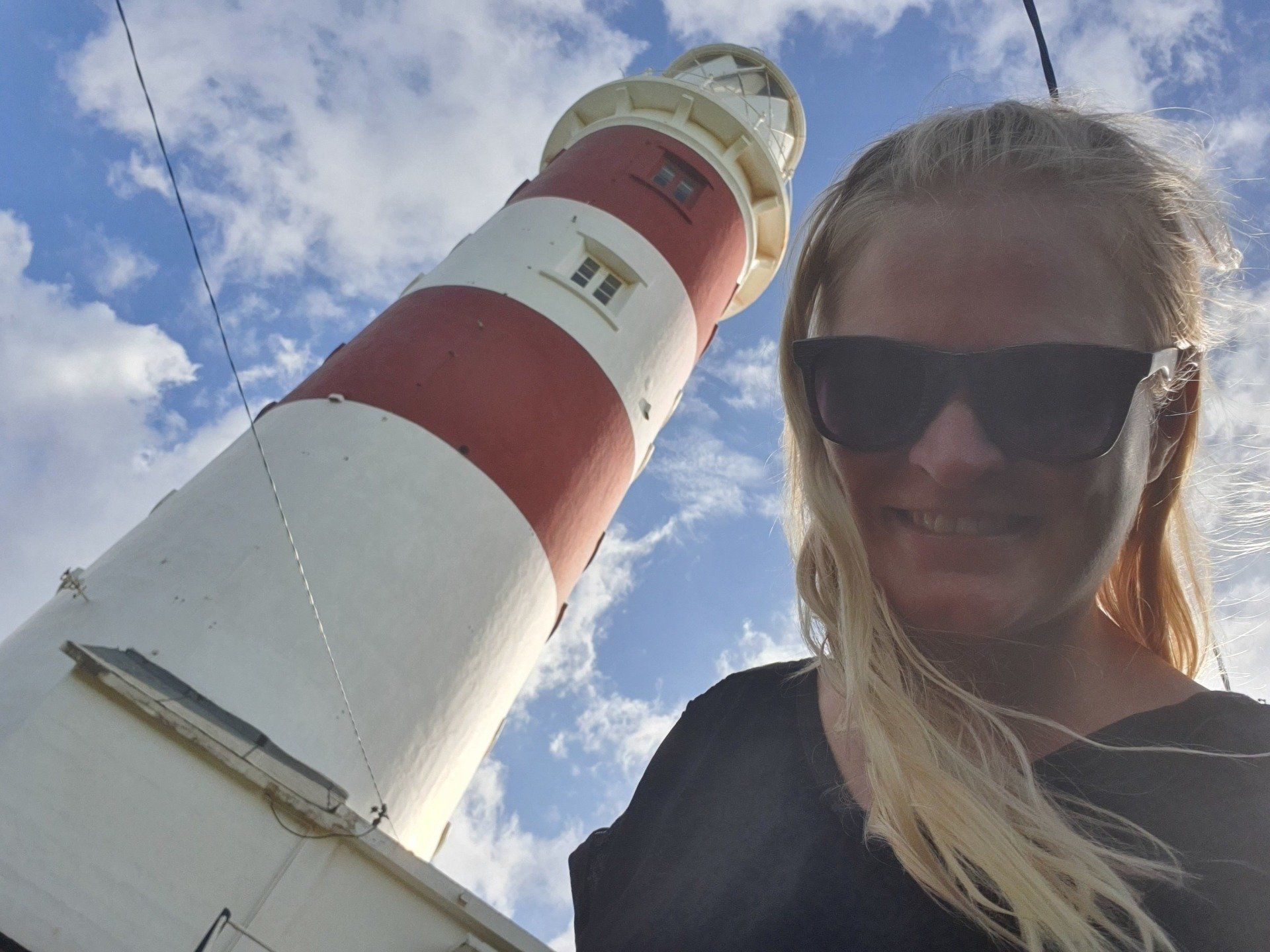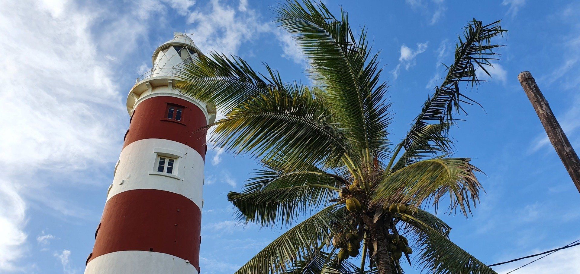 Dann gehen wir weiter auf die Suche nach dem Wasserfall. Eine Mitarbeiterin zeigt uns den Weg und meint, es wäre nicht weit. Ein paar Leute kommen uns wieder entgegen, die eigentlich erst aufgebrochen sind. Also denke ich, dass es wirklich nicht weit sein kann. Allerdings war das wohl nicht richtig und die Leute sind umgekehrt. Der Weg ist recht steil und nicht so einfach zu laufen, zumal ist es nicht gerade nah. Man muss über umgestürzte Bäume drüber oder auch hindurch klettern, vermoderte Treppen und so weiter und so fort. Aber jetzt sind wir schon mal hier und sehen dann auch ein paar sehr nette Wasserfälle. Zum Glück, denn es war echt anstrengend, herzukommen. Es gibt mehrere Wege und Wasserfälle, und als wir 3 gesehen haben, suchen wir auf einem Weg nach einem anderen Ausgang, den es dort allerdings nicht gibt. Was es aber gibt sind Tigermücken, und das nicht zu knapp. Irgendwo muss ein Nest sein, denn ich habe teilweise 6 bis 7 von den Sch*** Viechern an einer Körperstelle und sie stechen, was das Zeug hält. Na klasse, so viele Monate mit so wenig Stichen ausgekommen, und nun versauen mir diese Lumpen in ein paar Minuten den Schnitt. Aber schlimmer wäre es, wenn ich mir ausgerechnet jetzt was einfangen würde dadurch. Und da ich dachte, es sei ein "kurzer" Weg, hab ich mich auch nicht mit Mückenschutz korrekt eingesprüht. Dann gehen wir den Weg wieder zurück, der mit Stichen übersäte Körper juckt, aber was will man machen. Im Auto entscheiden wir, einen Strand zu suchen, wo man auch mal wieder ins Meer kann, weil es zum Einen tolles Wetter ist, und zum anderen die Stiche vielleicht ein wenig gelindert werden. Wir landen nach nicht allzu langer Fahrt an einem weiteren sehr bekannten Strand der Insel: Flic en Flac. Es gefällt uns gut, wir suchen uns ein Plätzchen und so wird der Tag eher zum Strandtag, mit schön erfrischendem Meer vor der Nase. Das Wetter ist super, bzw. irgendwann einfach so heiß, dass man nicht mehr länger am Strand liegen kann. Dann machen wir uns mal wieder auf in Richtung Port Louis, wollen aber noch an einem Leuchtturm stoppen. Diesen sieht man schon aus der Ferne, er ist aber noch eine ganze Ecke entfernt, die man mit dem Auto fahren muss. Aber was solls. Als wir ankommen, macht uns der Wärter das Tor auf und erlaubt uns "gegen eine Spende" nach oben auf den Albion Leuchtturm zu klettern. Das ist mega cool und scheinbar eigentlich nicht unbedingt erlaubt. Aber wir haben auch Glück, dass sonst keiner da ist. Von oben hat man eine grandiose, spektakuläre, nein was sag ich, nahezu unglaubliche Aussicht :D Meer und Landschaft batteln sich fast schon mit den Farben und ich genieße die Brise, die hier oben weht. Also bleiben wir noch ein wenig und gehen dann wieder runter. Mit 10 Euro etwa ist der Mann nicht sehr glücklich, was ich aber fast schon frech finde, denn er läuft ja auch nicht mit hoch. Aber egal, wir verabschieden uns freundlich und freuen uns, dass es so geklappt hat. Dann haben wir keinen weiteren Tatendrang und machen uns auf den Heimweg, wo wir noch vor Ladenschluss ankommen, das Auto weg bringen und dann wieder zur Waterfront gehen, was essen und wieder eine Runde drehen. Die Spiegelungen im Wasser