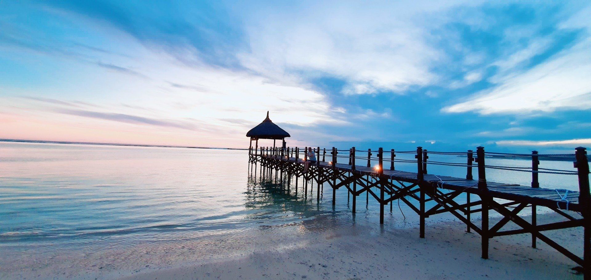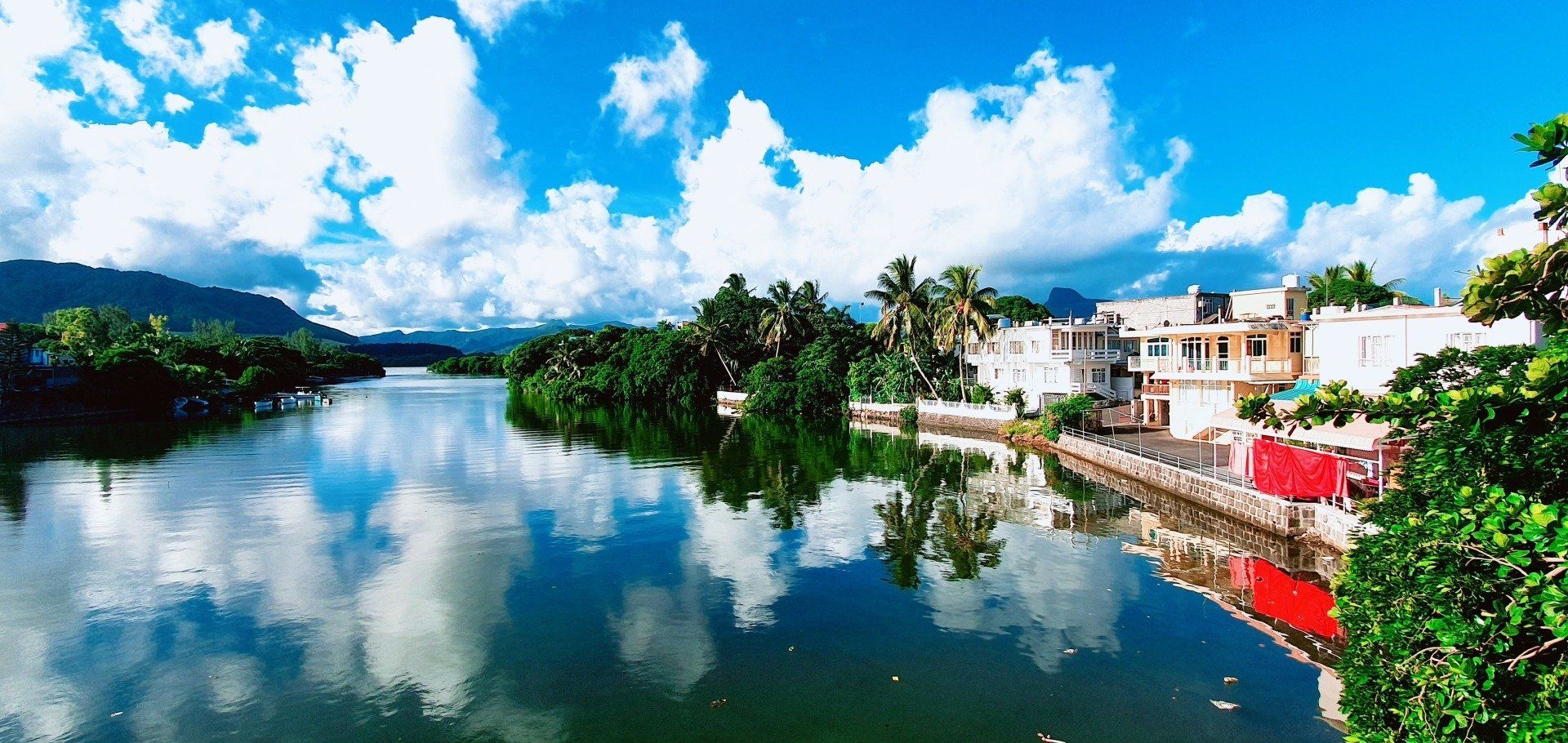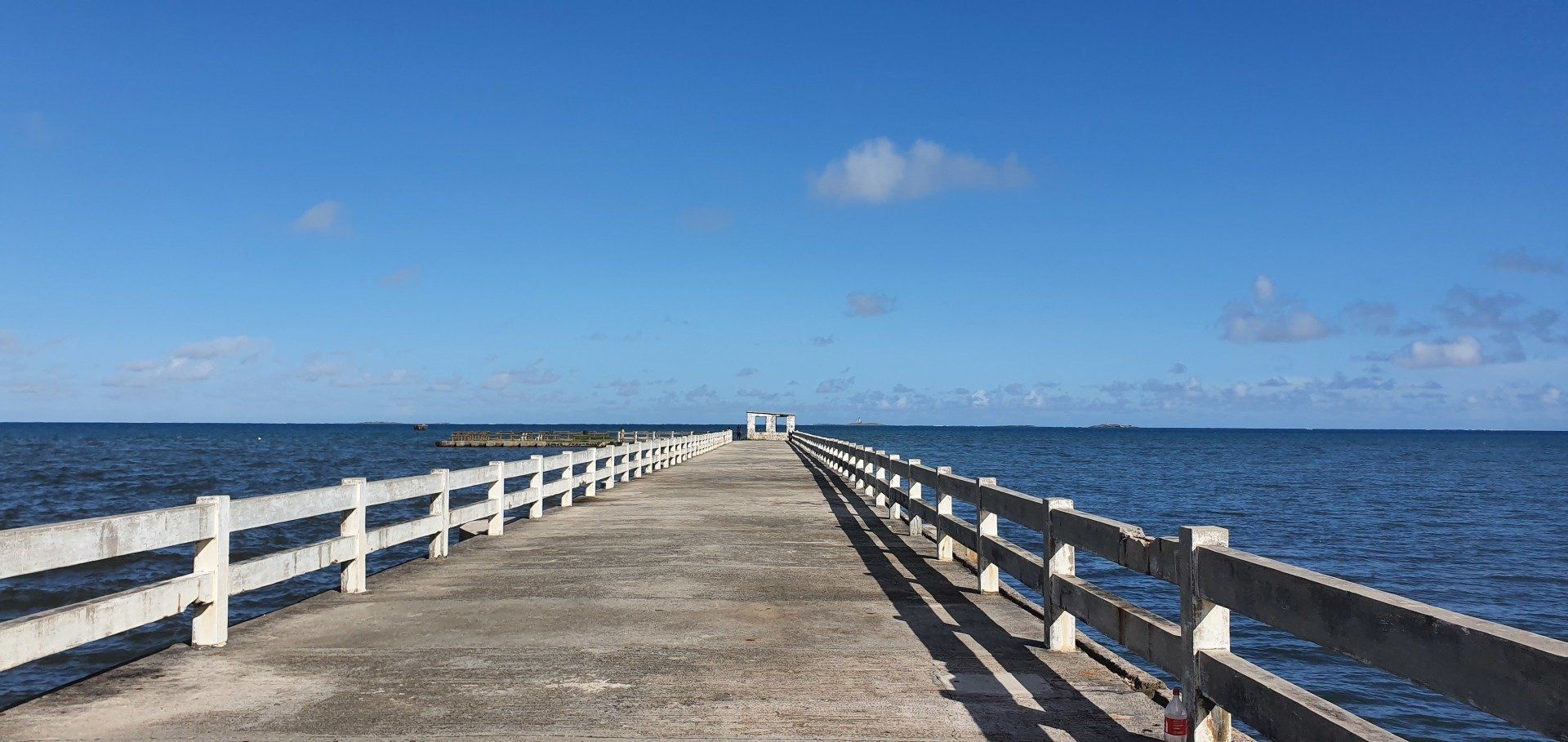 Weiter gehts dann nach einer Weile weiter an der Küste lang, bis in die zweitgrößte Stadt von Mauritius: Mahébourg. Dort steht die wohl erst gebaute Brücke "Cavendish Bridge". Wir laufen kurz drüber, aber es ist nicht so spektakulär. Was auffällt, ist die Sicht auf die Ufer: Auf einer Seite wie ein verfallenes, spooky Slum, auf der anderen Seite luxuriöse Gebäude. Die Sonne steht gerade auch so fantastisch, dass sich bezaubernde Spiegelungen im Wasser ergeben. Da es aber dann schon wieder Nachmittag ist, machen wir uns auch weiter auf den Weg zurück, weil wir die Strecke über den Süden und Südwesten antreten wollen, und das erfahrungsgemäß ja auch sehe lange dauert. Unterwegs fällt mir noch ein Aussichtspunkt auf Maps.Me auf, nämlich die Klippen von Gris Gris, die wir noch ansteuern und nicht enttäuscht werden. Super schöne Aussicht, toller Strand, hohe, sich an den Felsen brechende Wellen. Und oben Steinbänke, die zum Verweilen einladen. Dann geht es weiter, und weil wir nicht beim Sonnenuntergang im Auto sitzen wollen und es zudem auch der letzte hier auf der Insel für uns sein wird, halten wir an einem weiteren Strand, St. Felix, der auch sehr schön. Man kann lange laufen und am Ende steht ein hübsches Hotel, das viele kleine Bungalows hat. Davor führt ein Steg mit kleiner Hütte ins Wasser. Hier schauen wir uns dann den Sonnenuntergang an, der mal wieder gigantische Farben mit sich bringt. Jetzt ist es leider schon dunkel, weshalb wir auch bis zum letzten Rotstrahl warten, weil wir eh um Dunkeln zurück müssen. Die Fahrt zieht sich dann auch ewig hin, obwohl es nur noch 30 Kilometer bis Port Louis sind. Zudem ist es wirklich kein Spaß, hier im Dunkeln zu fahren, und an der Wohnung angekommen, müssen wir wieder klopfen, damit wir ins Parkhaus fahren können. Aber es war noch ein letzter schöner Tag mit vielen tollen Eindrücken und Aussichten, und jetzt gibt es eigentlich kaum ein Fleckchen, das ich hier auf der Insel nicht gesehen habe. Daher freu ich mich auch, dass wir morgen mal eine organisierte Tour haben, wo ich mir nicht überlegen muss, was man tun könnte. Um 9 sollen wir am Anleger auf der anderen Seite sein, deshalb starten wir um 8, um genug Puffer zu haben. Aber ich freue mich sehr, dass es doch noch mal geklappt hat mit dem Katamaran und Schnorcheln, nachdem das im Norden schon nicht geklappt hat.