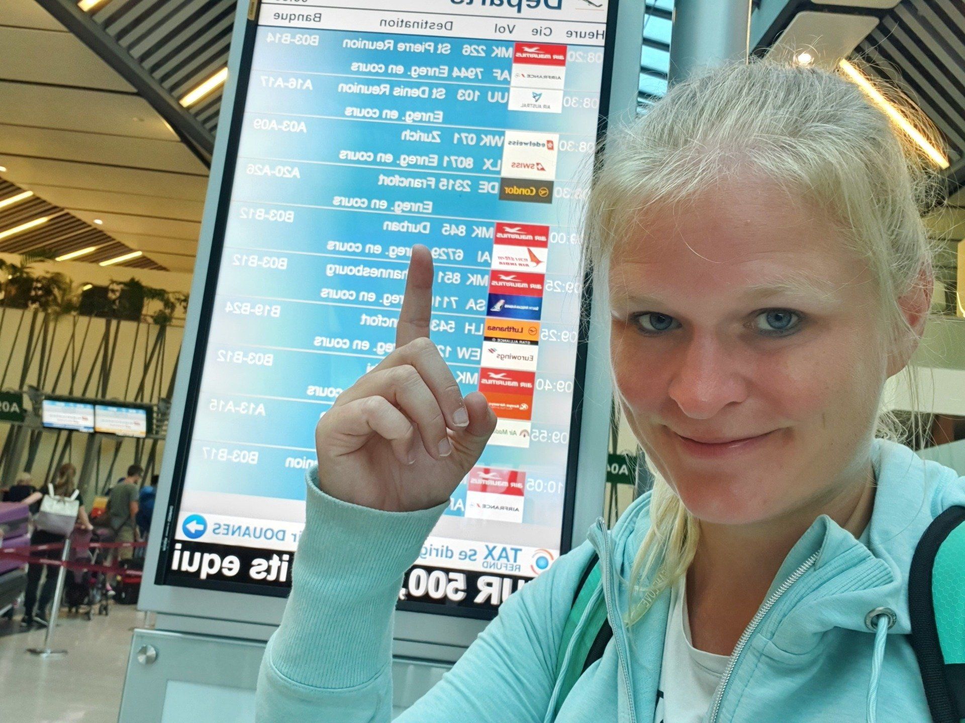 Verabredet war, dass der Fahrer um halb 6 da ist. Mein Flieger geht um 10 Uhr, aber man weiß ja bekanntlich nie, wie lange man hier für kurze Strecken braucht, und bei so einer langen schon gar nicht. Er verspätet sich 15 Minuten, kommt dann aber um die Ecke, bevor wir ihn anrufen. Er musste noch beten, meint er. Dann geht die Fahrt los. Die letzte Anreise zum Flughafen, es wird langsam hell und ich nehme Abschied, von Mauritius, von der Reise, von den Erfahrungen, die ich gemacht habe, alles geht mir noch mal durch den Kopf. Verrückt, wie schnell die Zeit dann doch zu Ende war. Vertieft in den Gedanken fahre ich dann also zum Flughafen. Wir kommen gut durch, und nach einer knappen Stunde sind wir da. Ich frage mich kurz, wie ich die Mitarbeiterin vom Tierheim erkenne, die mir den kleinen Simba bringt. Aber als ich in die noch recht leere Check-in-Halle komme, ist das nicht zu übersehen. Eine Frau mit 2 Hundeboxen steht vor dem Condorschalter und ich laufe direkt zu ihr. Sie ist sehr nett und hilft mir dann beim Check-in für Simba. Alles recht easy als Flugpate, was ich nur jedem empfehlen kann. Man braucht vielleicht 30 Minuten länger, weil man einiges ausfüllen muss. Dann kriege ich die Originalpapiere, die ich beim deutschen Zoll brauche und den neuen Besitzern übergeben muss, und dann bringen wir ihn zum "Sperrgepäck". 1,5 Stunden vor Abflug wird er schon weggebracht, der arme Knirps. Dann ist Simba also schon an Bord und ich warte noch mit der Mitarbeiterin auf den anderen Flugpaten, der in die Schweiz fliegt. Dann verabschieden wir uns und ich gehe auch mal zum Sicherheitscheck. In der "Aufregung" und Freue wegen Simba habe ich den Abschiedsschmerz ganz vergessen, was echt gut ist. Leider ist der Flug verspätet und mir tut der Hund echt leid, weil zusätzlich zum langen Flug nun noch 1 weitere unklare Stunde für ihn on top kommt. Aber ich gehe mal davon aus, dass er sich in seine Decke kuschelt und Wasser hat er auch. Dann gehts endlich zum Boarding. Für die 12 Stunden Flug habe ich mir einen Platz mit mehr Beinfreiheit gegönnt und ich habe einen wirklich tollen Flug mit Condor. Alles läuft super und dann beginnt der Landeanflug auf Frankfurt. Vertraute Landschaften, Heimatland unter mir. Alle hier sprechen auch Deutsch an Bord, was wirklich erst mal komisch ist. Es ist etwa halb 6 am Abend und es ist schon dunkel. Dann gehts raus, schnell durch die Passkontrolle, ganz problemlos, und dann hole ich mir direkt mal einen Wagen, um Koffer und Simba abzuholen. Zum Glück gehts mit Kreditkarte, den 1 Euro zu zahlen, denn Euro habe ich gerade keine parat. Und dann steht er da schon in seiner Box, ganz einsam. Als ich frage, ob der Mann dort die Dokumente sehen will, damit ich den Hund mitnehmen kann, meint er, es sei ihm egal, ich werde es schon wissen. Aha. Sehr nett. Simba wirkt etwas verstört, aber fit. Dann zurück zum Band und irgendwann kommt endlich mein Koffer. Dann noch die letzte "Hürde", der Zoll. Hier wird der Chip ausgelesen, die Papiere kontrolliert, und die beiden Beamten sind sehr nett. Dann sind wir "frei" und ich gehe raus. Mama, Lothar und Oma warten schon mit Röschen auf mich und ich freue mich sehr, dass sie mich abholen und auf mich warten. Dann gesellen sich noch die neuen Besitzer von Simba dazu, die sehr nett sind, und wir unterhalten uns eine ganze Weile und trinken gemeinsam ein Sektchen, den Mama mitgebracht hat. Den ersten Abschied machen wir von Simba, der mit seiner neuen Familie noch eine ganze Ecke zu fahren hat, hoch in den Norden. Und dann gehts auch für uns nach Zweibrücken. Dort wartet ein leckeres Bünde-Süppchen auf mich, auf das ich mich richtig gefreut habe. Zudem ist es mir recht kalt hier, solche Temperaturen um 6 Grad bin ich nun mal nicht mehr gewöhnt. Da kommt die Suppe nur recht. Dann gehen wir alle ins Bett. Und es ist der Moment da, den ich mir oft vorgestellt habe, wie das wohl sein würde. Wieder in Zweibrücken sein, im Bett liegen, und die Reise ist zu Ende. Es geht mir nicht schlecht damit, obwohl ich schon merke, dass mir das Reisen fehlen wird. Die nächste Zeit wird zeigen, wie es mit mir weiter geht. Und weitere Reisegeschichten werde ich auf jeden Fall schreiben. :)