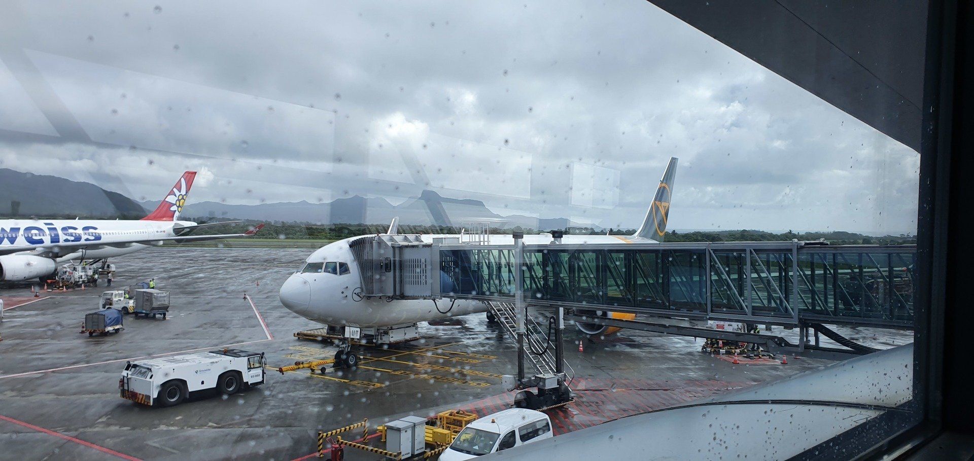 Dann mache ich mich auf mit dem kleinen Flitzer und ich komme ganz gut durch. Erst in Victoria stehe ich tatsächlich eine Weile im Stau, aber um 9 bin ich erst mit dem Typ vom Mietwagen verabredet. Allerdings weiß ich auch gar nicht genau, wo, er meinte nur auf dem Parkplatz. Allerdings sind am Flughafen einige, und ich lande mit Punktlandung um 9 am Flughafen. Also halte ich mal auf einem Parkplatz und steige aus, um mich umzugucken. Und eine Minute später erscheint schon der nette "Jüngling" von der Mietwagenagentur. Er ist freundlich wie bei der Begrüßung und alles läuft super. Darüber freue ich mich nach wie vor, nach der Pleite auf Praslin. Dann geh ich zum Checkin, es ist nicht voll und geht ruckzuck. Da ich noch eine Weile Zeit hab, setz ich mich noch mal auf die Bank, wo "alles begann" und unterhalte mich eine Weile mit einer netten Inderin. So nehme ich dann auch in Ruhe Abschied von den Seychellen, was wirklich eine wunderbare Zeit war. Dann gehe ich mal langsam zum Gate, wobei ich kurz nach dem Eingang suchen muss, denn der Weg zu den Abfluggates ist recht schmal, nicht wie man es sonst gewöhnt ist. Dann also Ticket und Ausweis zeigen und schnell ist man am Gate, weil es eigentlich eh nur 3 Gates gibt. Dann organisier ich noch schnell Wasser, und das Boarding geht ruckzuck. Da muss ich mich fast schon beeilen. Aber es reicht noch und ich bin pünktlich an Bord, und der Flieger geht auch pünktlich los. Die etwa 2 Stunden Flug starten, es gibt sogar ein kleines Essen und schwuppdiwupp lande ich auf Mauritius. Hier bin ich sehr gespannt, ob die Insel mit den Seychellen gleichziehen kann. Schon im Flugzeug muss man das Einreiseformular ausfüllen und zusätzlich gibt es auch einen "Corona-Zettel", auf dem man angeben muss, wo man die letzten 6 Monate war, dabei genau die Anzahl an Tagen, die man im jeweiligen Land verbracht. Oh oh, ich war viel in Asien unterwegs, ich hoffe, da gibts keine Probleme. Denn man merkt, wie nervös langsam alle werden, da sich Corona wohl recht schnell verteilt und noch keine "Hilfe" vorhanden ist. Da ich alles schon ausgefüllt habe und kein Visum erforderlich ist, gehe ich direkt zur Immigration. Fast alle anderen Ankommenden müssen noch die Zettel ausfüllen, also hab ich Glück und bin direkt dran. Das geht auch ruckizucki. Anschließend muss ich noch um Gesundheitsstand, wo meine Stempel und Angaben kontrolliert werden. Nach einem skeptischen Blick auf meine Angaben werden ich von der, sagen wir mal, freundlich-distanzierten, Dame gemustert und nachgiebig gefragt, ob ich nicht auch in China gewesen sei. Ich bin gerade mehr als froh, dass ich dort nicht mal einen Zwischenstopp hatte auf der Reise, denn ich habe so den Eindruck, das könnte für Probleme sorgen. Aber alles läuft gut und ich bin eingereist. Auch das Gepäck kommt sehr schnell und so stehe ich recht früh in der Eingangshalle des Flughafens, wo ich auf meinen Fahrer warte. Der Vermieter hat mir im Vorfeld den Transport organisiert, was dann auch günstiger war. Allerdings ist er nicht da, aber ich bin noch nicht "unruhig", weil ich ja so superschnell durch war. Aber nach 20 minuten schreib ich dann doch mal dem Vermieter, der meint, er wäre da mit einem Schild in der Hand. Ja gut, hier ist wieder eine "wilde" Fahrerhorde mit Schildern, aber keins mit meinem Schild, auch wenn ich es mehrfach ablaufe.